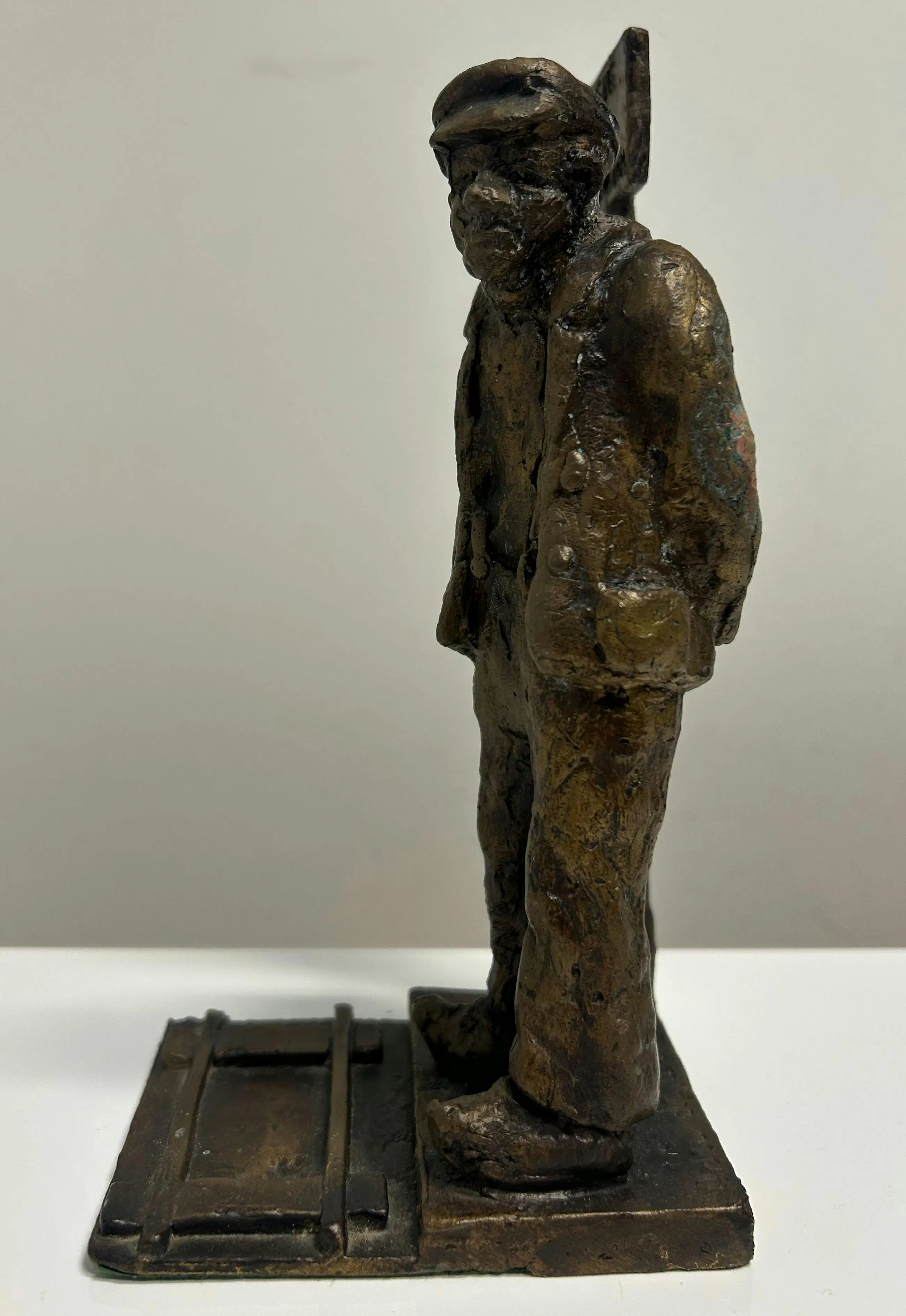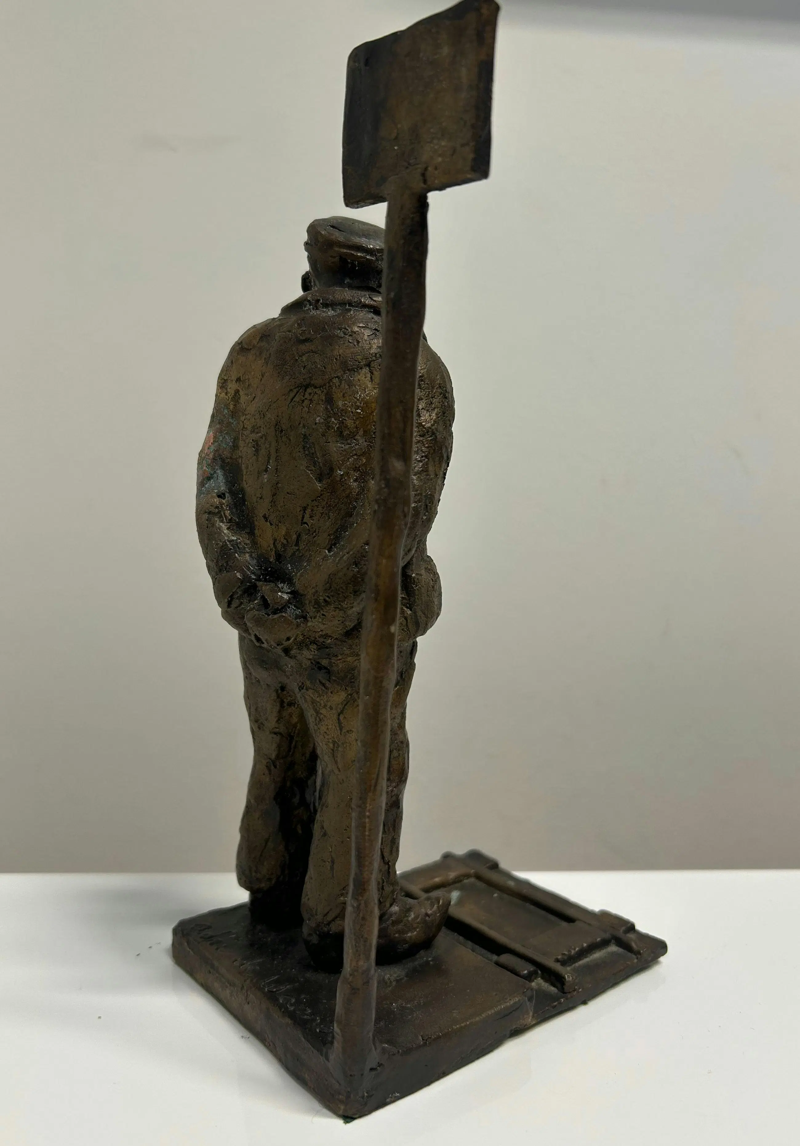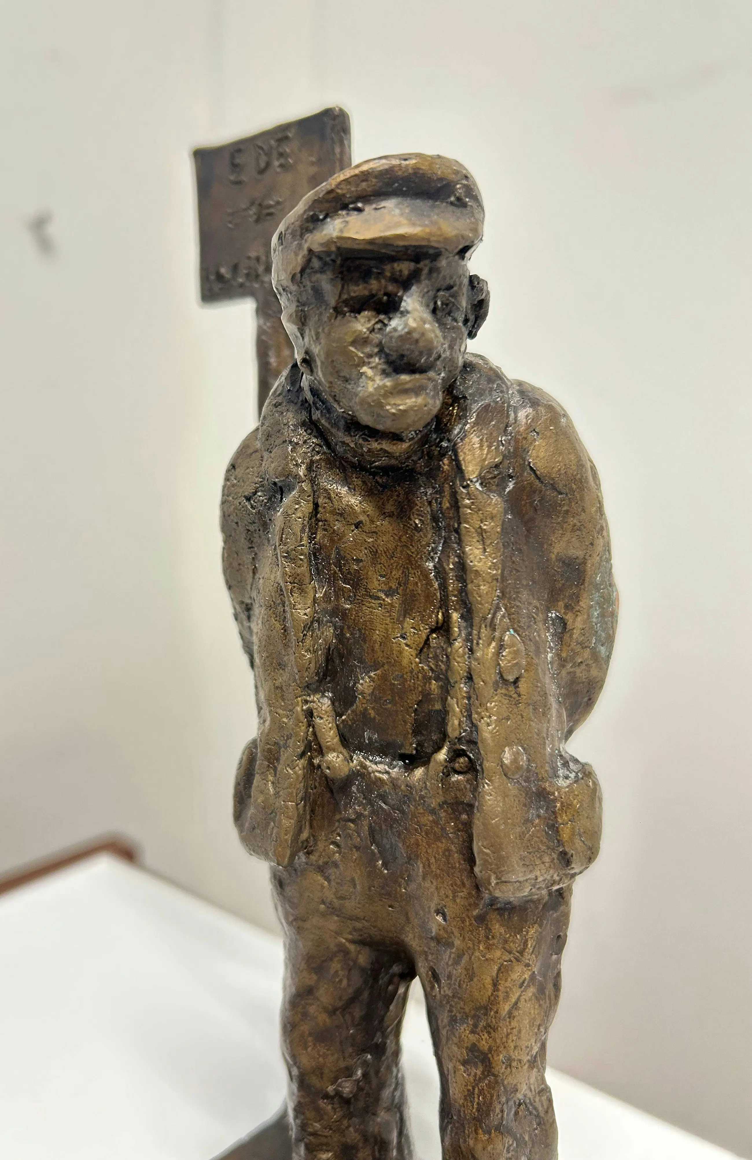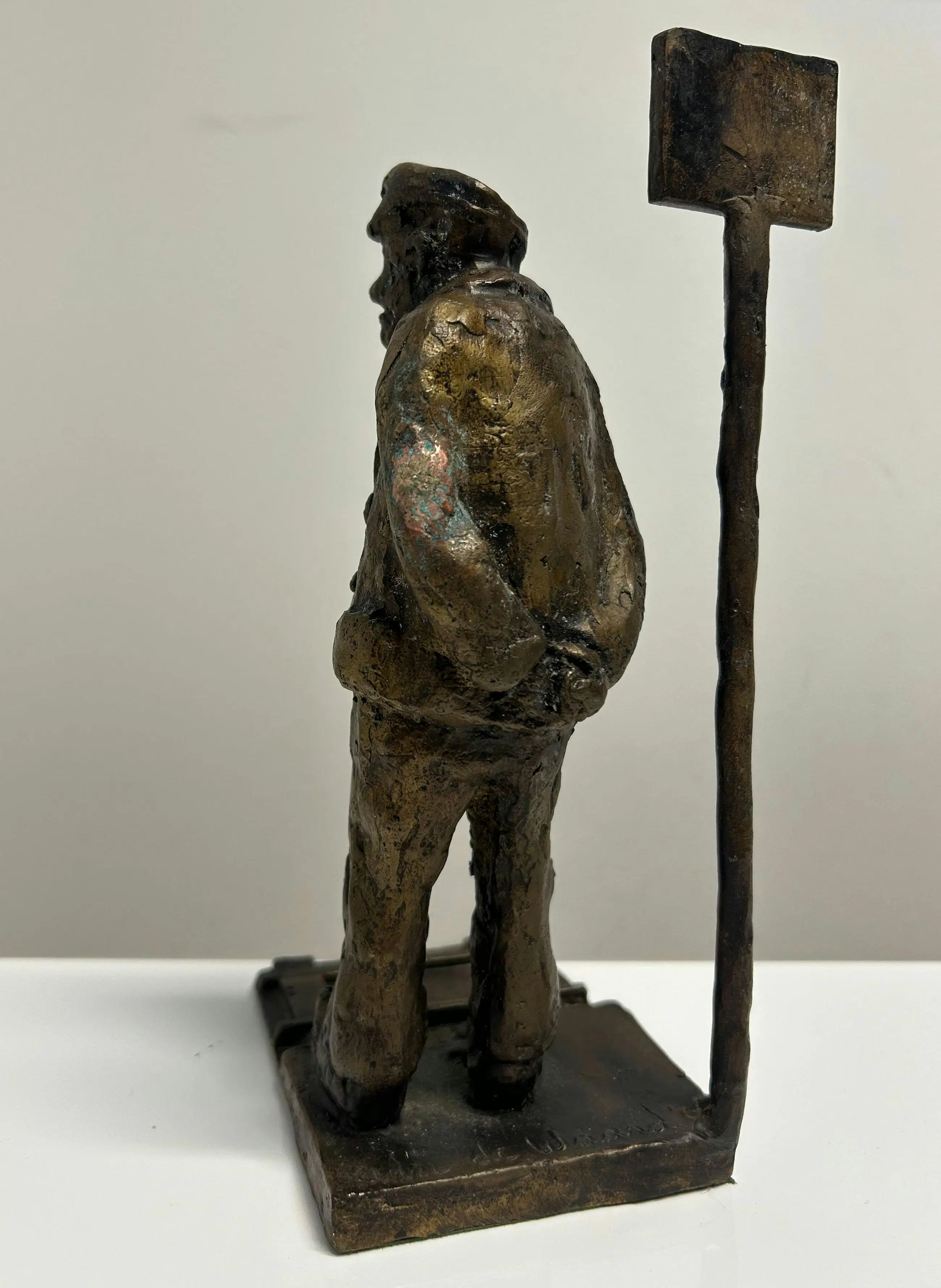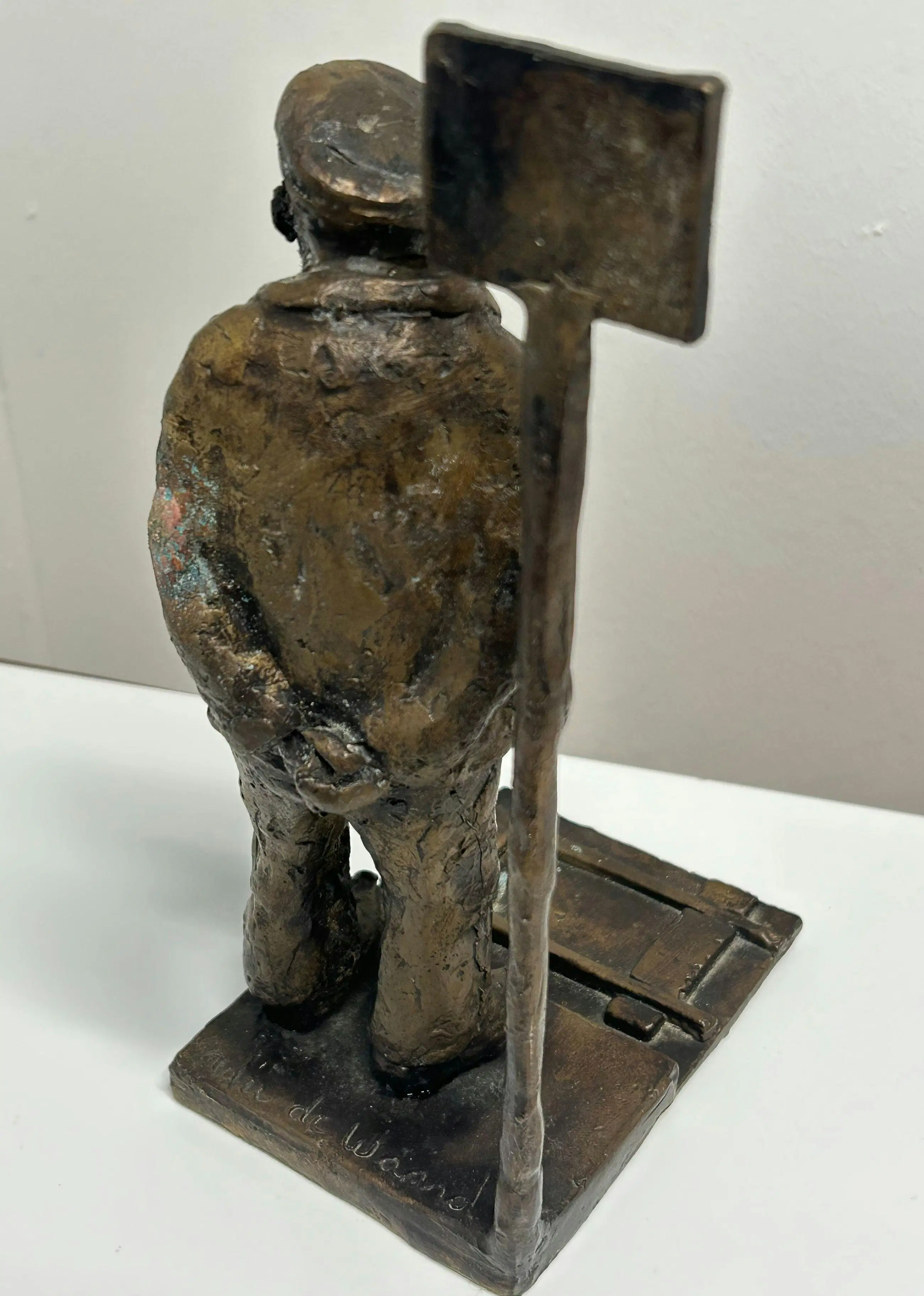 Beeldje van Adri de Waard – wachtende man bij station Ede-Wageningen Mooi en goed bewaard beeldje van een wachtende man bij station Ede-Wageningen (zie het bordje op het werk). Het beeld verkeert in nette staat en toont een lichte verkleuring op de linkerelleboog (zie foto), wat minimaal is en past bij de leeftijd van het object. Voor de rest is het een prachtig en decoratief werk, ideaal voor verzamelaars en liefhebbers van figuratieve kunst. Een mooi stuk dat goed tot zijn recht komt in iedere collectie.