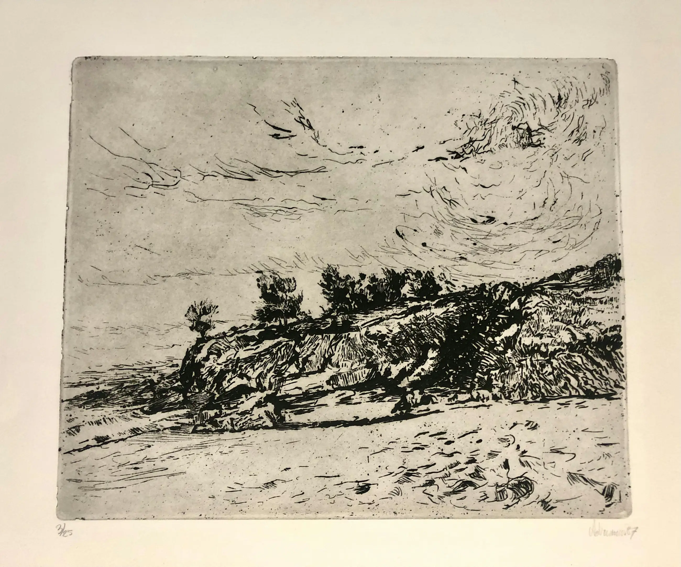 Tijdens zijn academietijd aan de Academie voor Beeldende Kunsten Utrecht (1979-1984), bekwaamt Adri Dijkhorst zich onder meer in het maken van diepdrukken, zinketsen en kopergravures. Na zijn opleiding aan de kunstacademie gaat hij zich vooral toeleggen op het schilderen van landschappen in olieverf. Prachtig ruig Spaans landschap in kleine oplage.