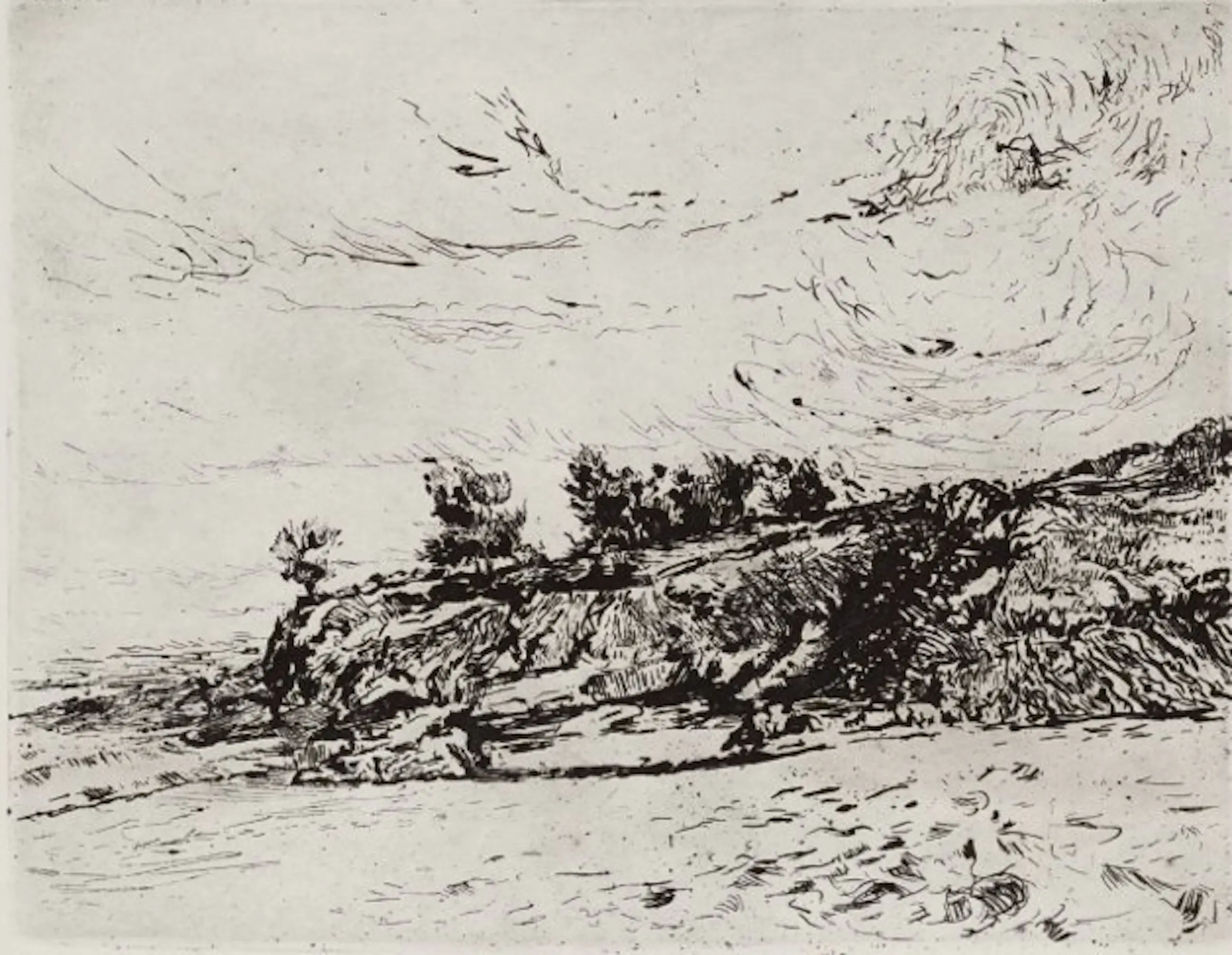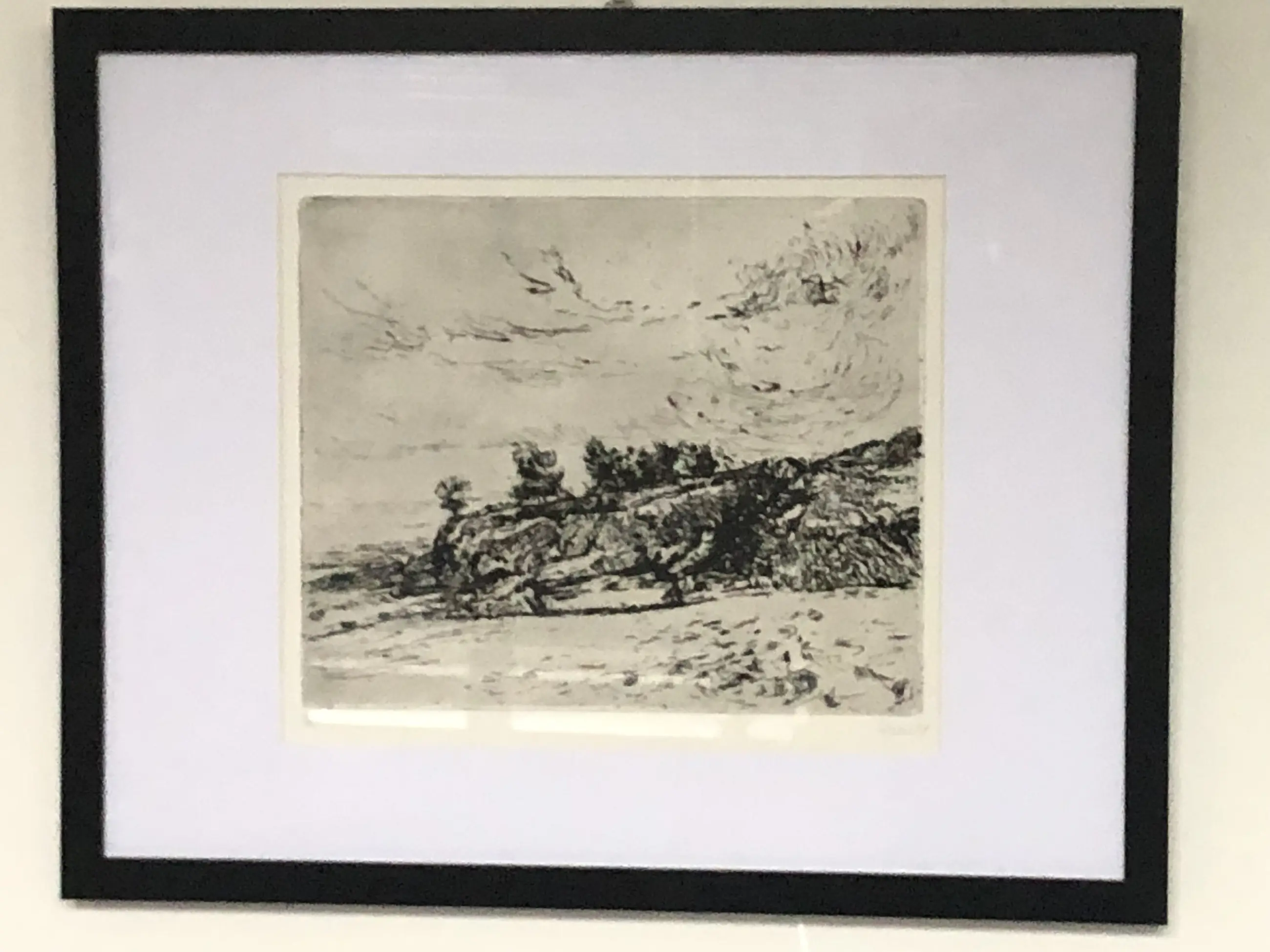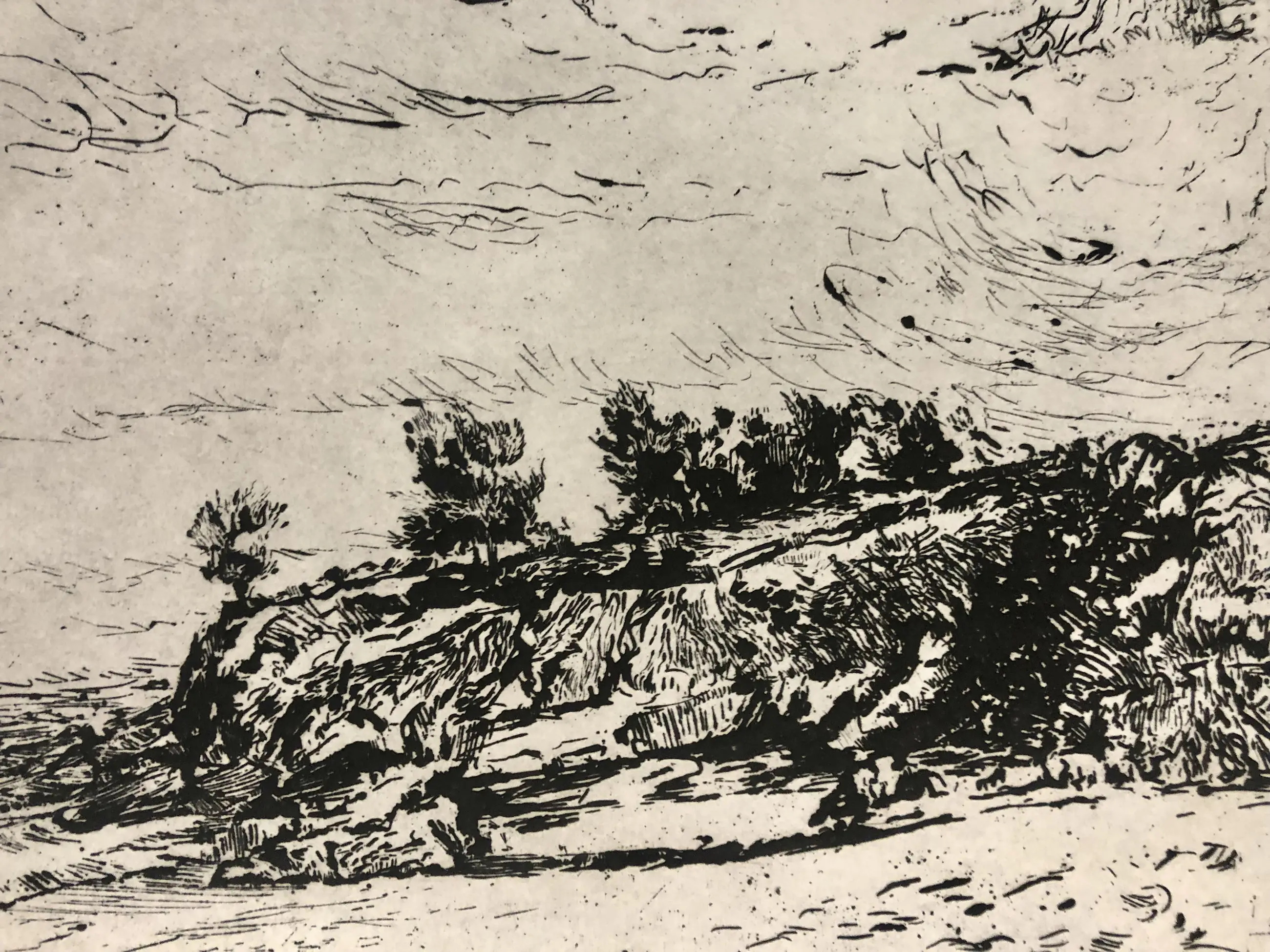 Prachtig ruig Spaans landschap in kleine oplage, gevat in nette houten lijst en passe-partout. Tijdens zijn academietijd aan de Academie voor Beeldende Kunsten in Utrecht (1979-1984) bekwaamt Adri Dijkhorst zich onder meer in het maken van diepdrukken, zinketsen en kopergravures. Na zijn opleiding aan de kunstacademie gaat hij zich vooral toeleggen op het schilderen van landschappen in olieverf.