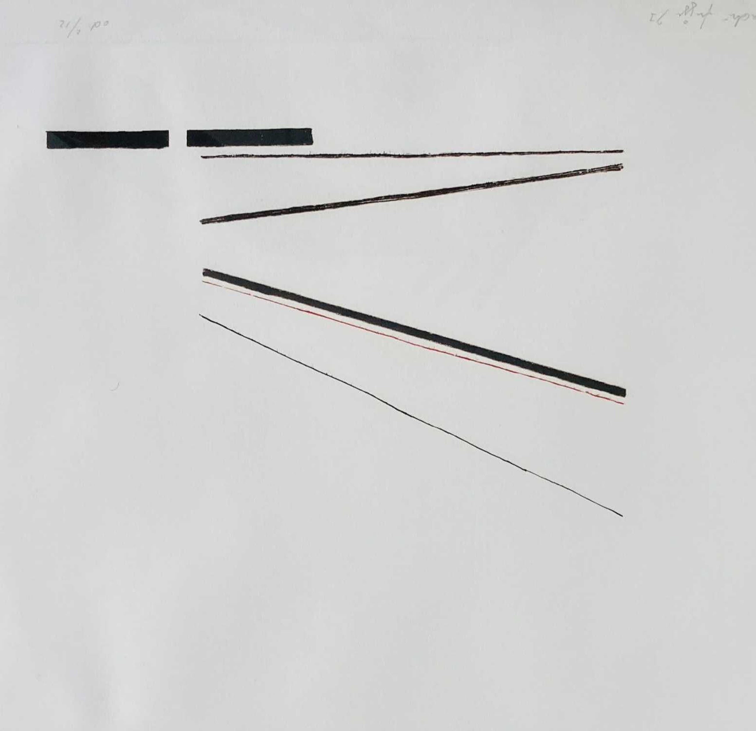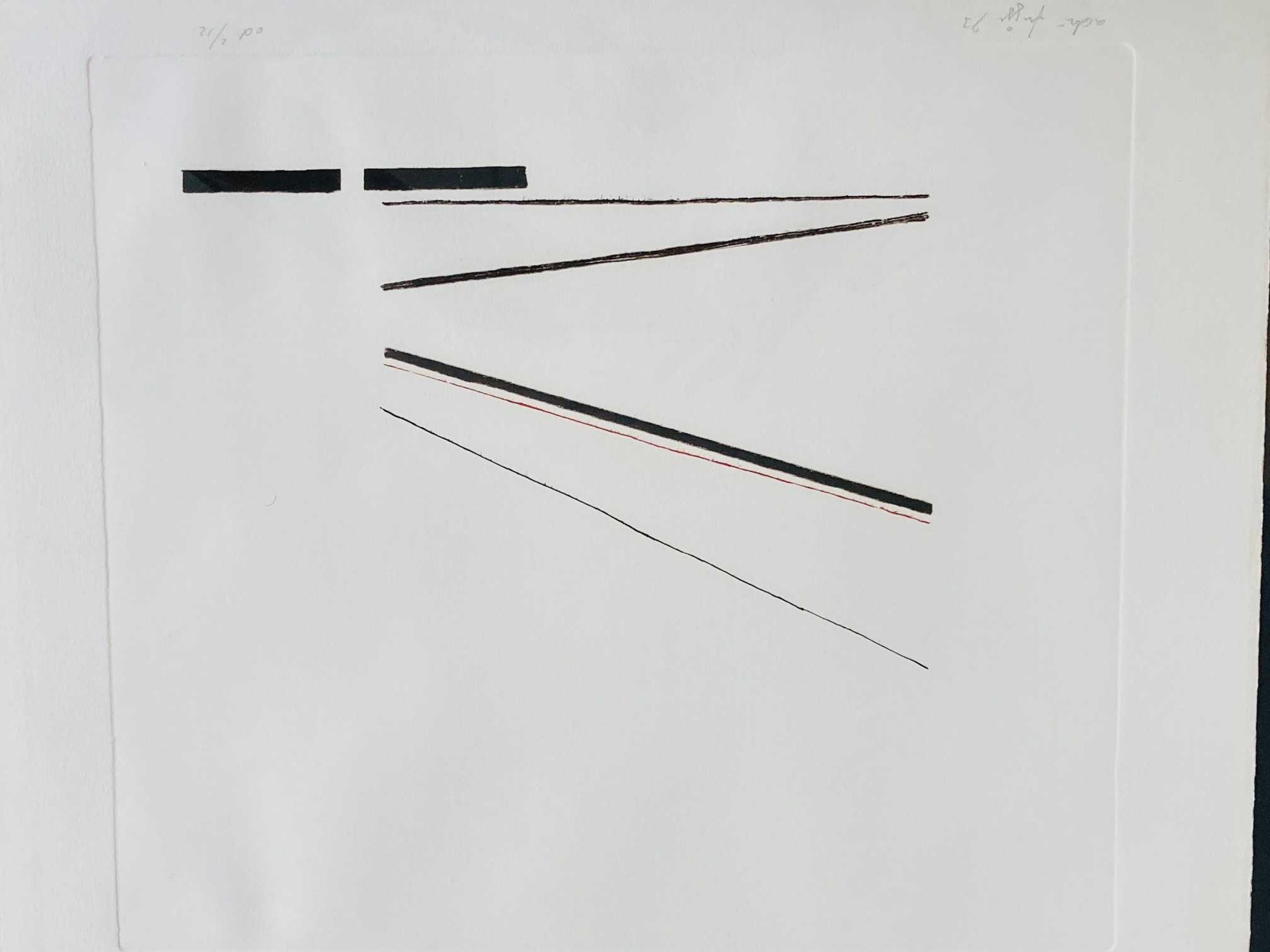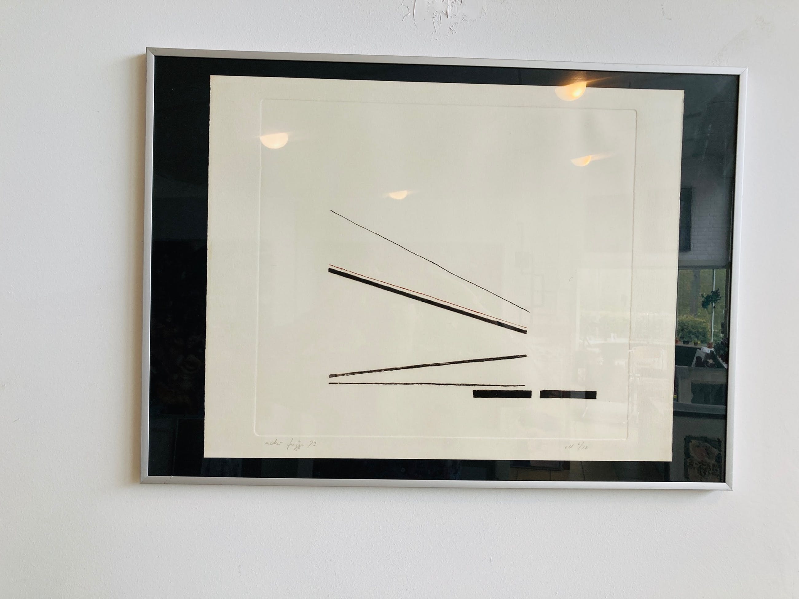 Mooi minimalistisch werk van Adri Frigge. Het werk heeft een lijst maar het kan ook zonder lijst worden toegezonden per aangetekende post. Gesigneerd en genummerd door de kunstenaar. U kunt het werk komen beoordelen in de schatkamer van Rotor in Gorinchem.
