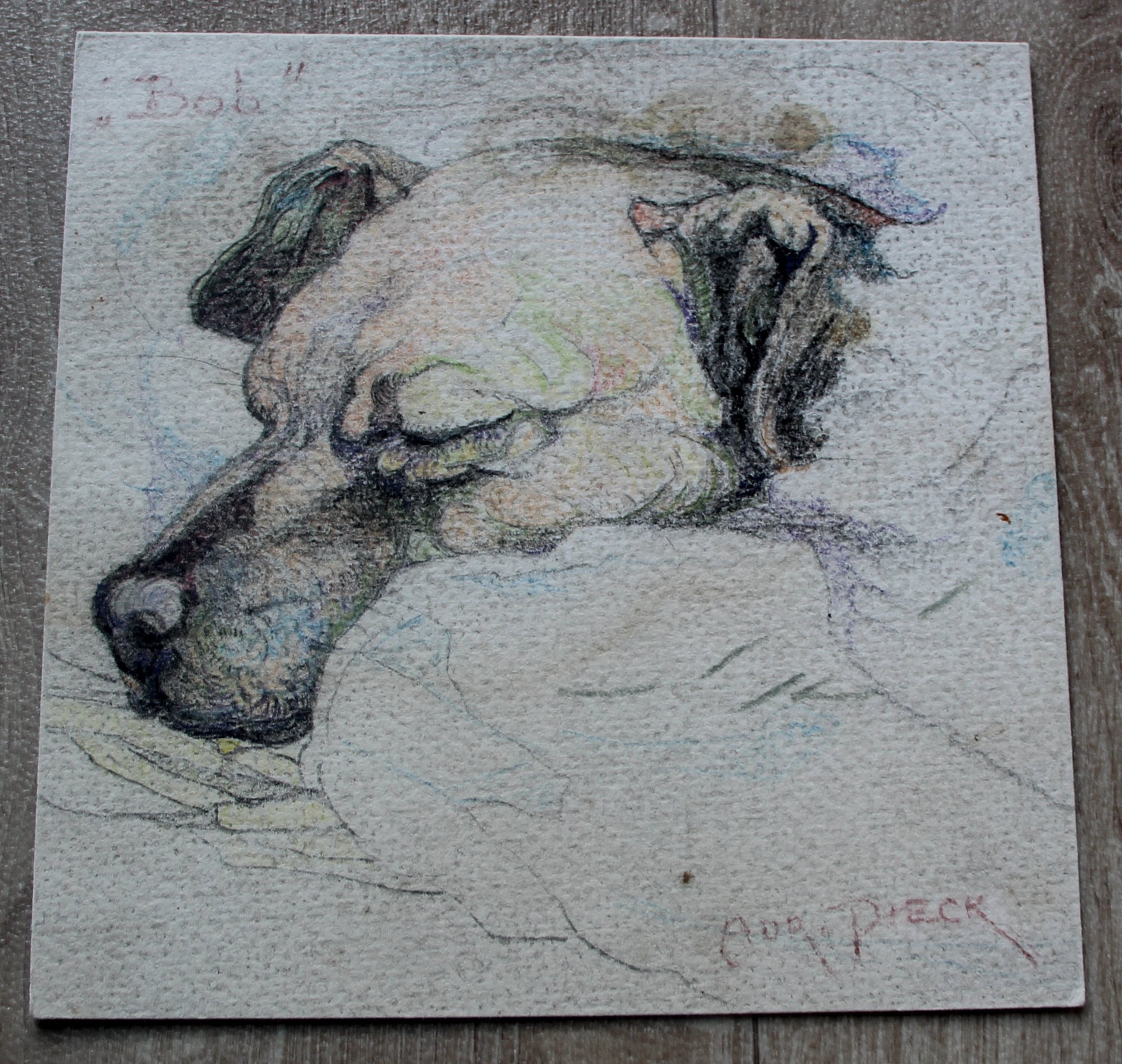 Tekening van Adri Pieck. Titel: Bob. Afmetingen voorstelling H16 X b16. Het werk is rechts onder gesigneerd door de kunstenaar. De authenticiteit van het aangeboden werk wordt volledig gegarandeerd. Een certificaat van echtheid kan, op aanvraag worden gemaild.