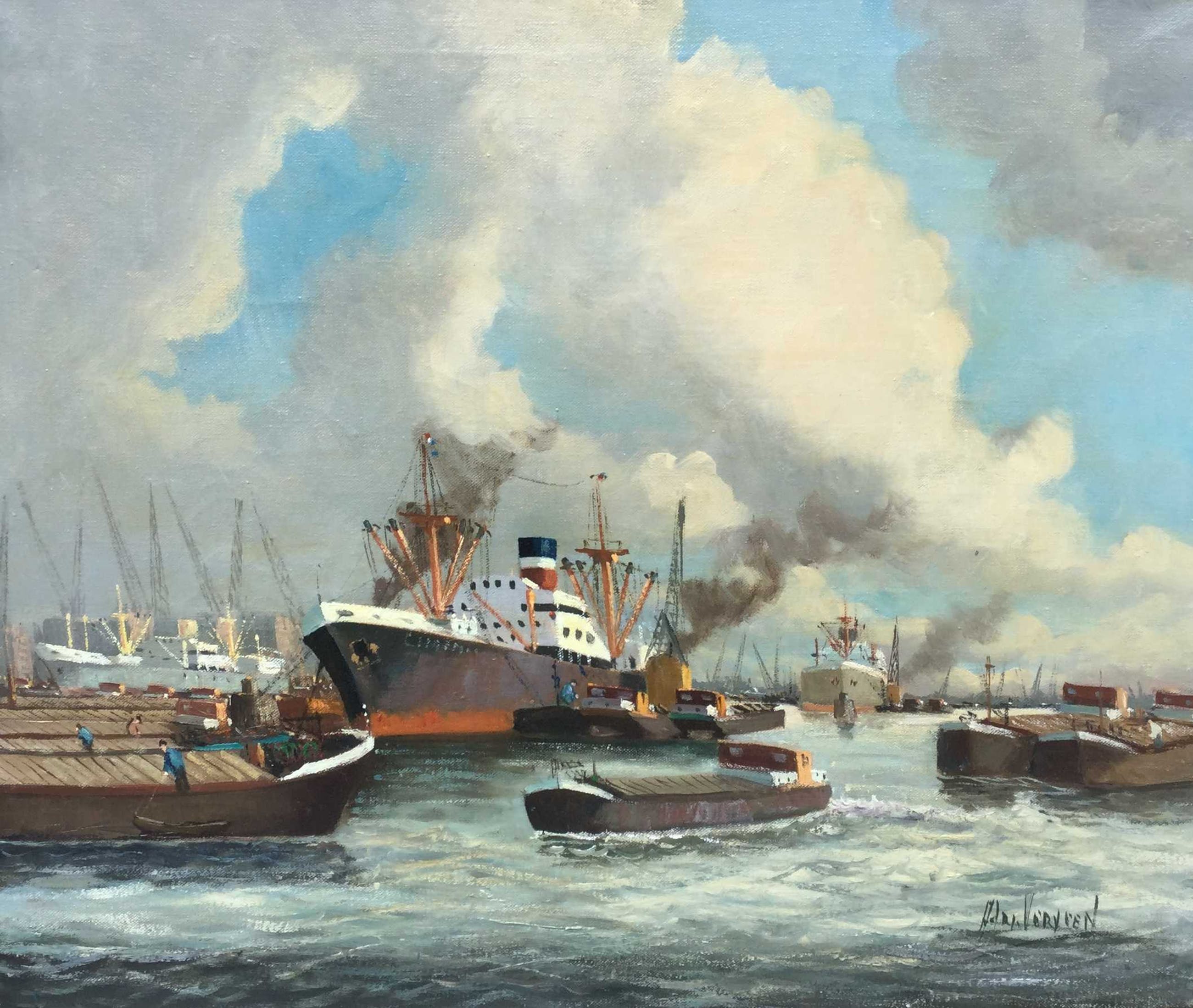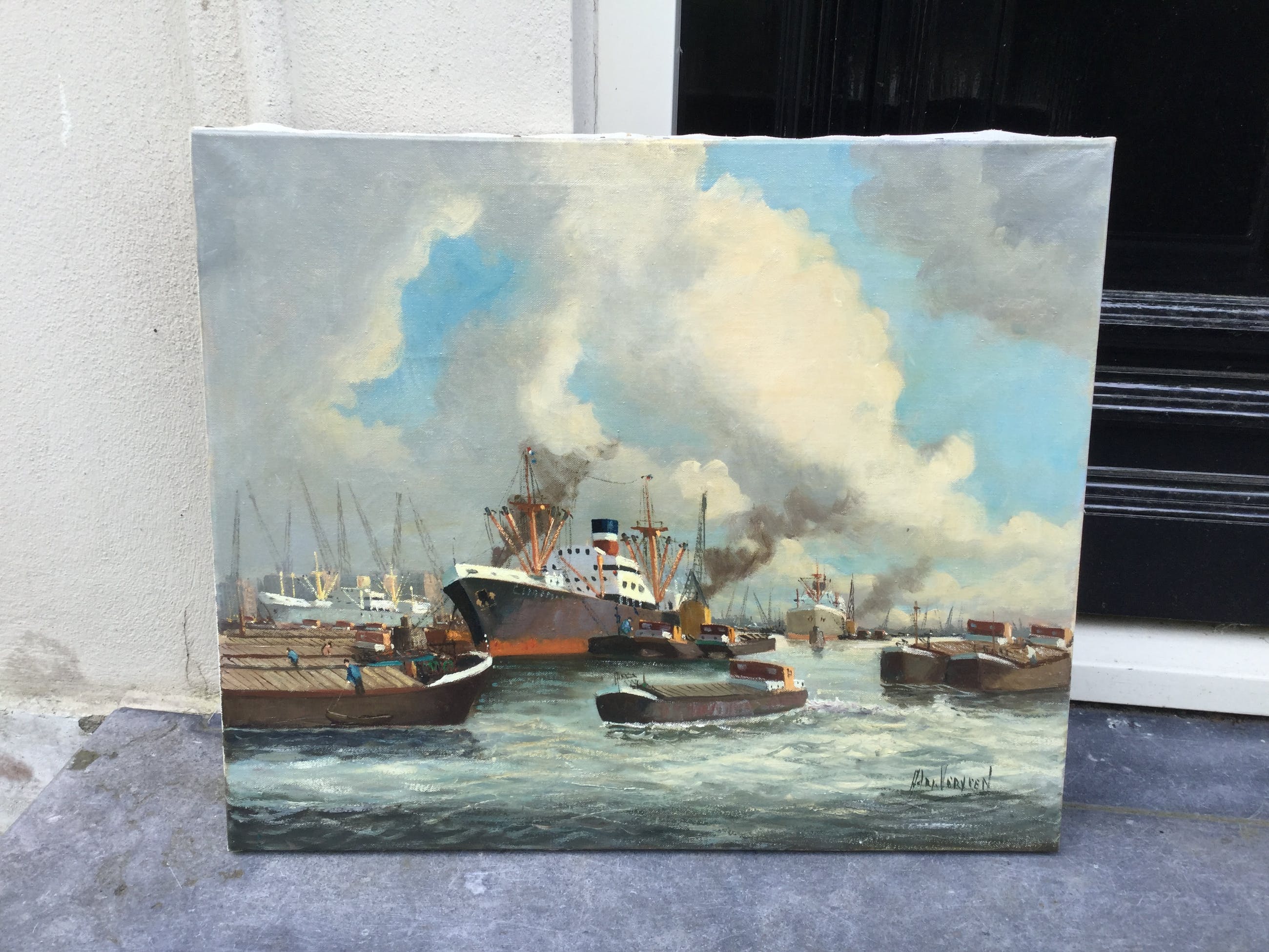 C4674-5, Adri Verveen, havengezicht Olie op doek, rechtsonder gesigneerd Doekmaat 50.5 x 60.5 cm, zonder lijst.