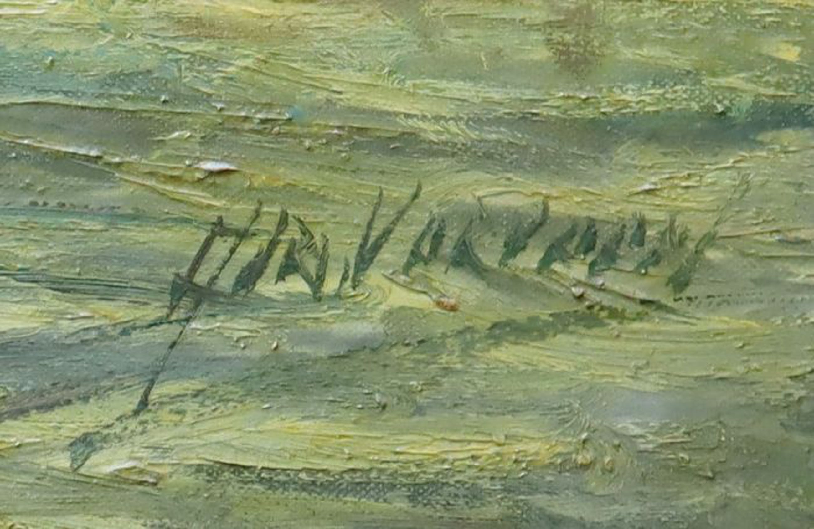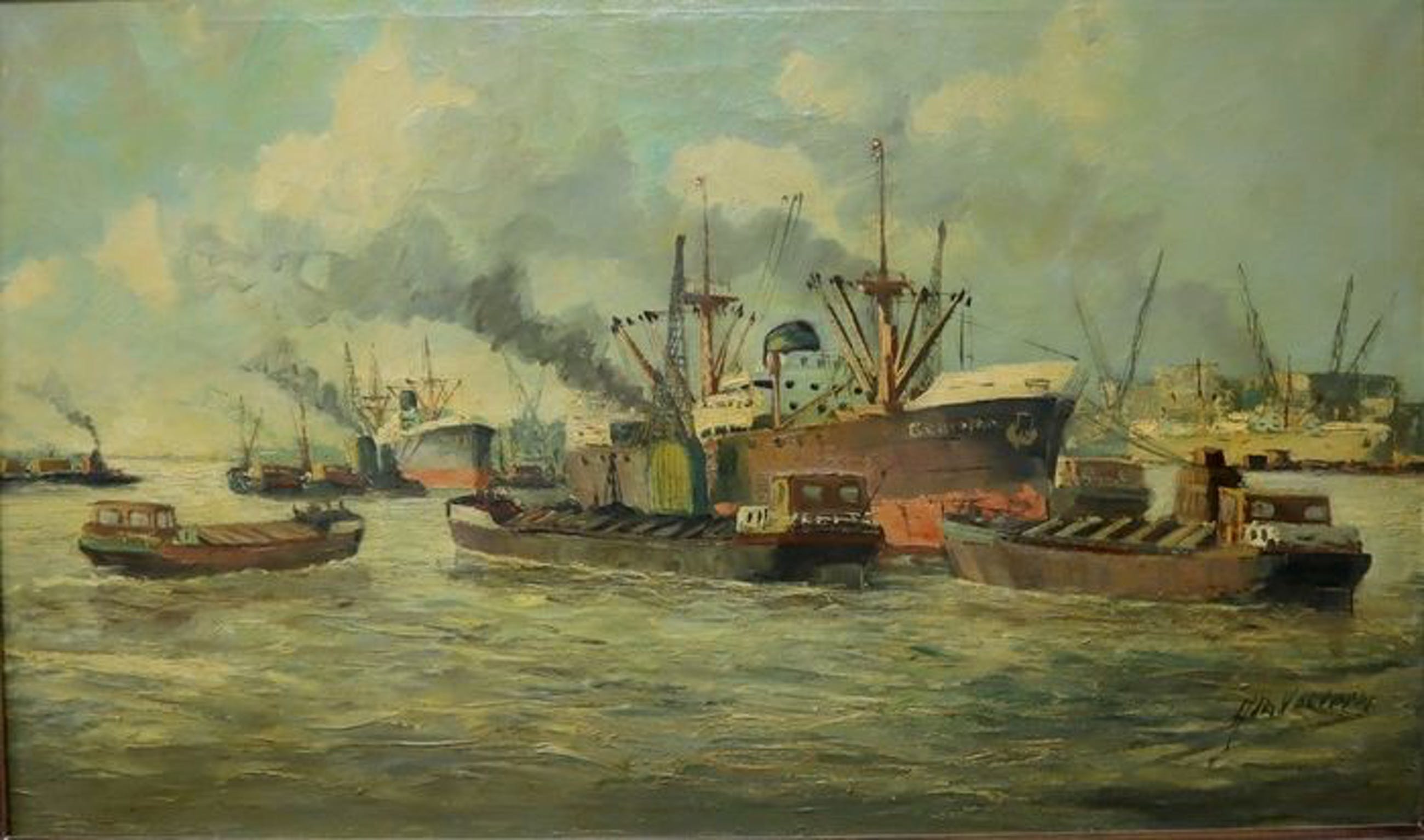 Adri Verveen Geboren 24 april 1912 - 16 oktober 1988 Adrinus Verveen was leerling van de Akademie v. B.K. te Rotterdam o.l.v. Wim van Dordt. Heeft tevens les gehad van Gerard Wiegman. Hij schilderde en aquarelleerde in impressionistische trant havengezichten en landschappen.