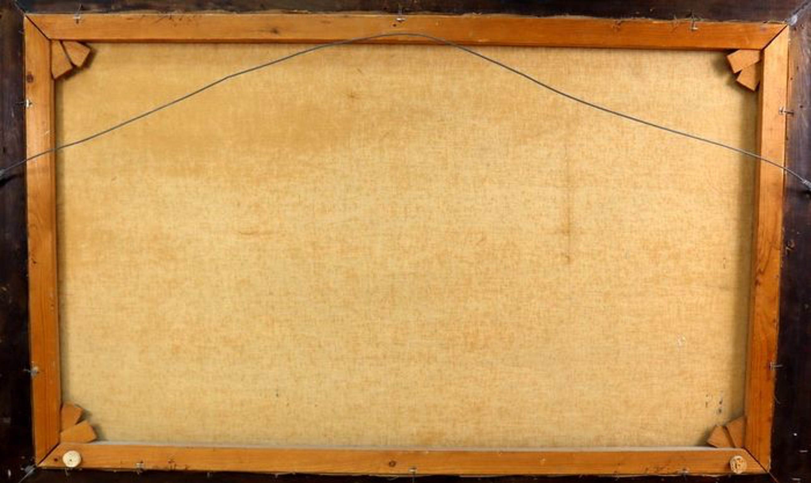 Het doek is in goede conditie. Antieke lijst heeft enkele kleine beschadigingen.