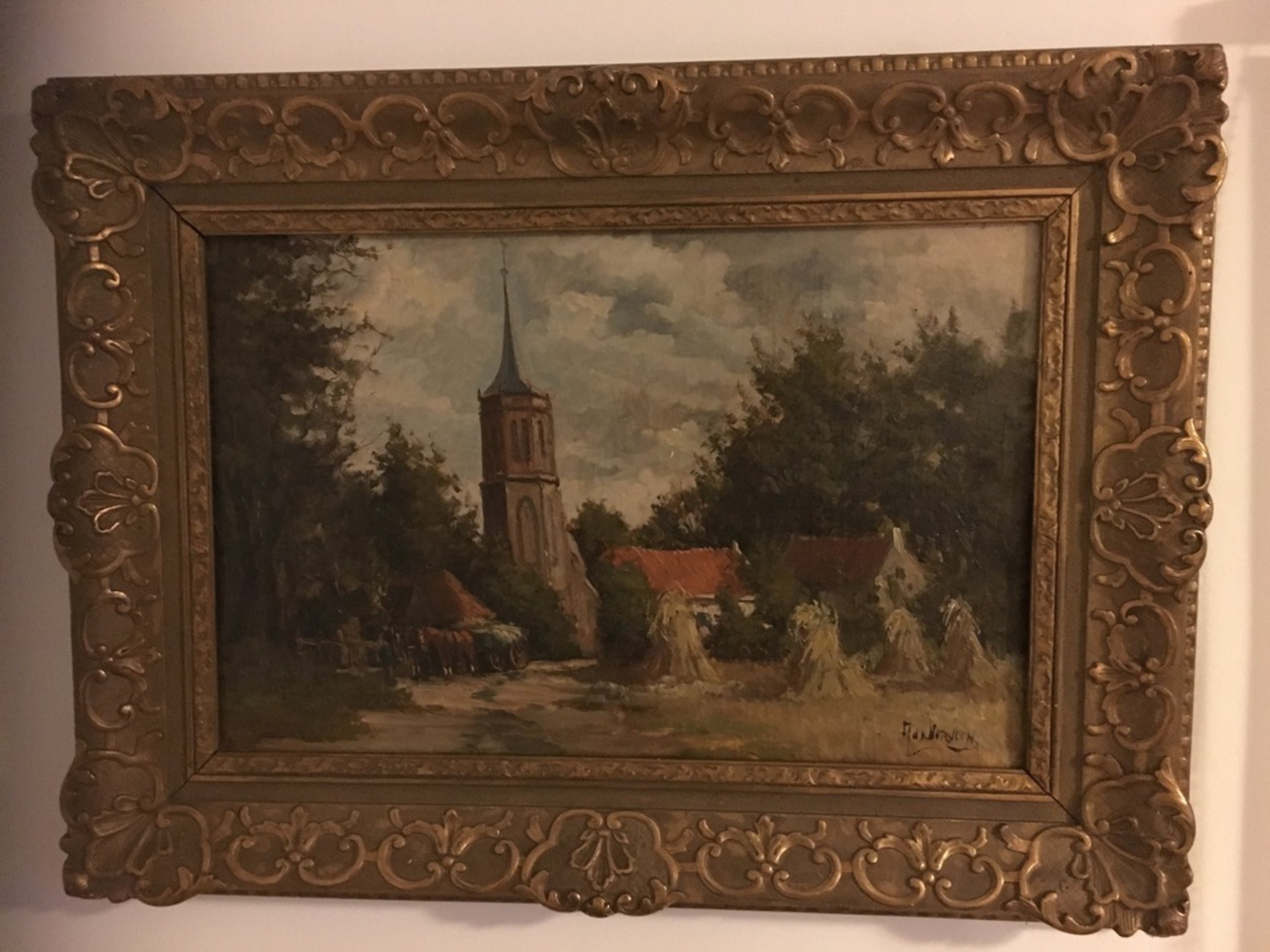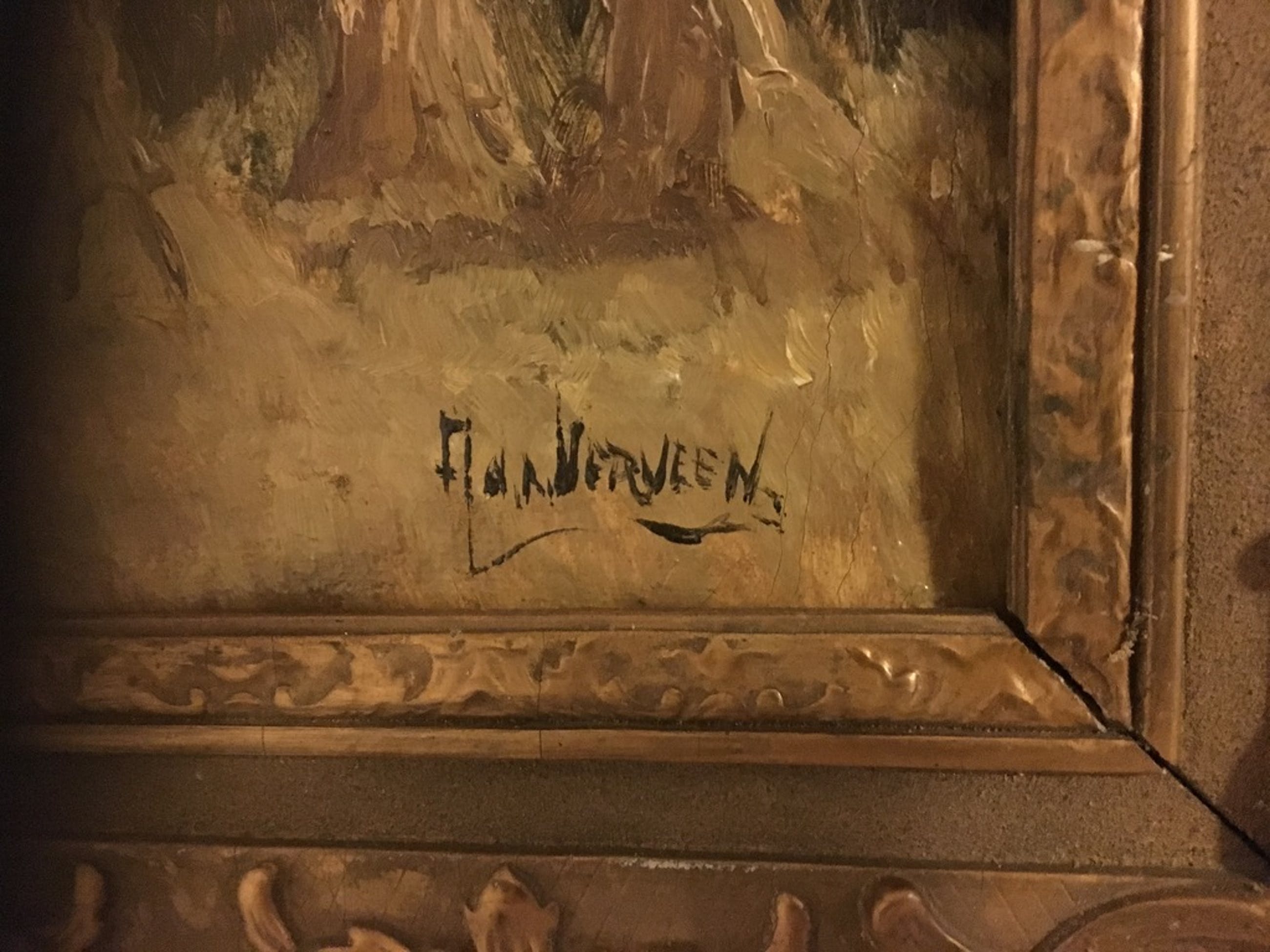Fraai antiek schilderij gesigneerd verveen mooi goed geschilderd stuk met mooie lijst AFM 77 bij 62 cm