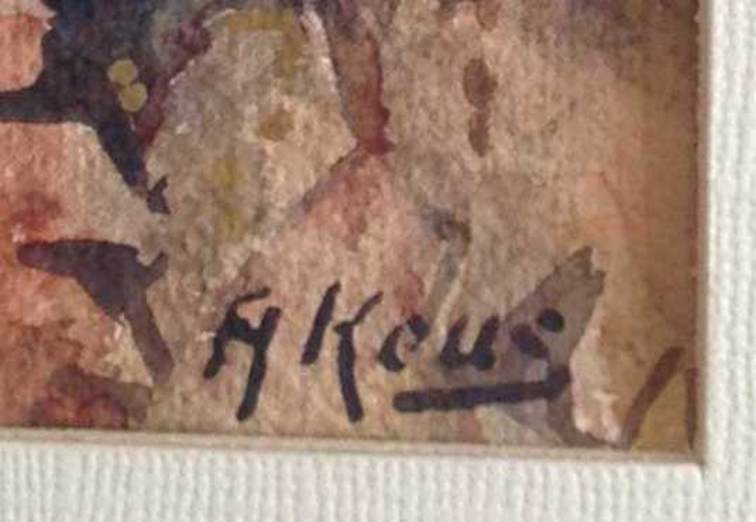 papier vergeeld, aquarel in goede staat. Op karton verlijmd