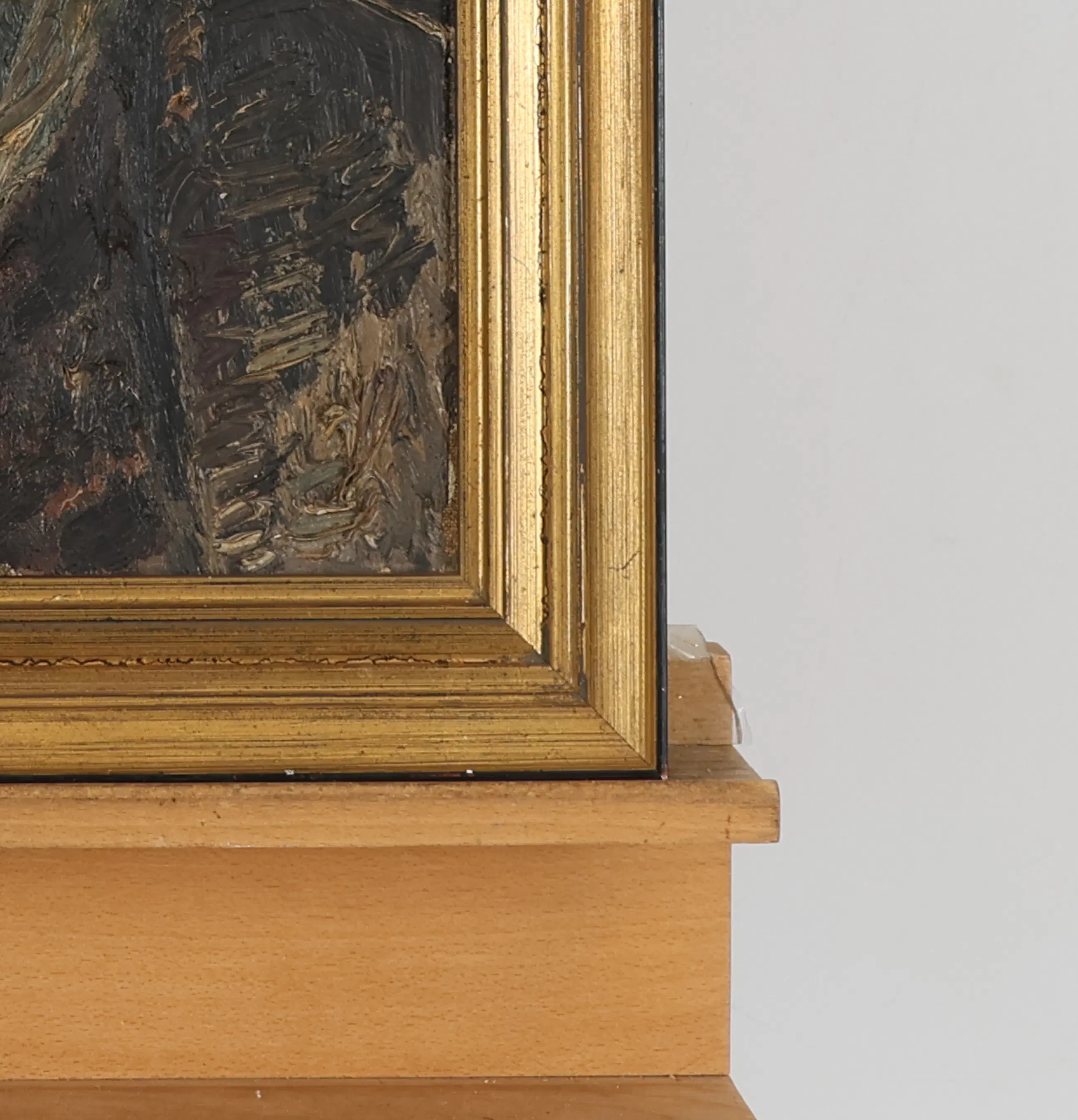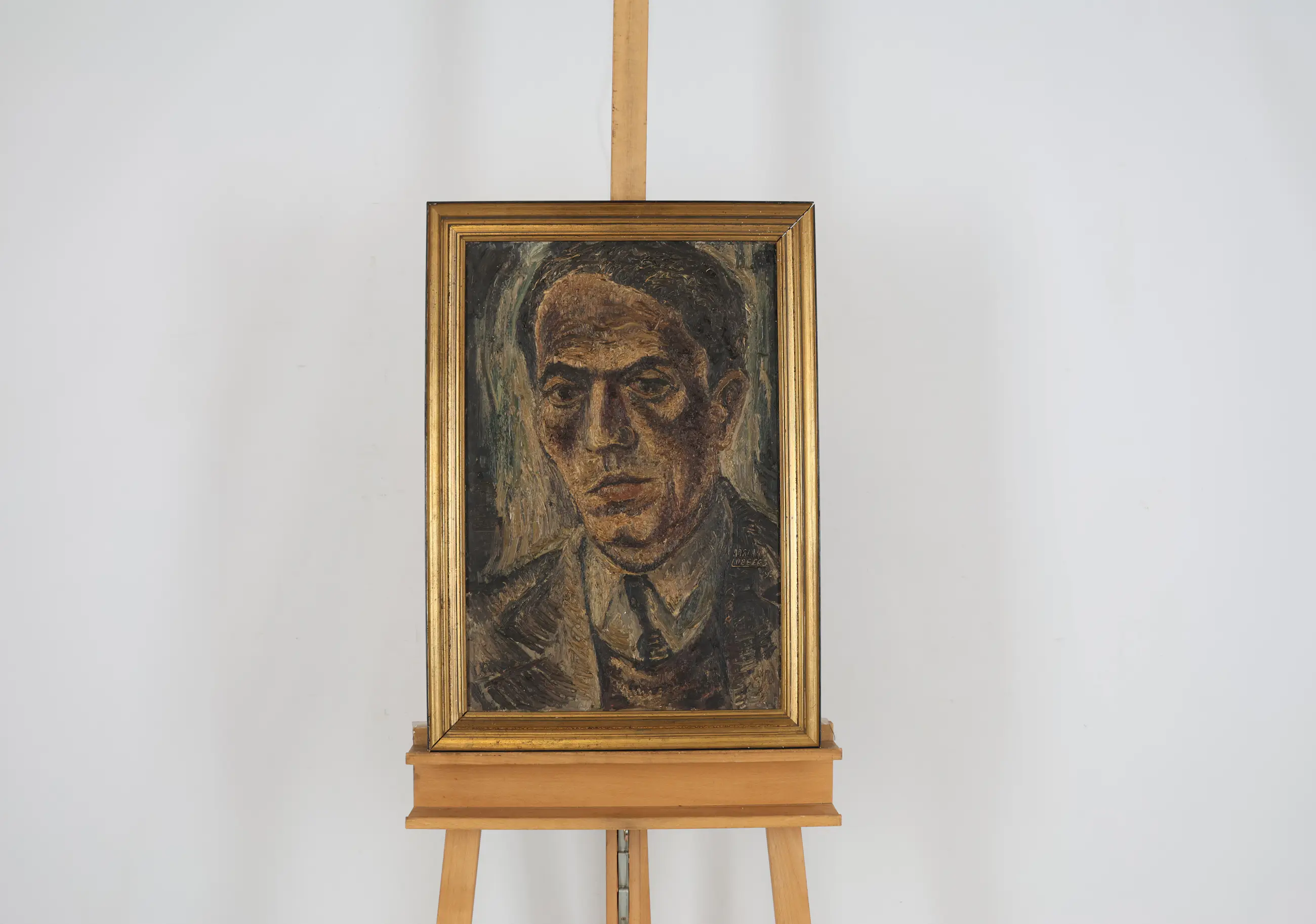 Het portret gemaakt door Adriaan Lubbers (1892-1954) toont waarschijnlijk Leo Gestel, een beroemde Nederlandse kunstenaar die Lubbers’ mentor en goede vriend was. In de vroege jaren 1920s woonde Lubbers in Bergen, waar hij bevriend raakte met Gestel. Samen behoorde zij tot de kunststroming van de Bergense school. Deze stroming werd gekenmerkt door een expressionistische stijl en kubistische invloeden.