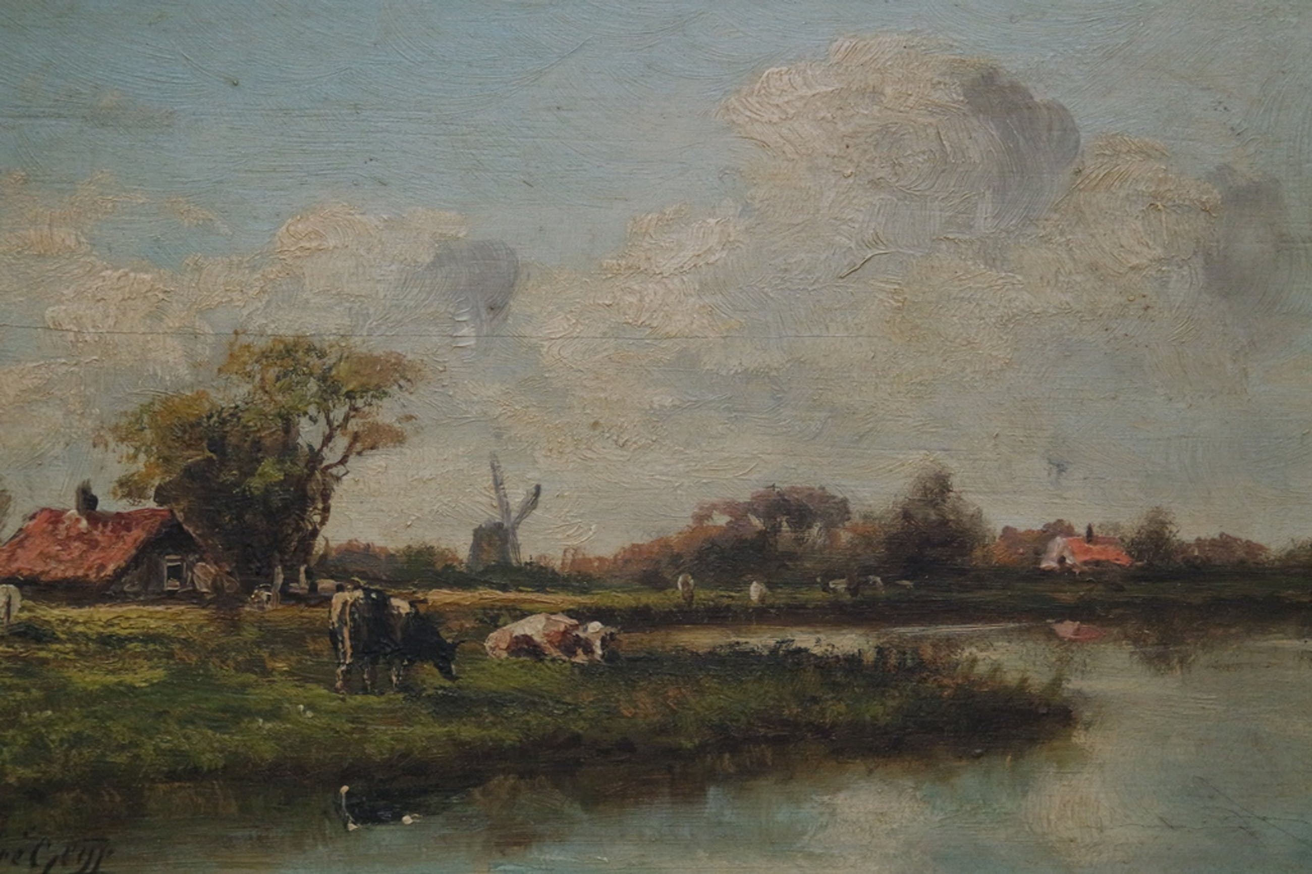 Een prachtig landschapsschilderij van de kunstenaar Adriaan Marinus Geijp. Met mooie lijst. Gesigneerd links onder.