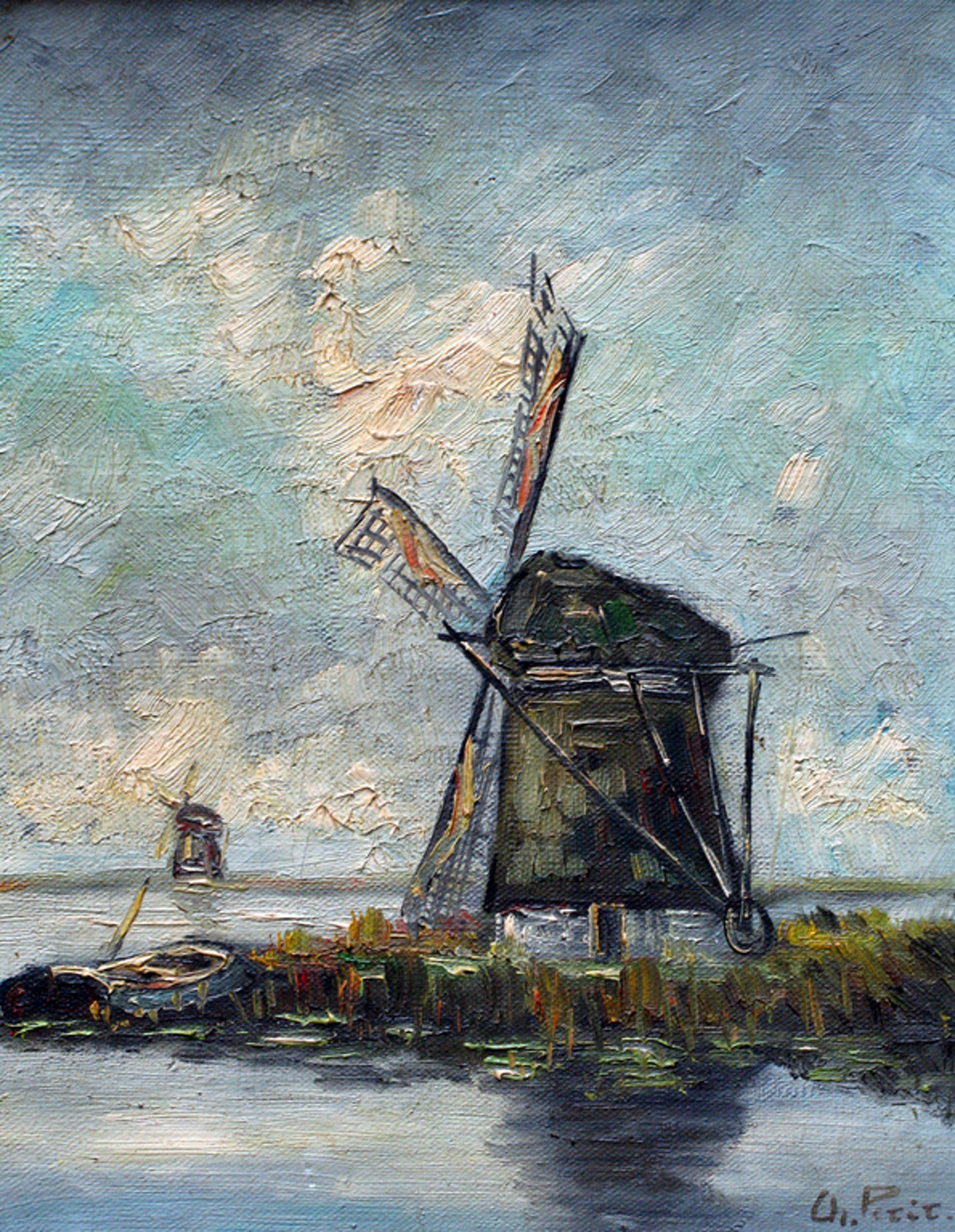Betreft prachtig klein landschap in olieverf op linnen. Terhell werkte onder het pseudoniem "C.H Petit" en woonde en werkte het grootste deel van zijn kunstenaars leven in Bussum, daarna verhuisde hij naar Den Haag. In 1899 werd hij door de hoge raad van Adel aangewezen als de schilder voor het maken van familie wapens. Het werk is klassiek ingelijst, compleet met ophangsysteem en kan zondermeer direct aan de wand worden opgehangen.