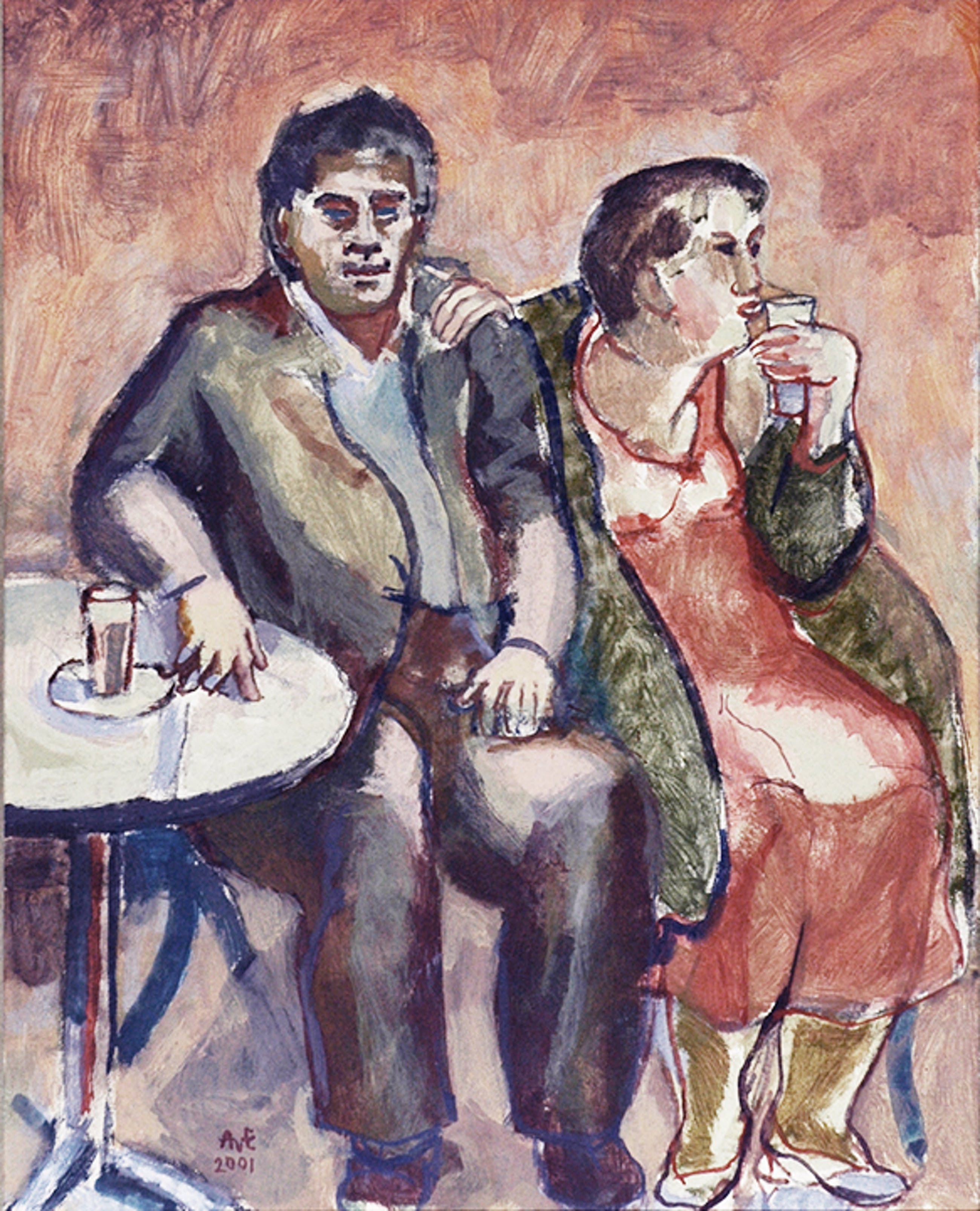 Adriaan van Esveld (Soest, 1947) is opgeleid aan de Academie voor Beeldende Kunsten in Arnhem. Hij maakt houtsnedes, houtdruk, aquarellen, tekeningen, gewassen inkt, tempera en olieverf schilderijen. De kunstenaar verdiept zich in temperaverf. De onderwerpen in de kunstwerken van Van Esveld zijn meestal alledaagse handelingen tussen mensen, maar ook dieren kunnen een onderwerp zijn. Door ze uit het alledaagse te isoleren krijgen ze een speciale betekenis. Belangrijk zijn de weglatingen, de kracht in de compositie, het frontale perspectief en het kleurgebruik.