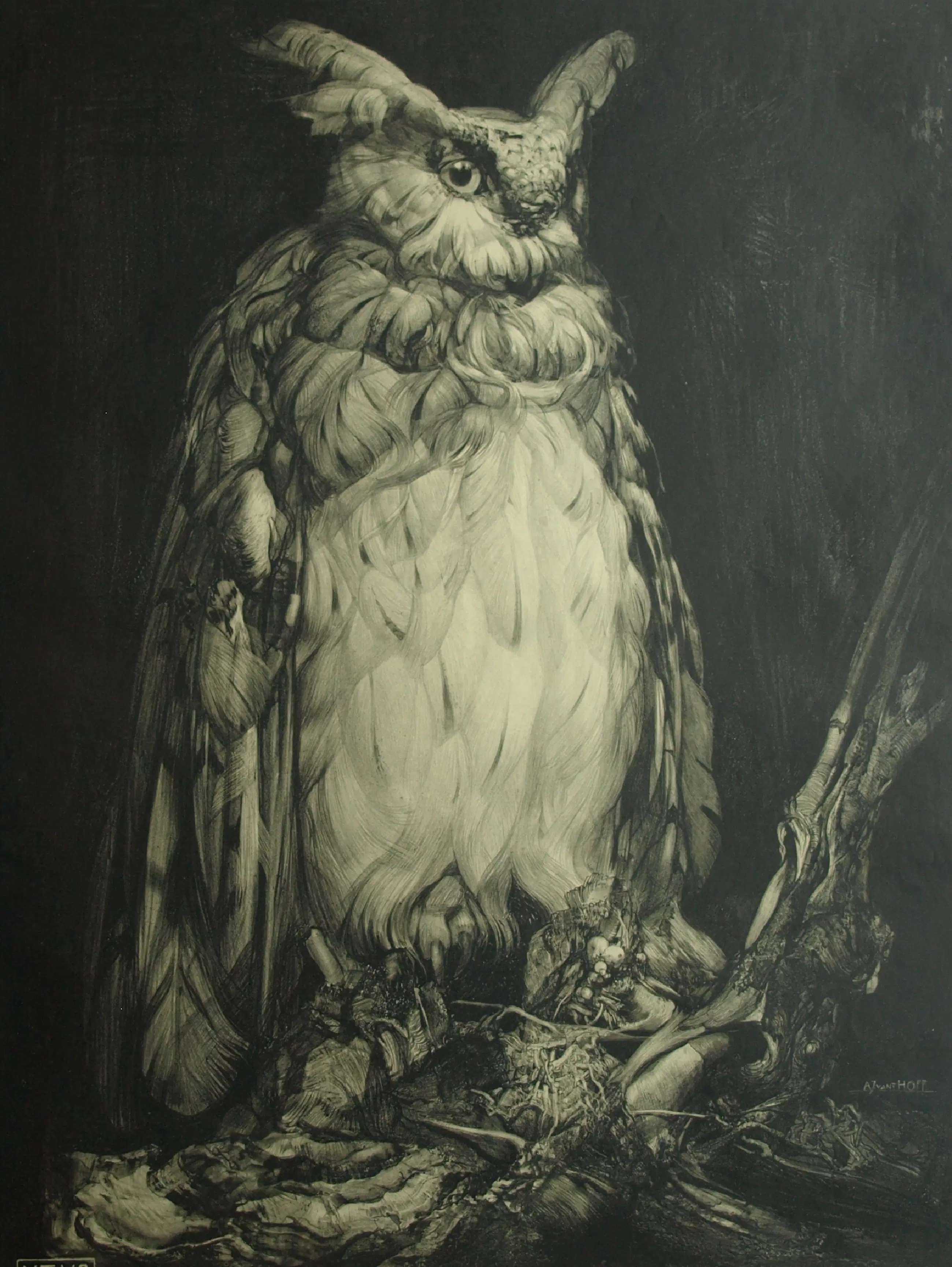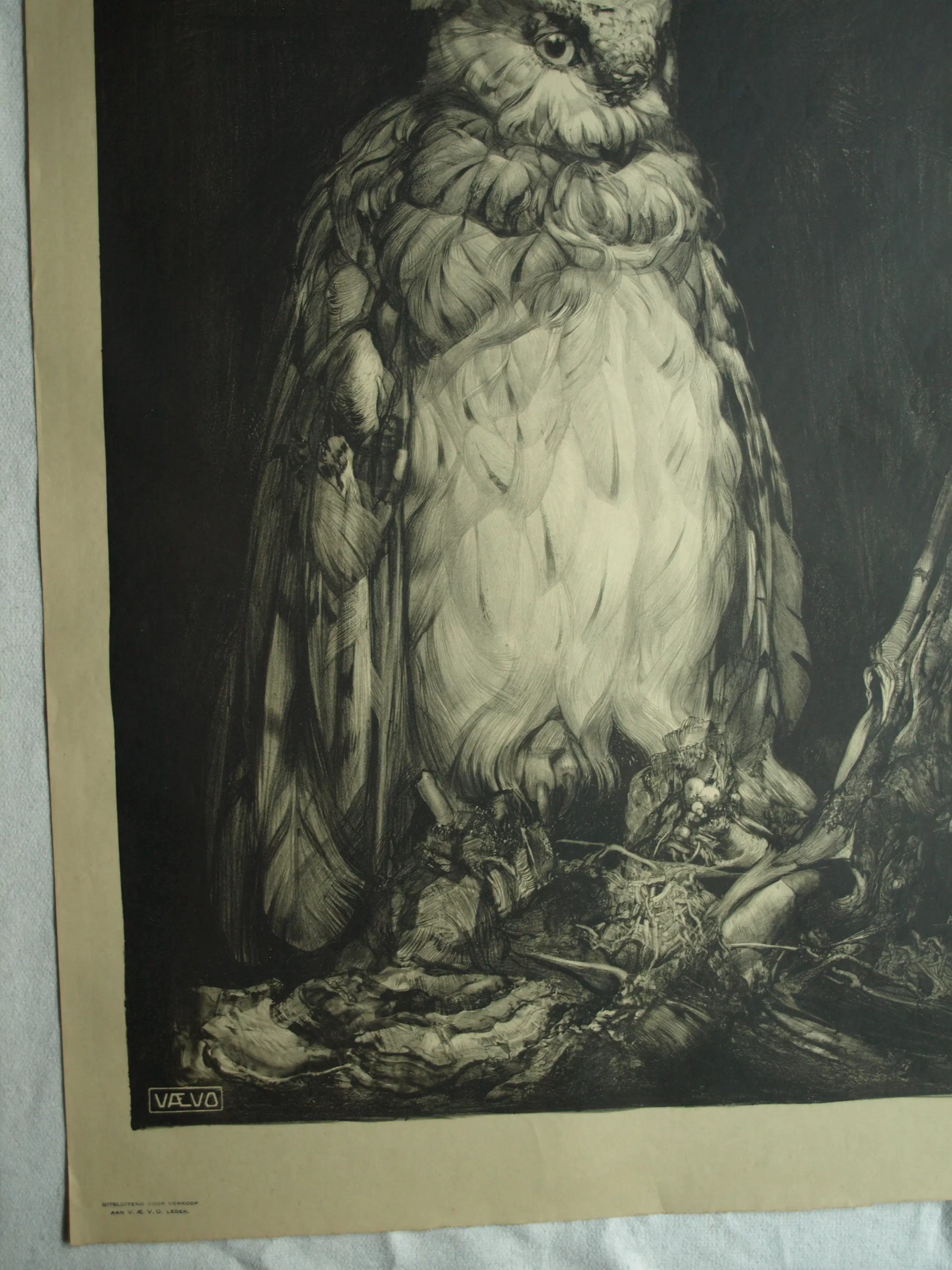 Adriaan van 't Hoff - Lithografische prent , Oehoe – Uitgegeven door De V.AE.V.O. –100x75 cm