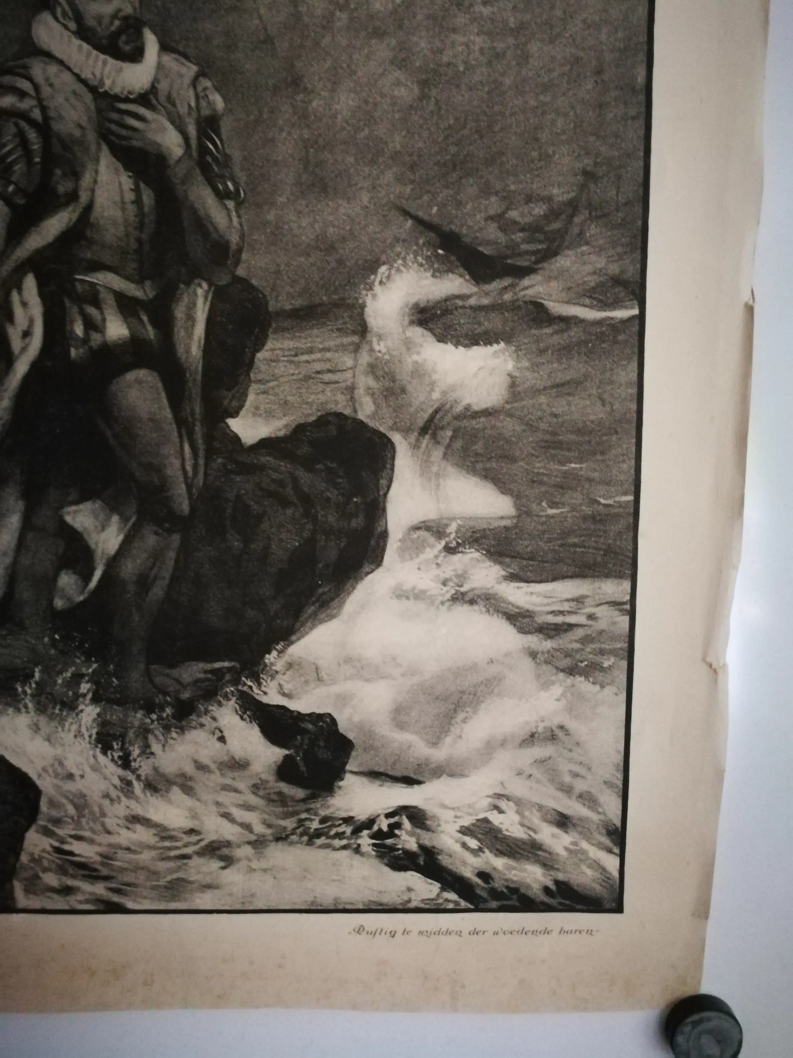Apart werk. Drukgesigneerd linksonder. Algemeen goede staat. Kreuk en scheurtje aan de rand. Niet storend. Zie foto's voor eigen oordeel kwaliteit.