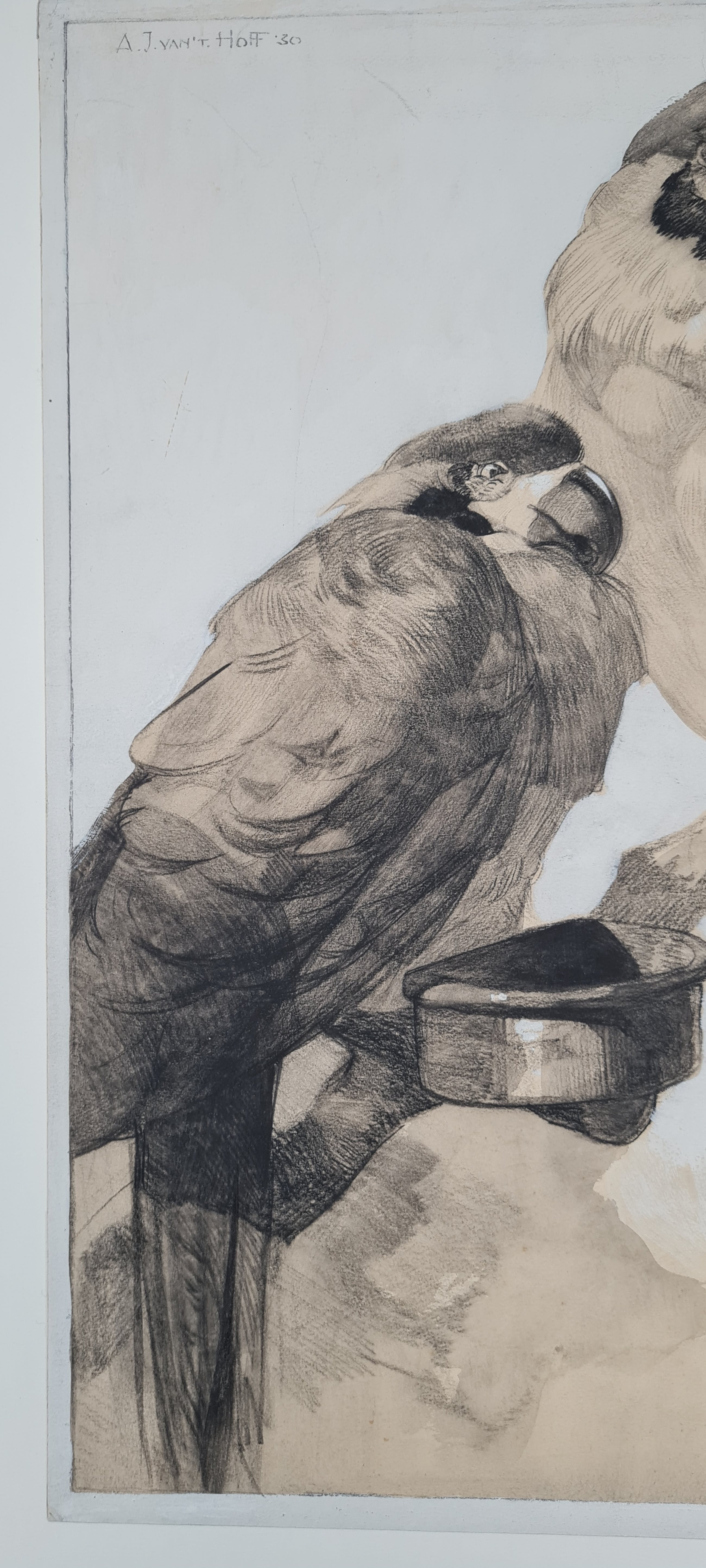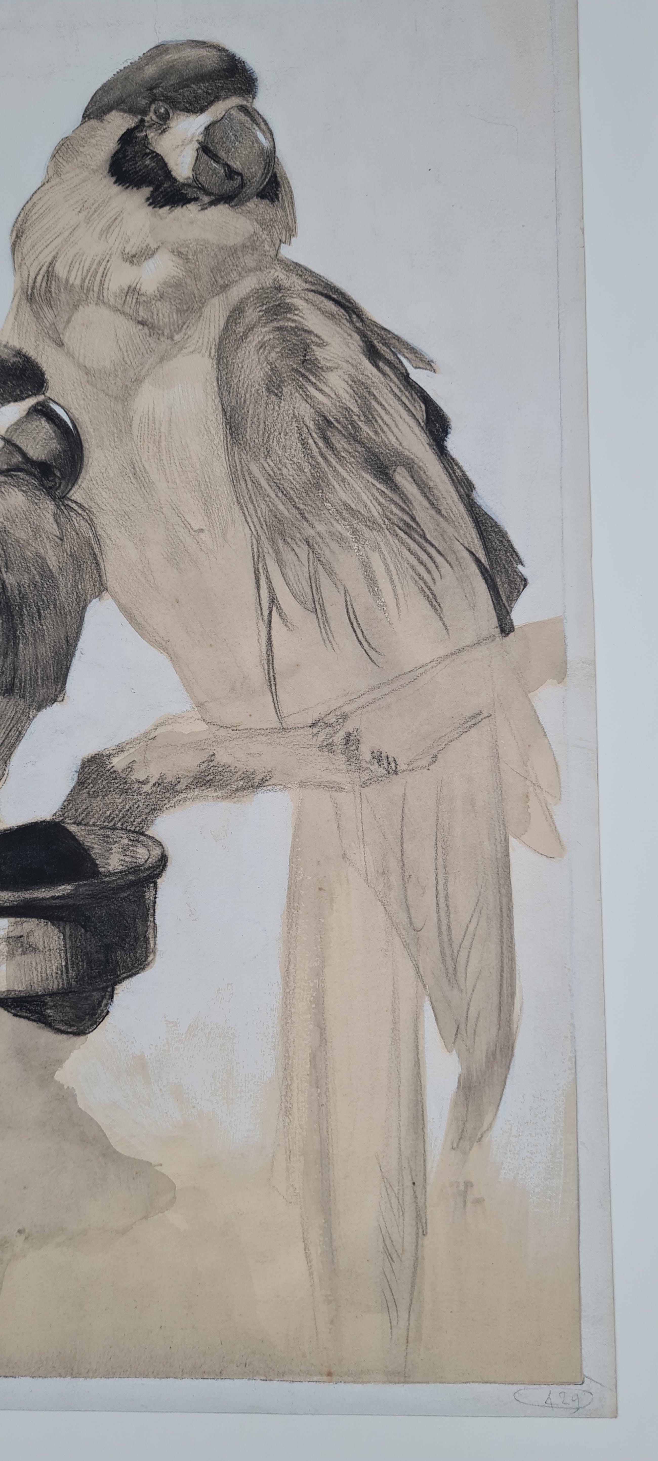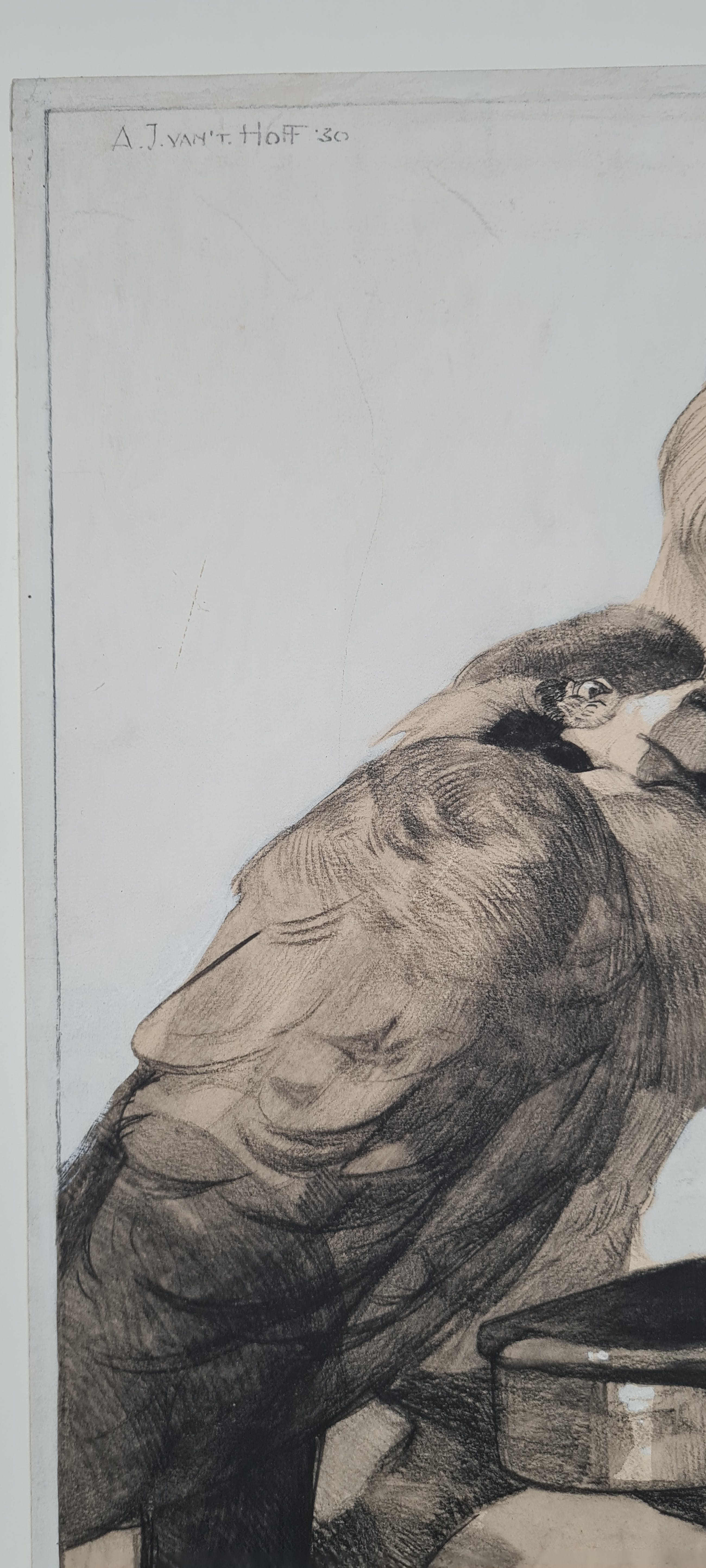 Gemengde techniek: zwart krijt, Oost-Indisch inkt en witte gouache.