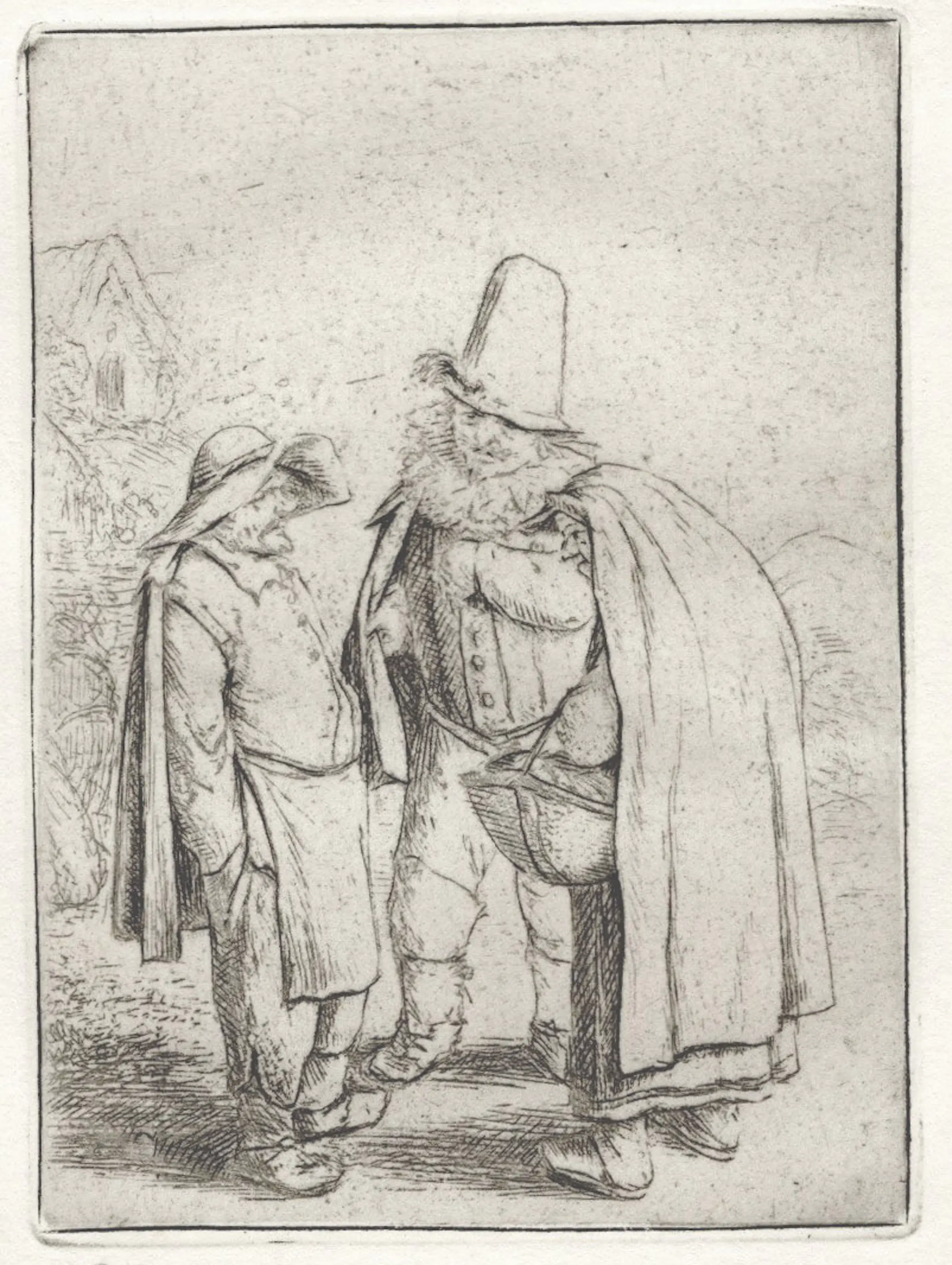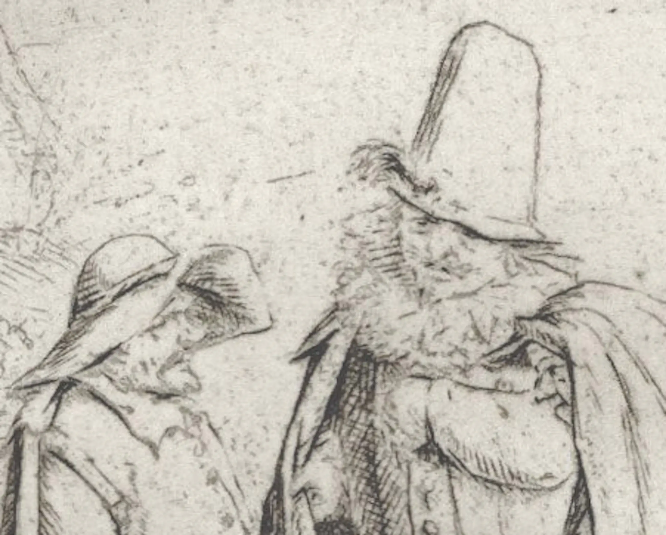titels: De kwakzalver, Drie groteske figuren, Man met plooikraag bij een boerenpaar.