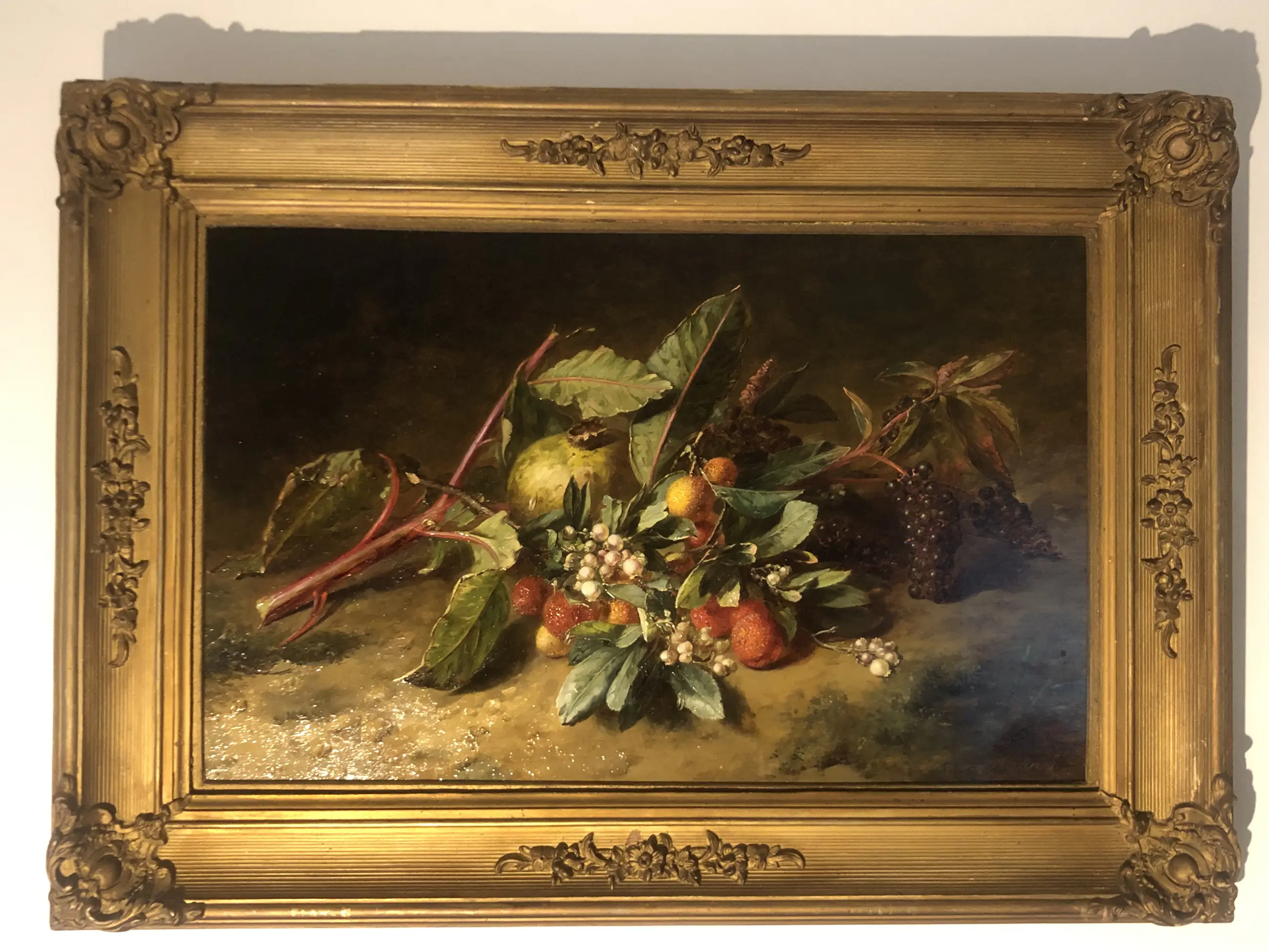 Fraai stilleven van kunstenares Adriana Haanen uit c. 1865. In smetteloze staat.
