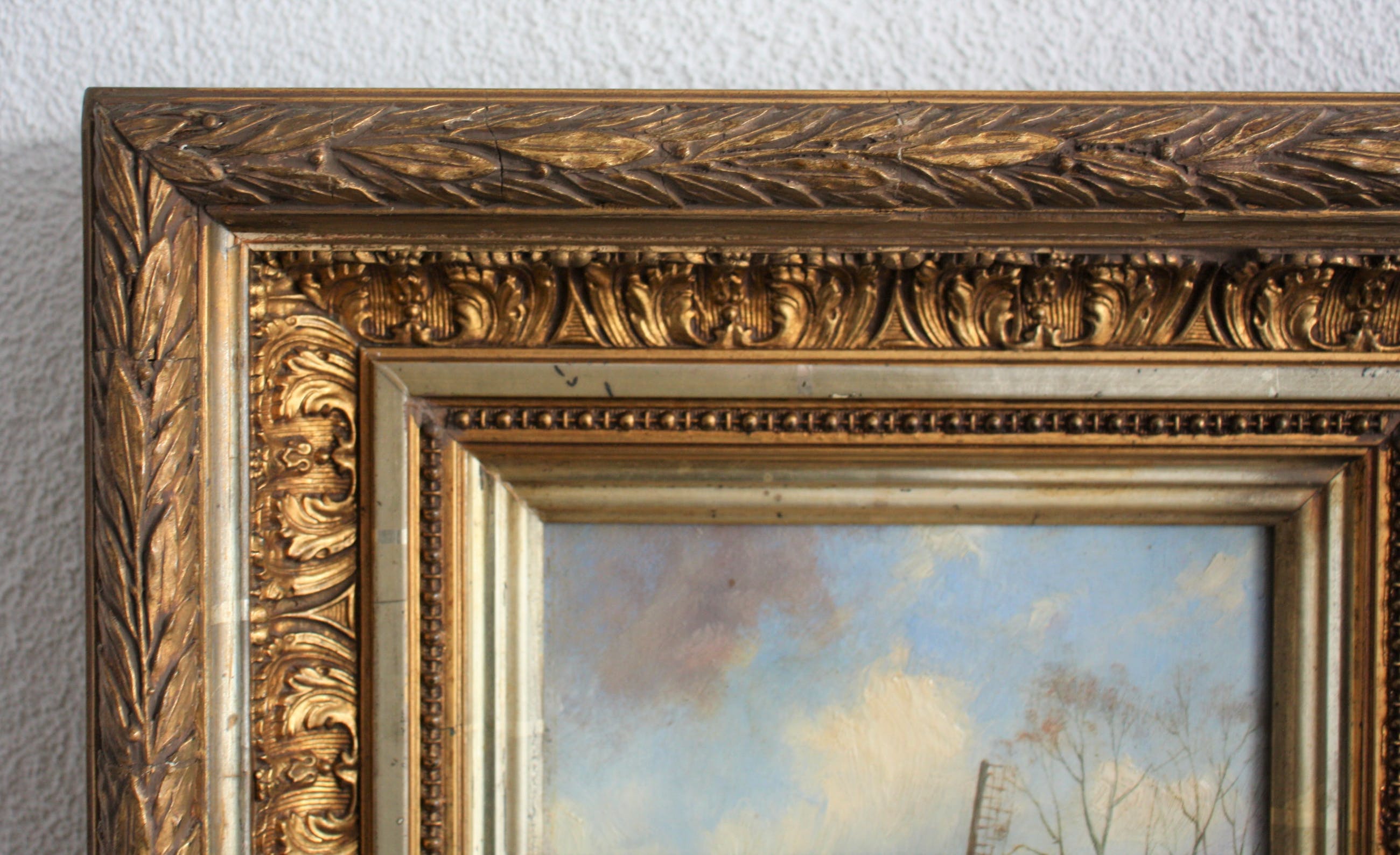 Enkele lichte verkleuringen te zien op de lijst en enkele kleine vlekjes op het paneel