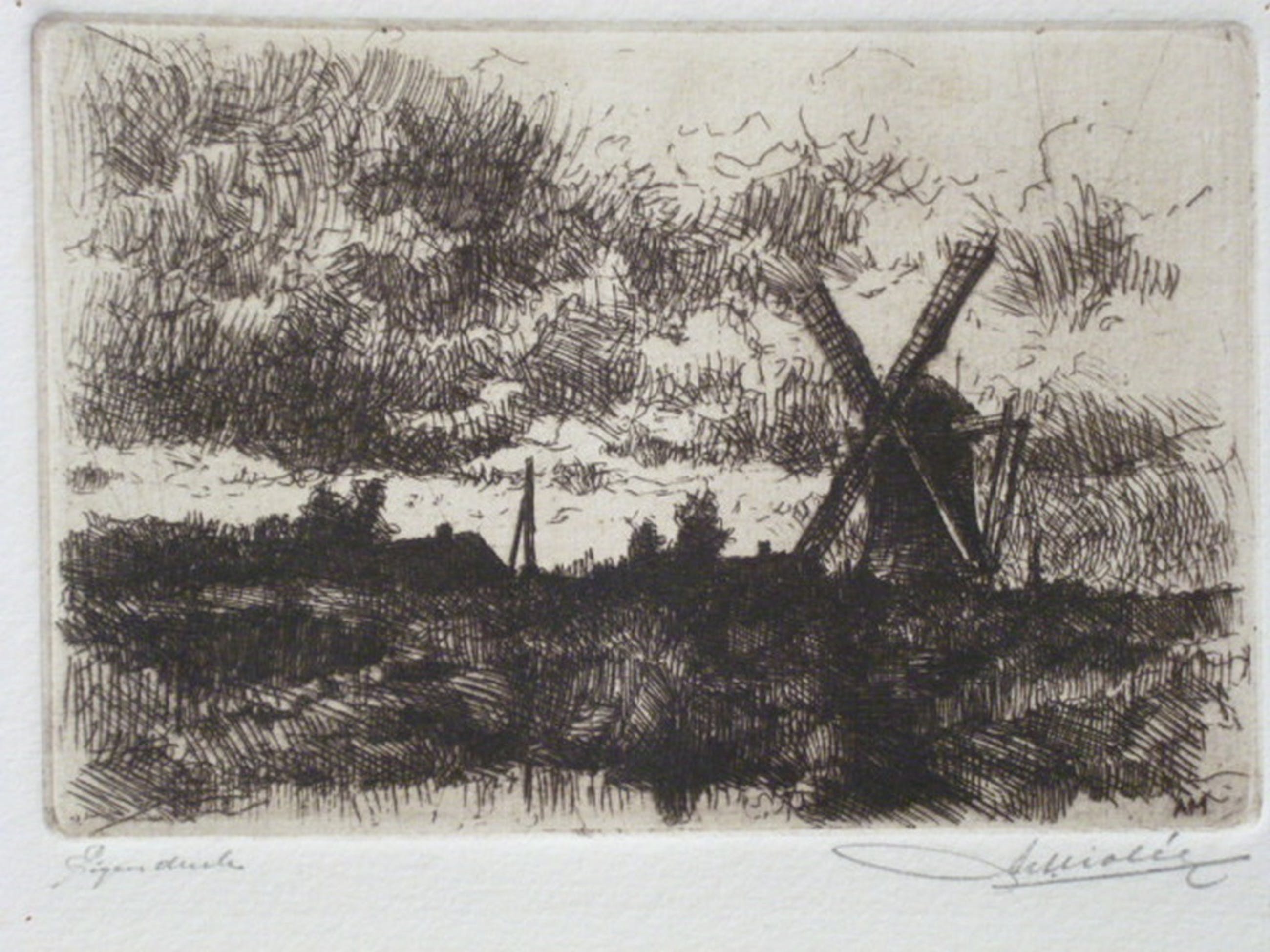 Ets. Potlood gesigneerd rechtsonder. Eigen druk linksonder.