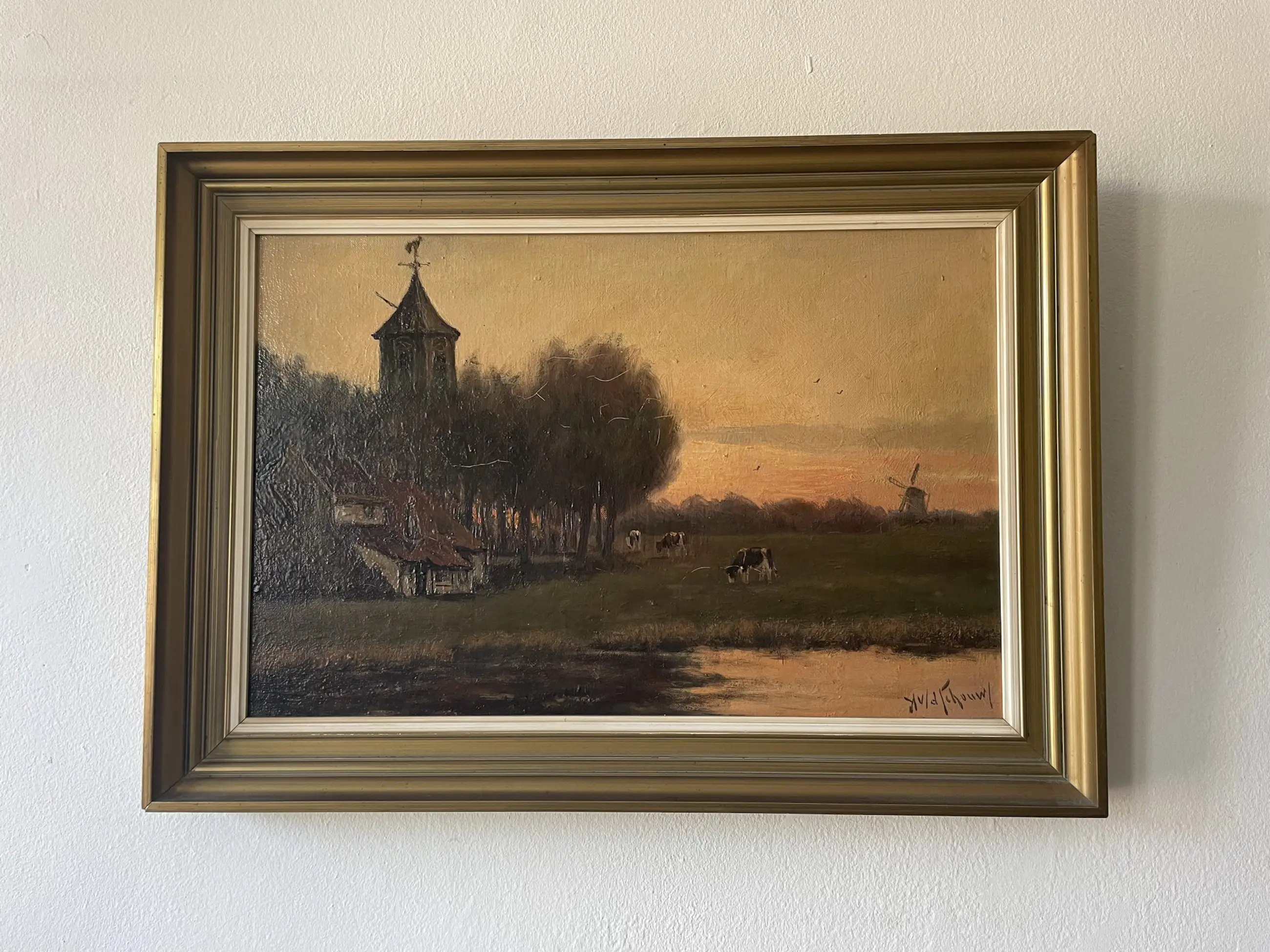 Mooi schilderij 'Uitzicht op Kethel' (Schiedam) In redelijke staat, sinds de jaren '40 in familiebezit geweest