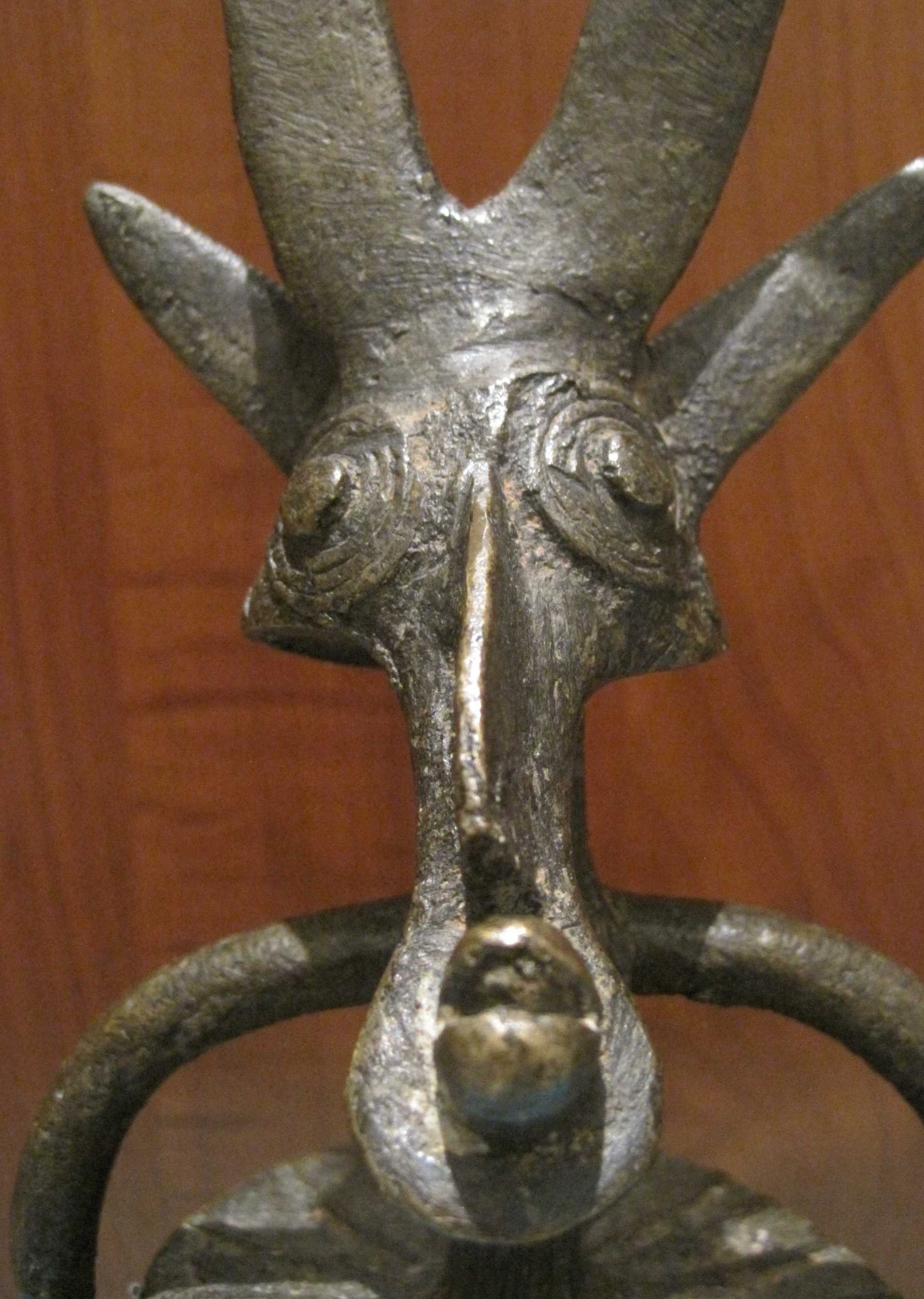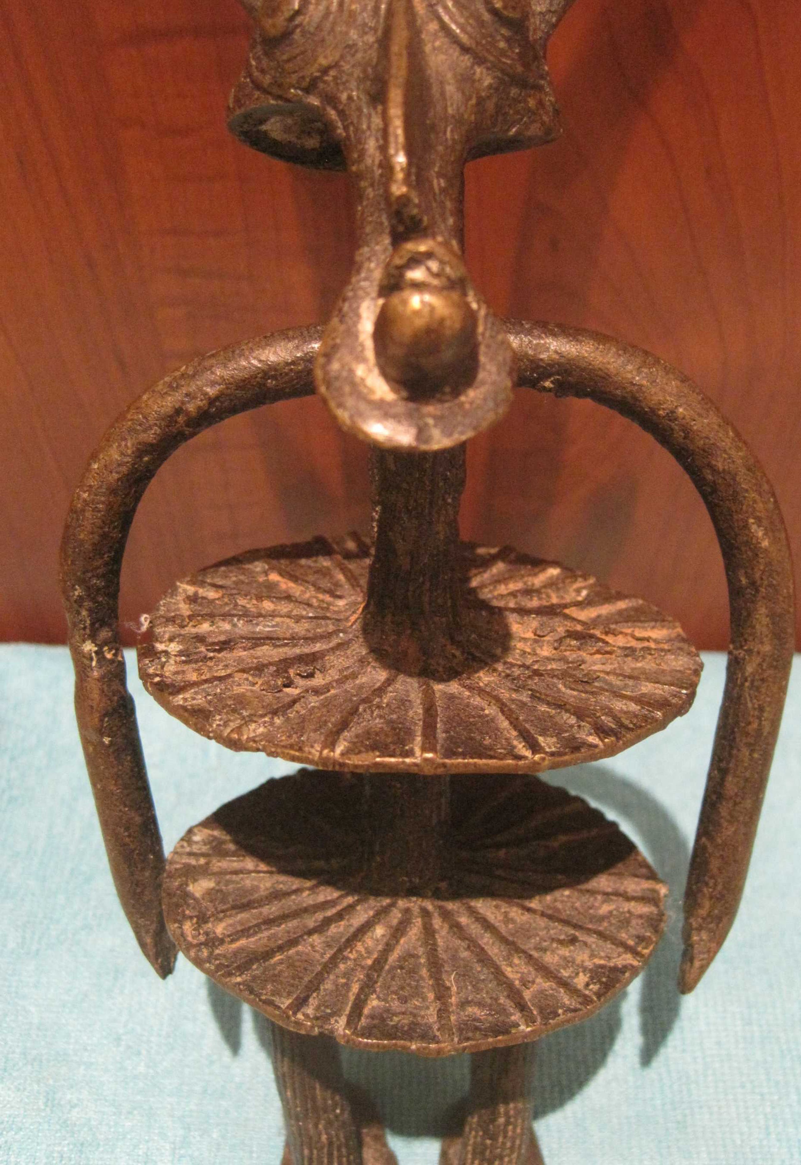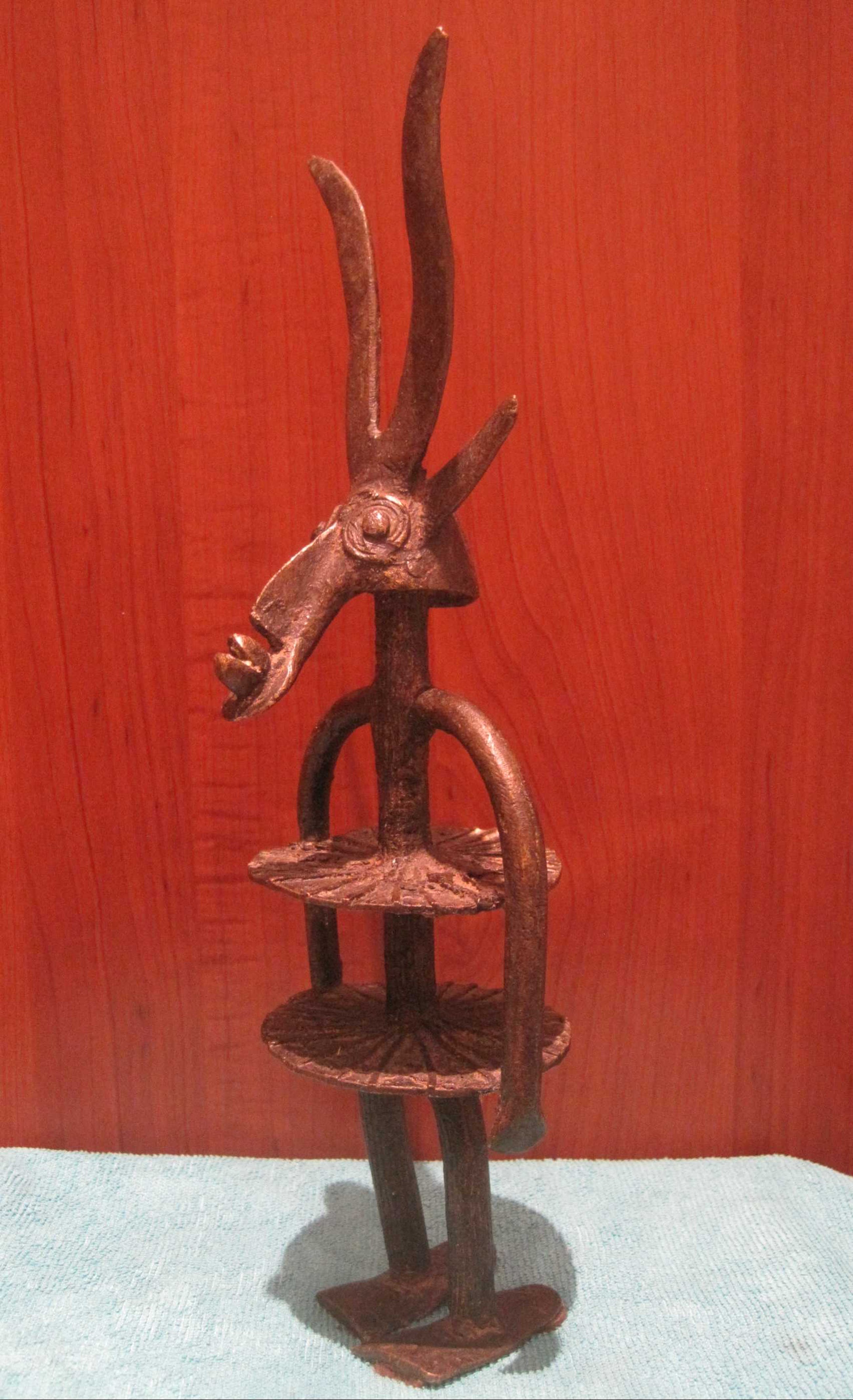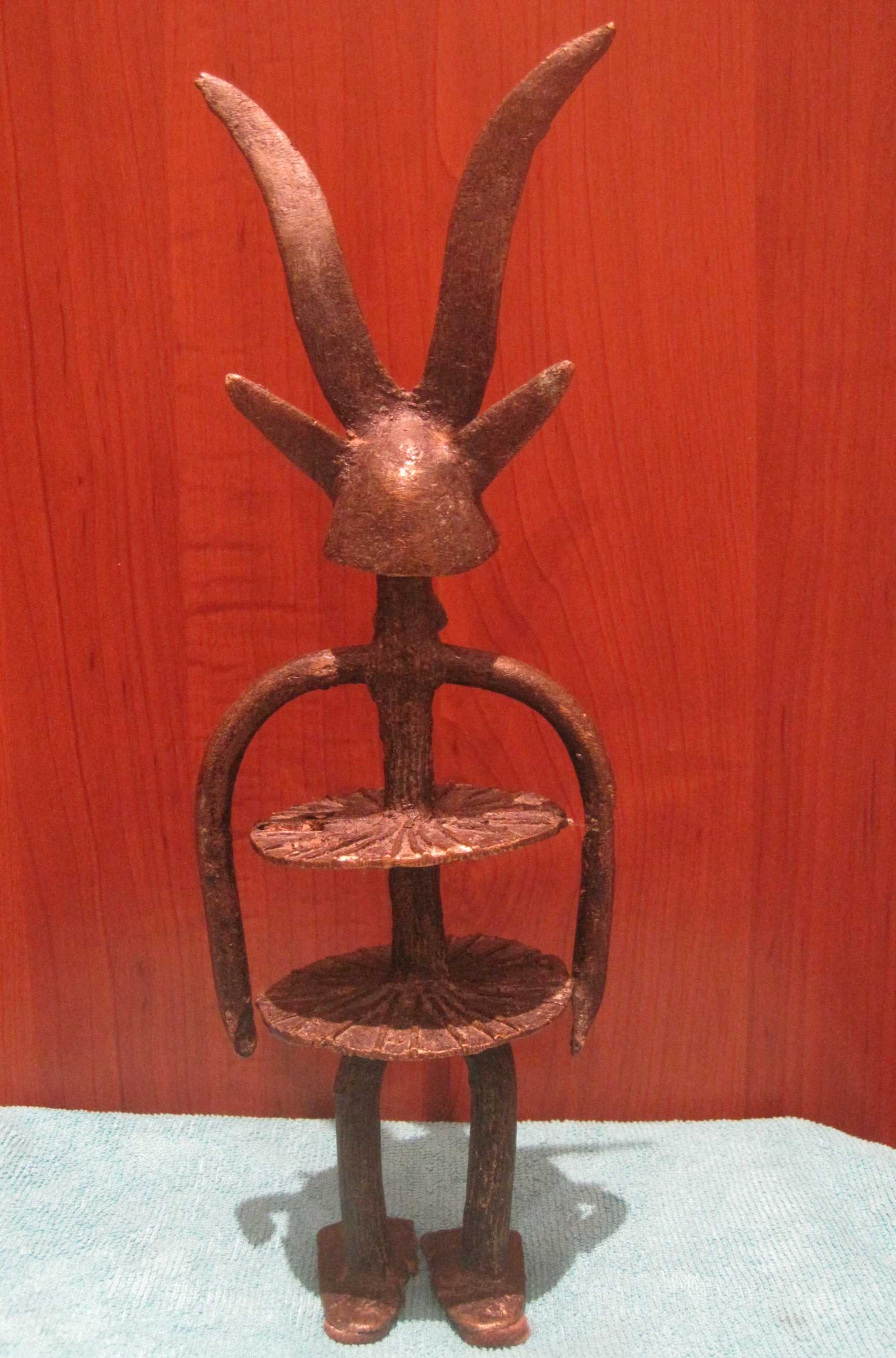 Een bijzonder bronzen beeld uit Burkina Fasso Afrika. Dit beeld symboliseert de verbondenheid en dankbaarheid tussen de mens en het dier de antiloop, waar op gejaagd wordt.