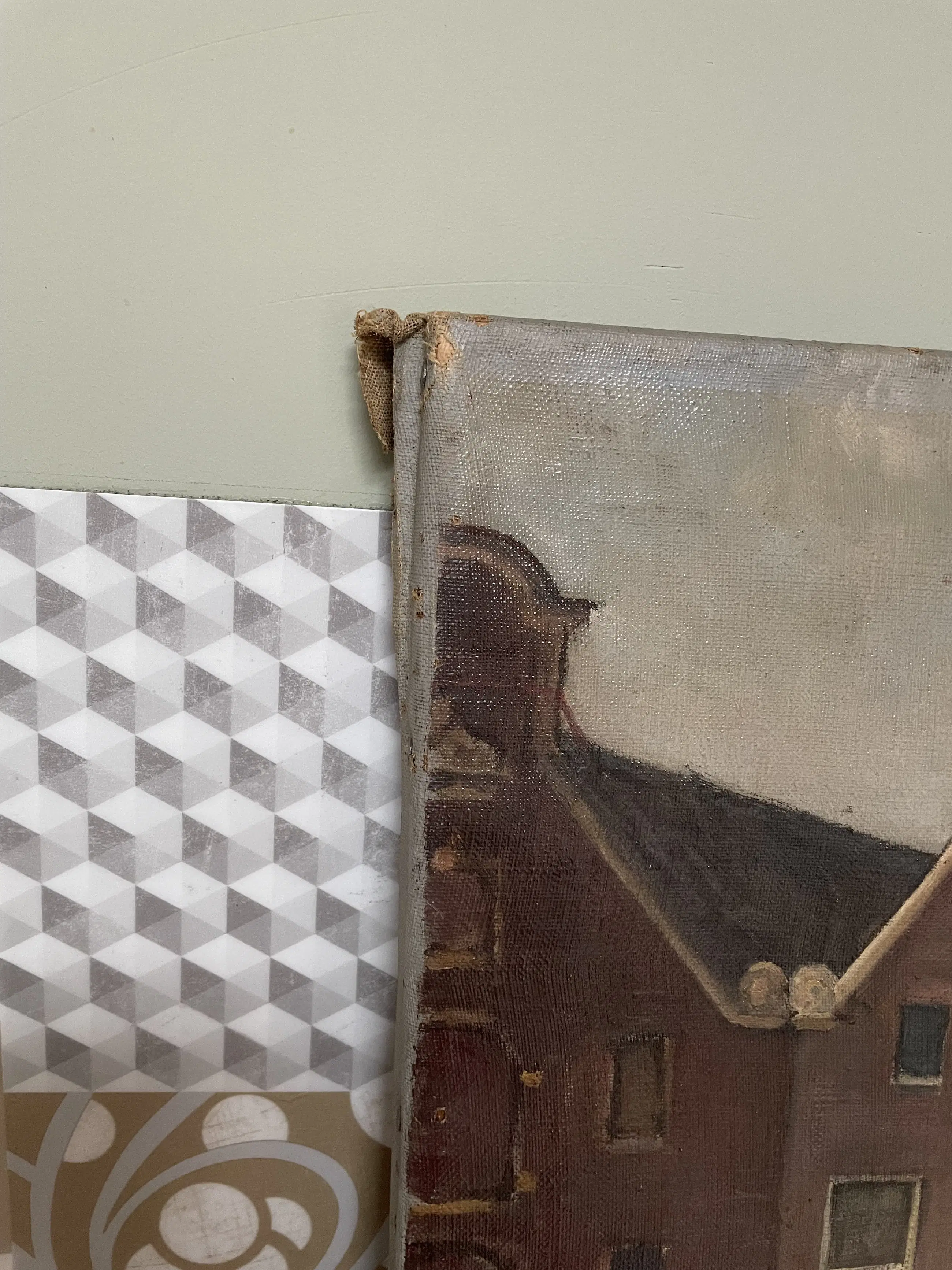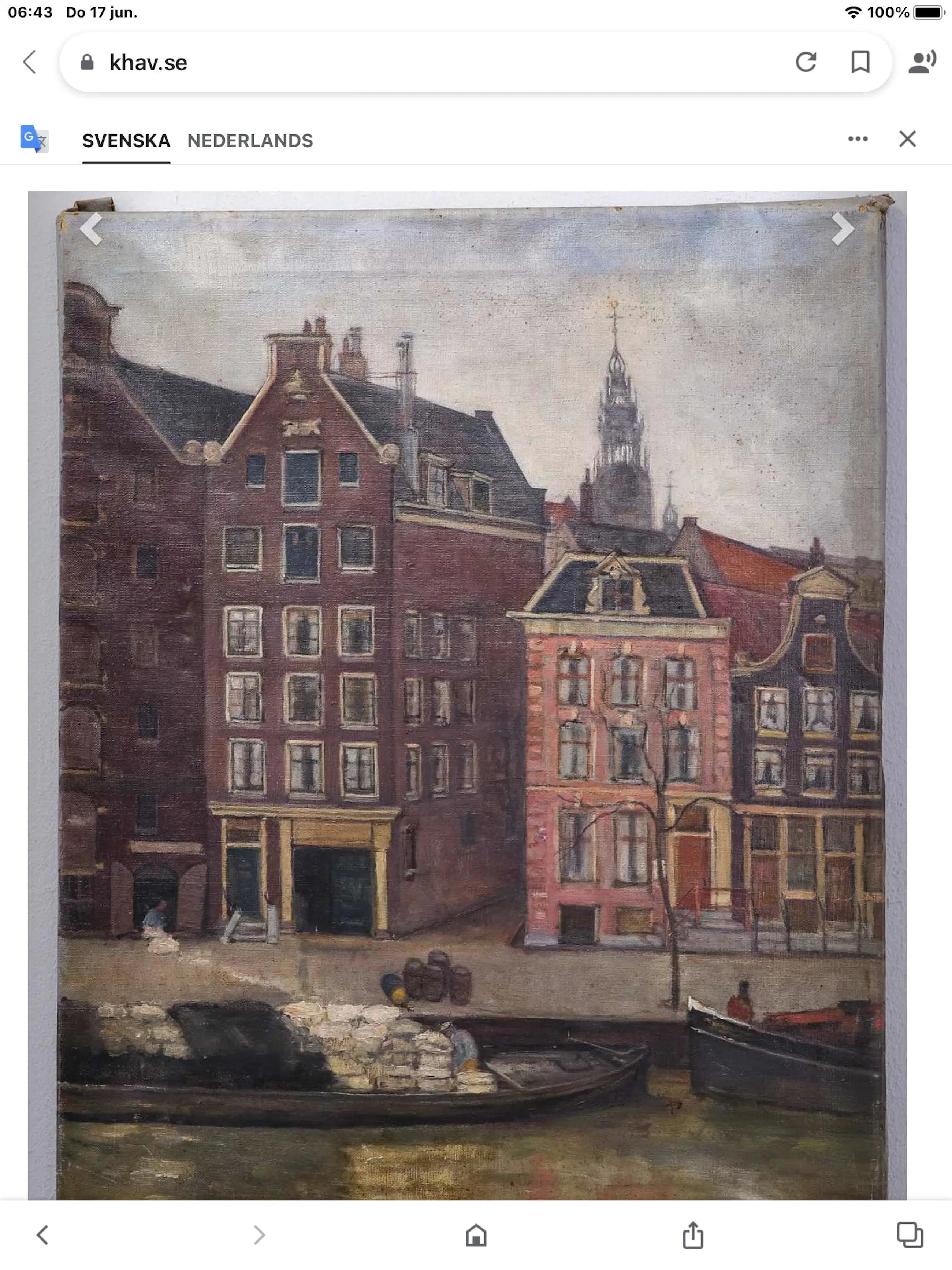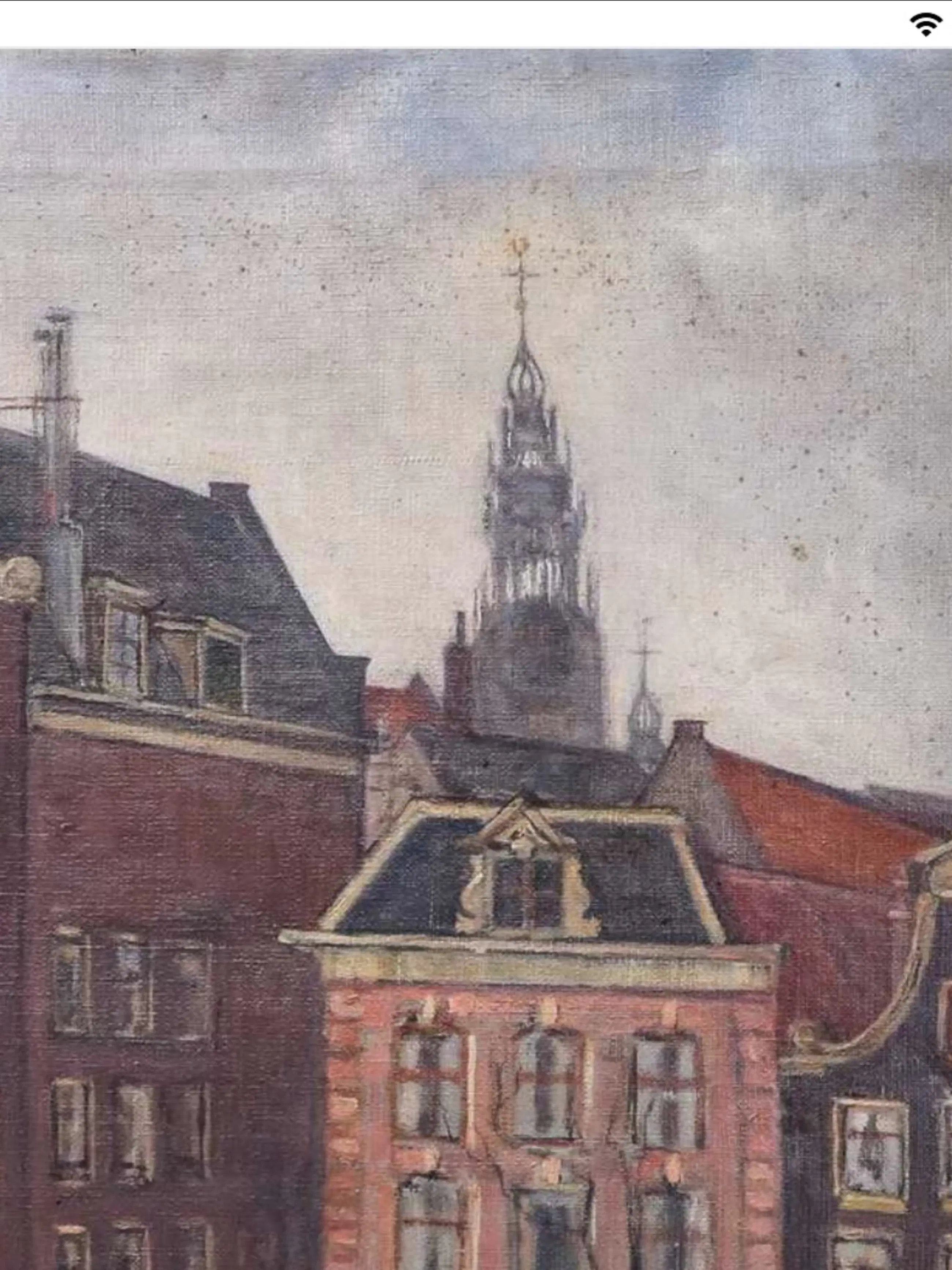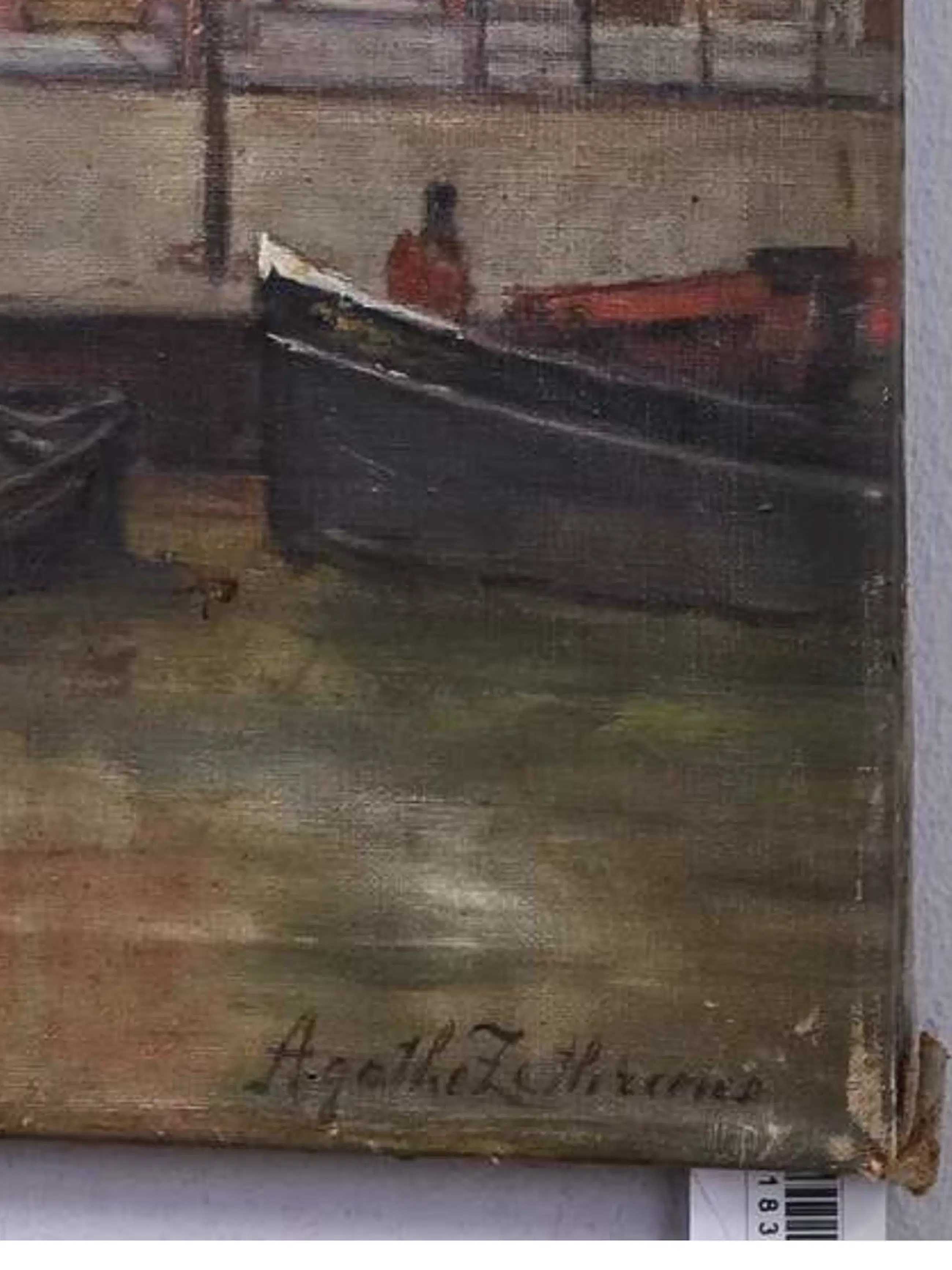Mooi stadsgezicht van de bekende kunsternaares Agatha Zethraeus 1872-1966 Ze was een Zweeds Nederlandse kunstenaares geboren in Amsterdam. Ze was een leerling en goede vriendin van Piet Mondriaan en legde zich toe op voornamelijk stadsgezichten van Amsterdam. Het schilderij is wat beschadigd op de hoeken zie foto,s