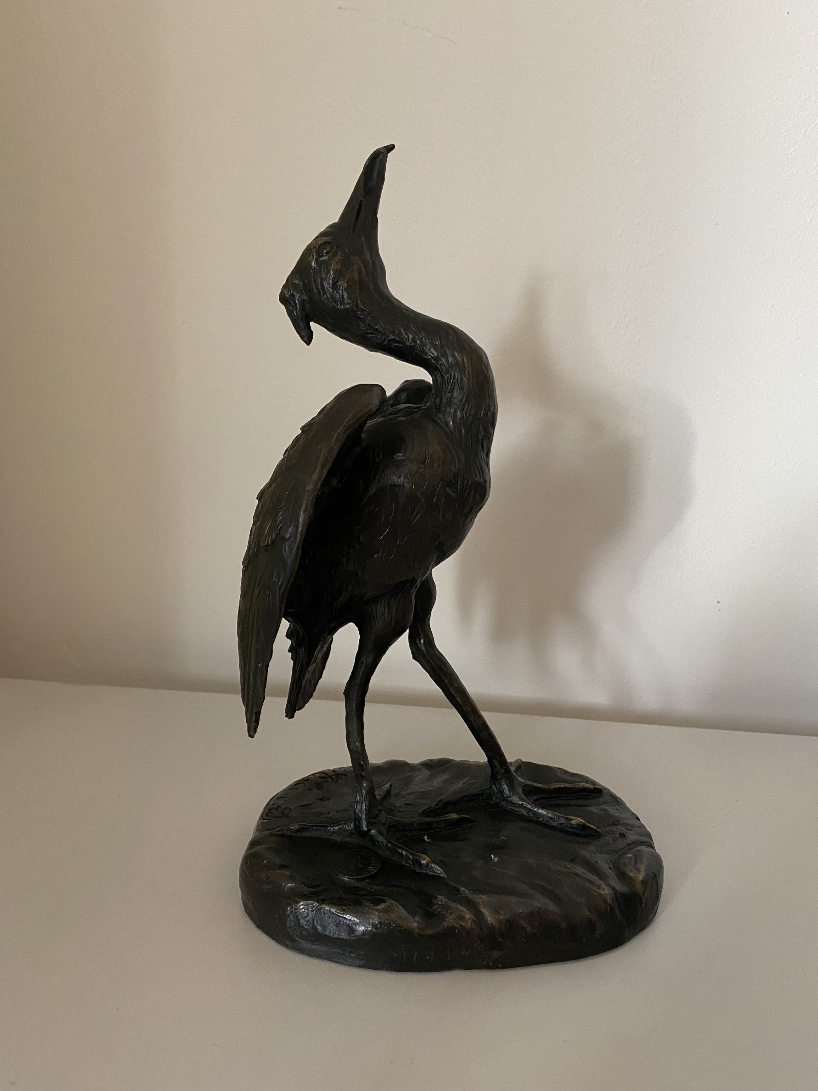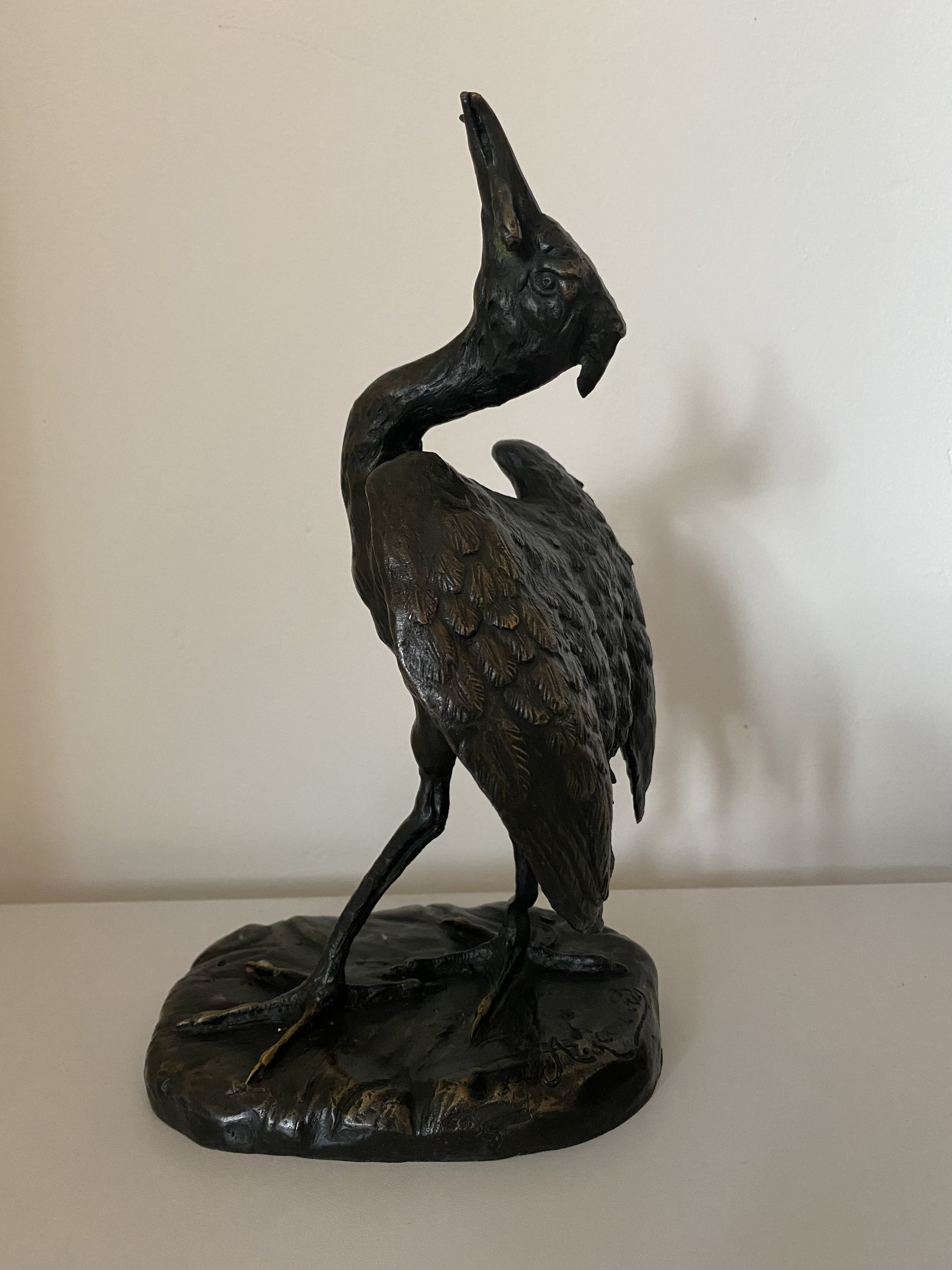 Prachtig bronzen dierlijk beeld van een reiger gemaakt en gesigneerd door de Franse kunstenaar Agathon Léonard (1841-1923). Het beeld is gedateerd op het einde van de 19e eeuw en verkeert in uitstekende staat.