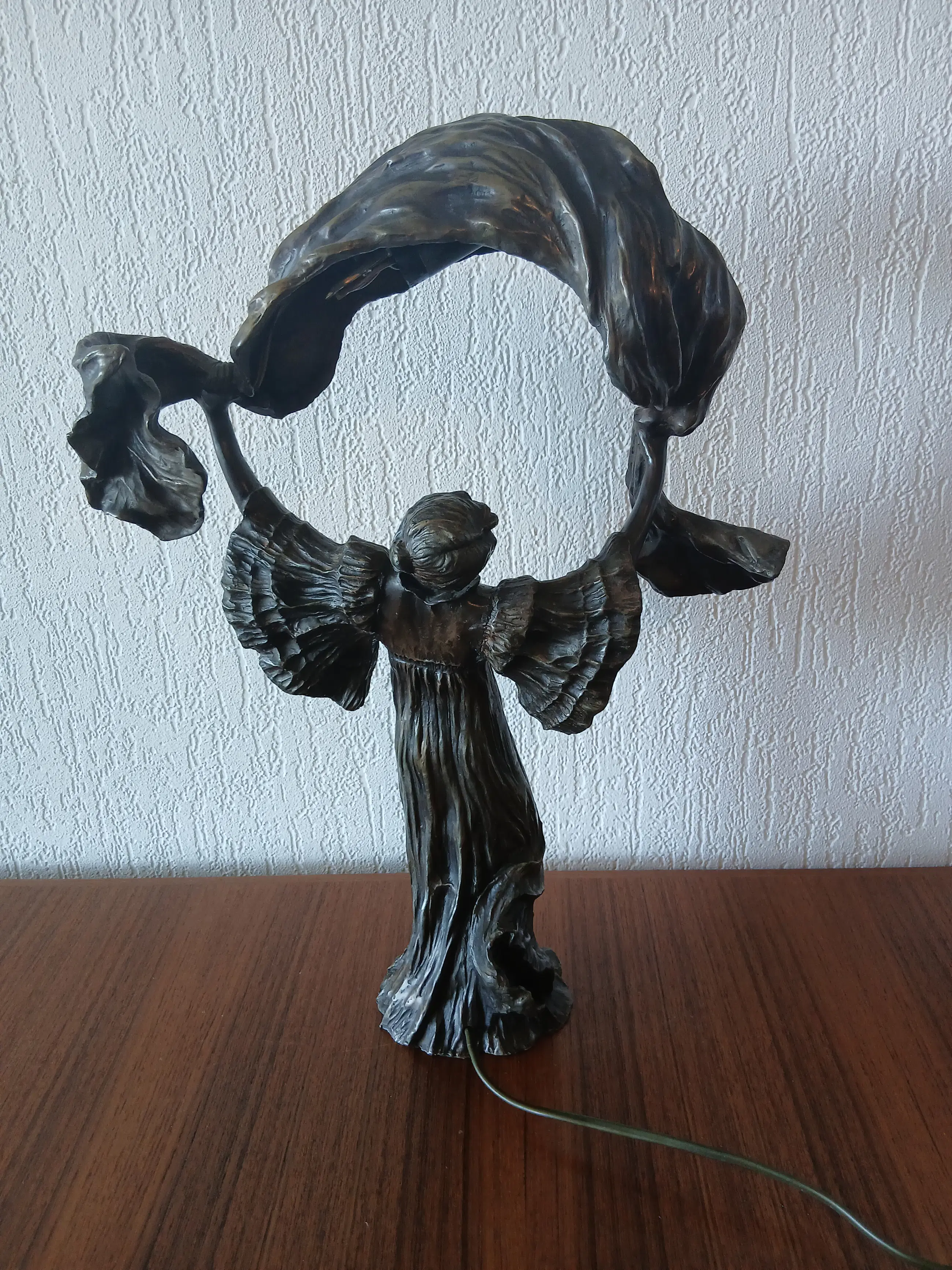 Bronzen art nouveau tafellamp naar de sculptuur van Agathon Leonard de "Sjaaldanseres" .