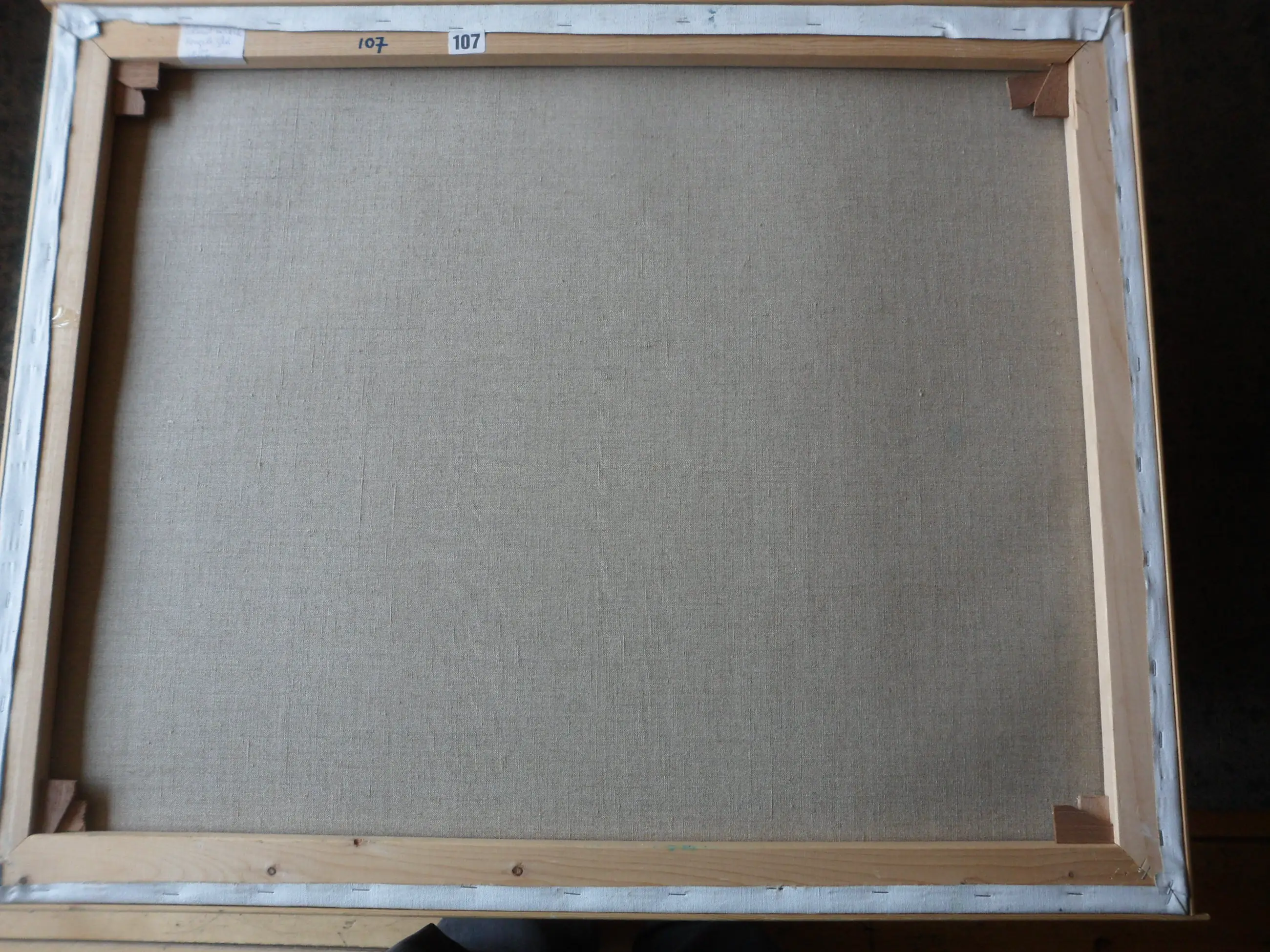 Het doek is in zeer goede staat; geen craquelé of verfverlies. De lijst is een originele, simpele latjeslijst.