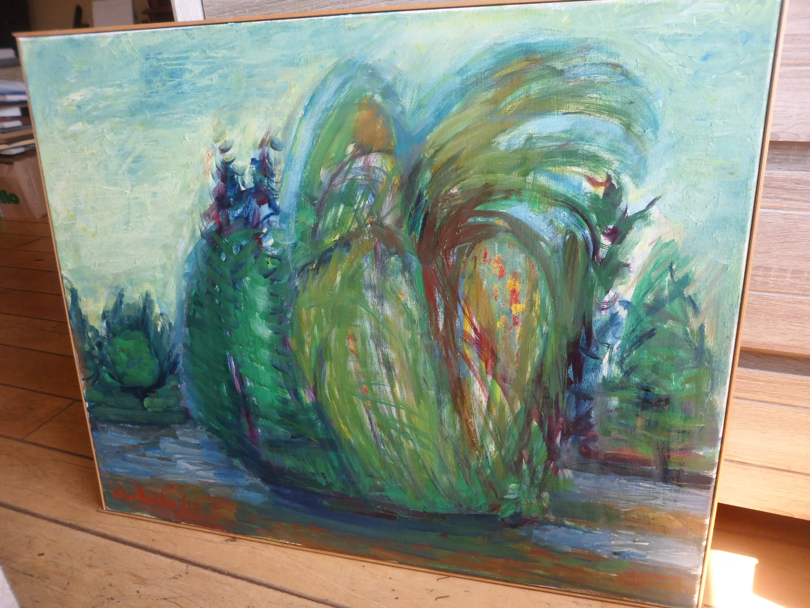 In dit behoorlijk abstracte landschap . Het werk is in het echt nog mooier en levendiger van kleur.