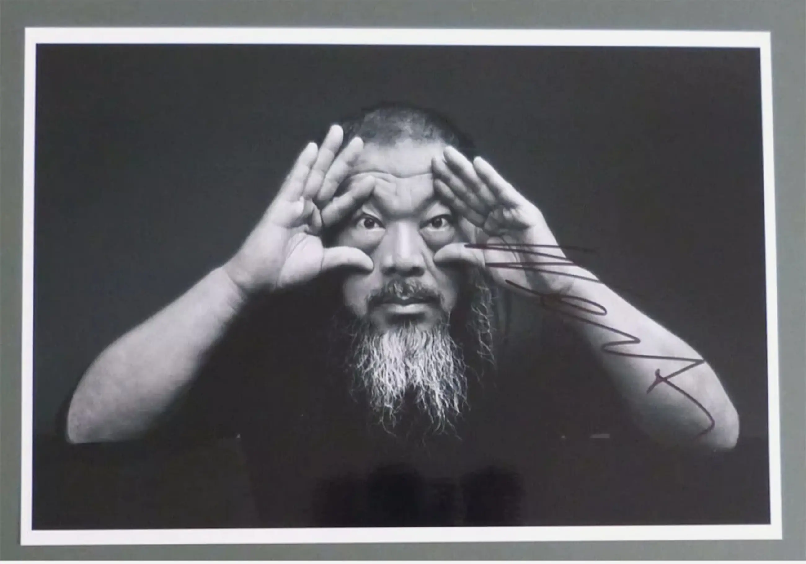 Foto: 20,5 x 29,5 cm Lijst: 32 x 40 x 1,5 cm Handgesigneerd in zwarte pen door de kunstenaar Ai Weiwei Conditie: zeer goed/met Alleen de gesigneerde foto wordt verkocht, de lijst wordt gratis meegeleverd. De foto is in doorzichtige fotohoeken gestoken en kan er later eventueel weer uitgehaald worden. Uitzonderingen zijn eenvoudig en onbeschadigd (zonder montagesporen) te verwijderen. Ai Weiwei is een Chinese conceptuele kunstenaar, beeldhouwer en curator - hij telt internationaal een van de 100 belangrijkste hedendaagse kunstenaars. Verzendkosten Duitsland 15,- Euro, EU 22,50 Euro. Verkoop uit eigen privécollectie, dus geen garantie, retour of ruilen.