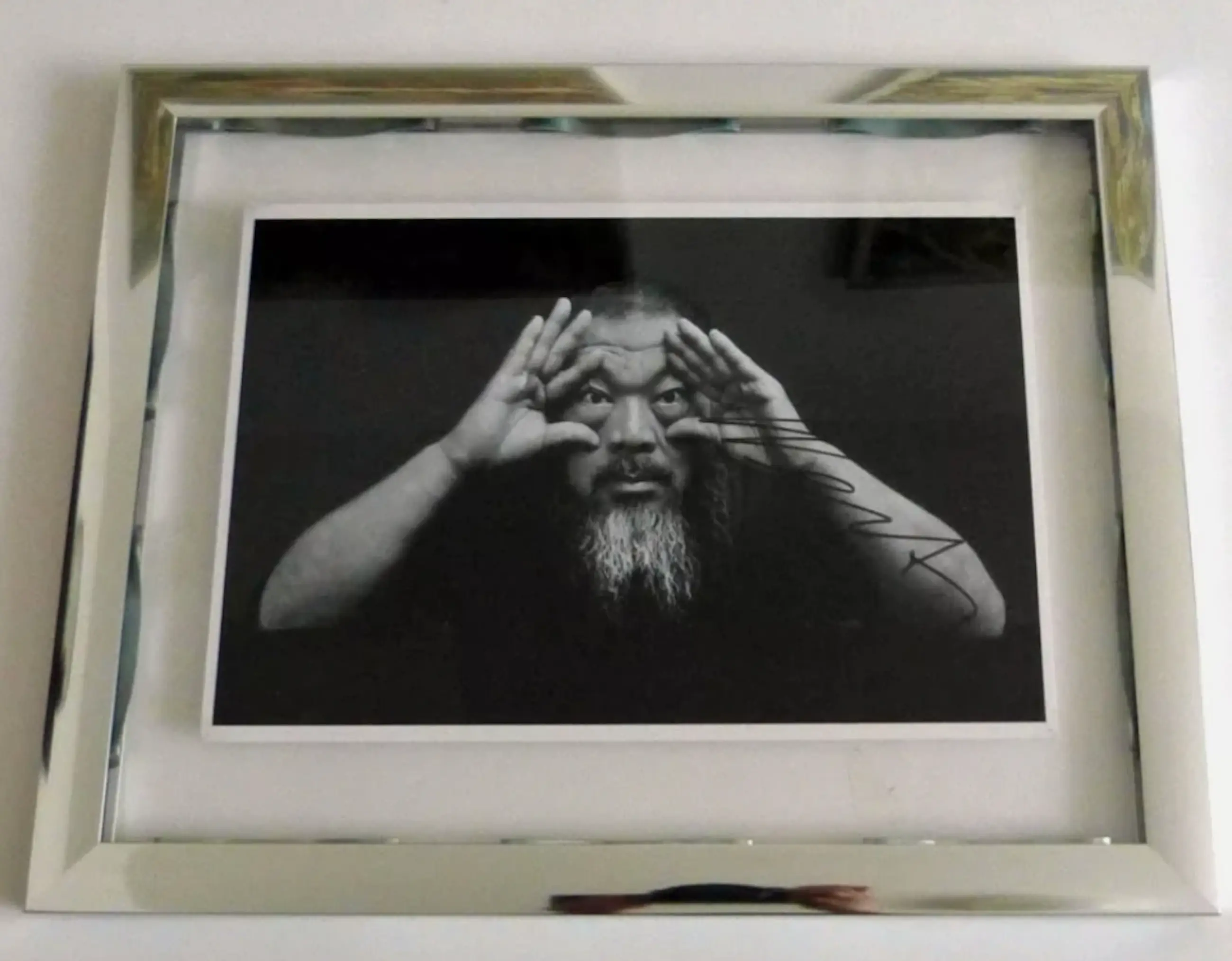 Glanzende fotografie door kunstenaar Ai Weiwei. "Open je ogen" JPG-foto Ingelijst tussen dubbel UV-werend plexiglas in Nielsen aluminium lijsten