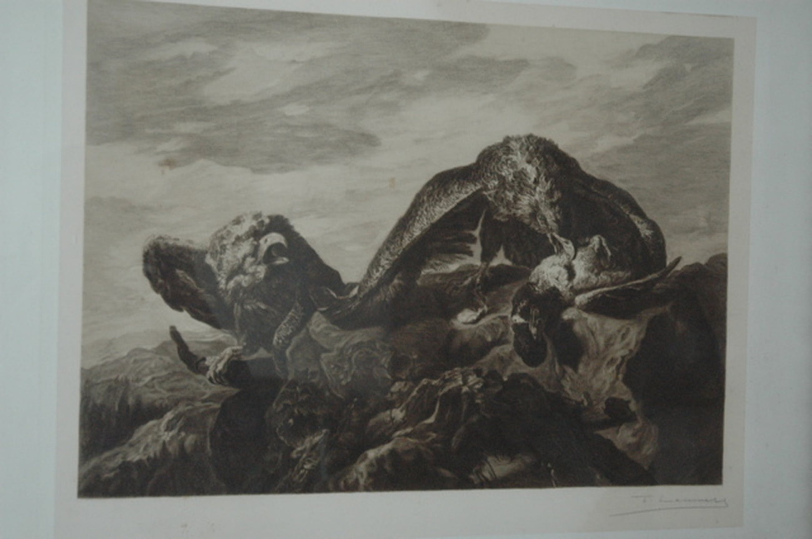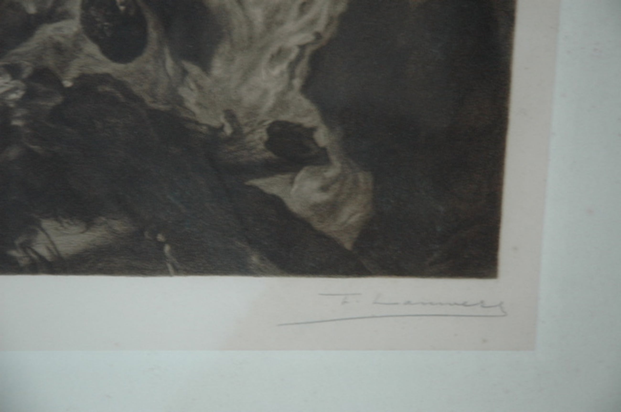 Grafiek 60 x 45 cm (met originele kader 83 x 68 cm), gesigneerd, wordt verkocht samen met de originele catalogus "Exposition Universelle Internationale - Paris 1900 - Section Belge des Beaux-Arts", waarin dit werkje is opgenomen en brons heeft gewonnen.