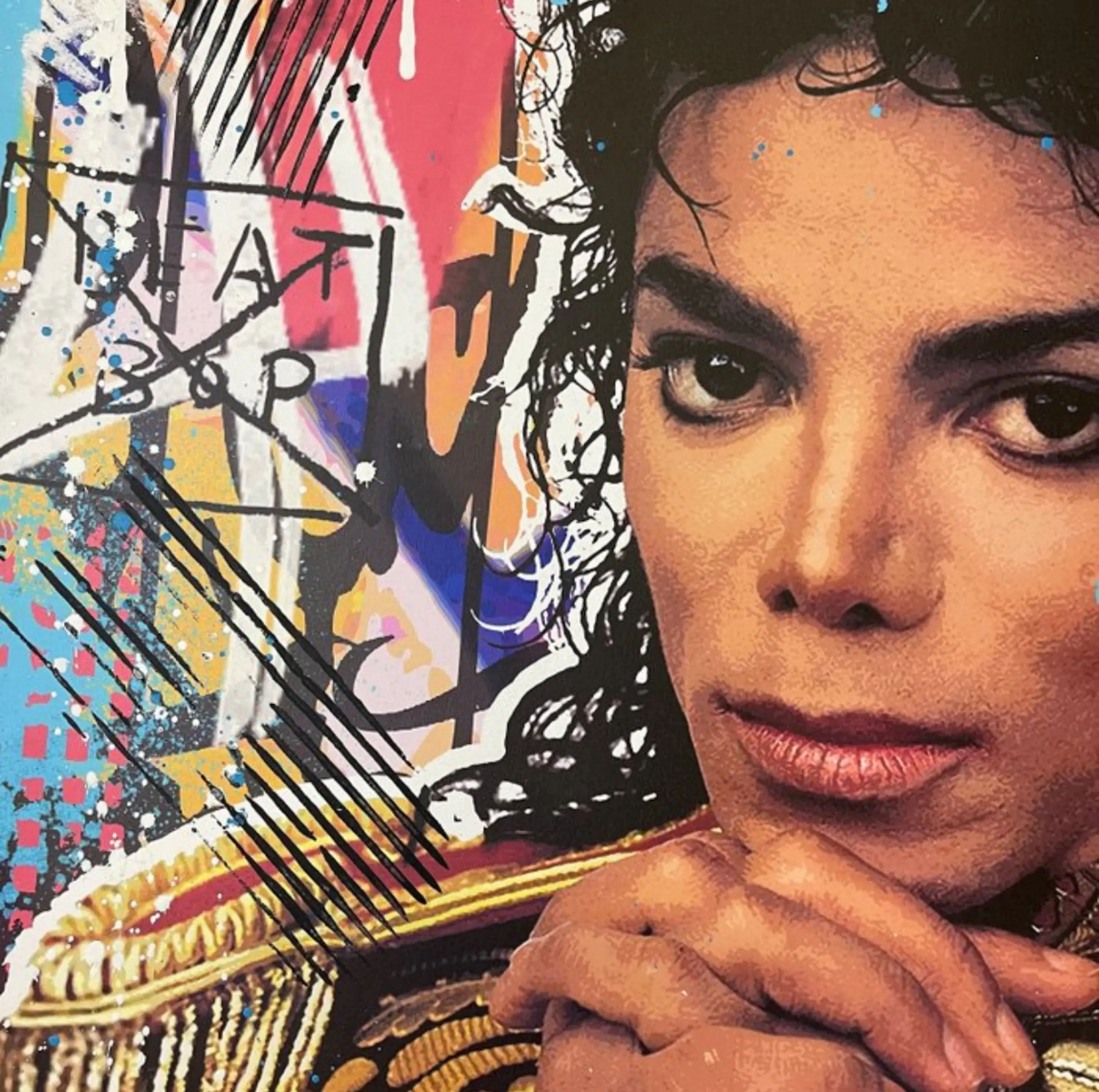 Pop art kunstwerk ‘Michael Jackson’. Zeldzaam en zeer verzamelbaar. Nog nooit opgehangen. Uniek stuk 1/1. Handgesigneerd.