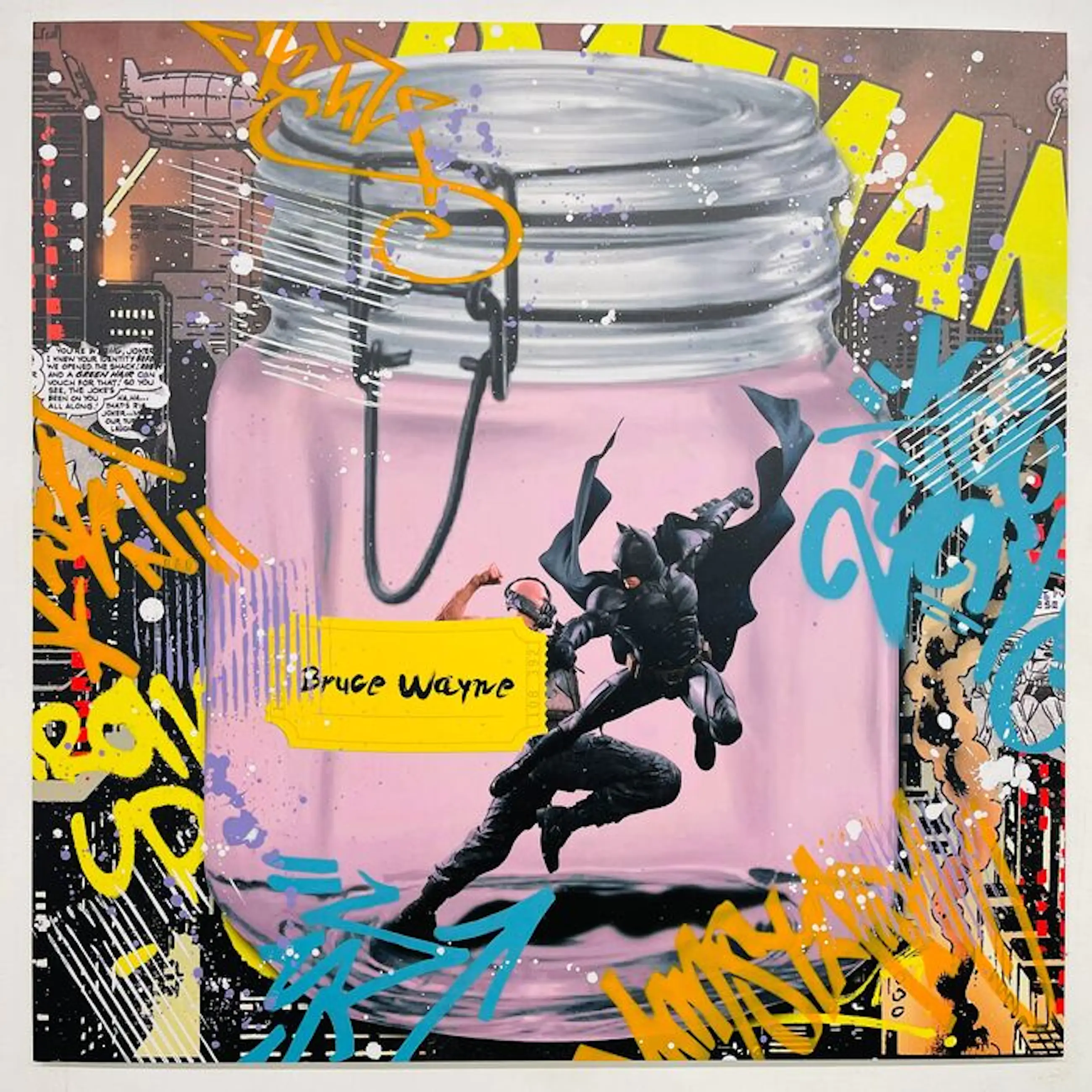 Wordt aangetekend en verzekerd verzonden. Certificaat Mind The Gap achterkant schilderij bevestigd. Oplage 1/1 Uniek werk Streetart.