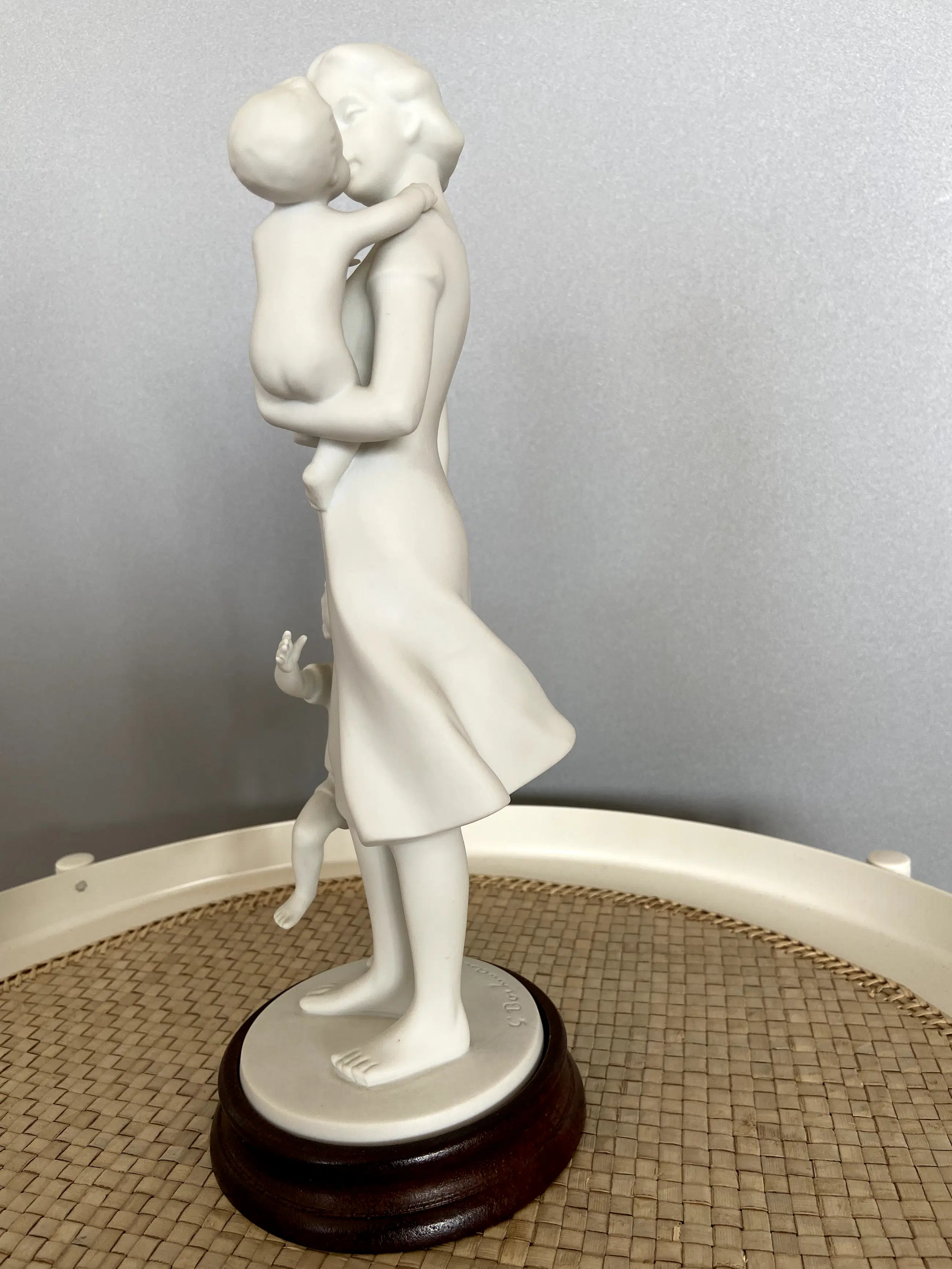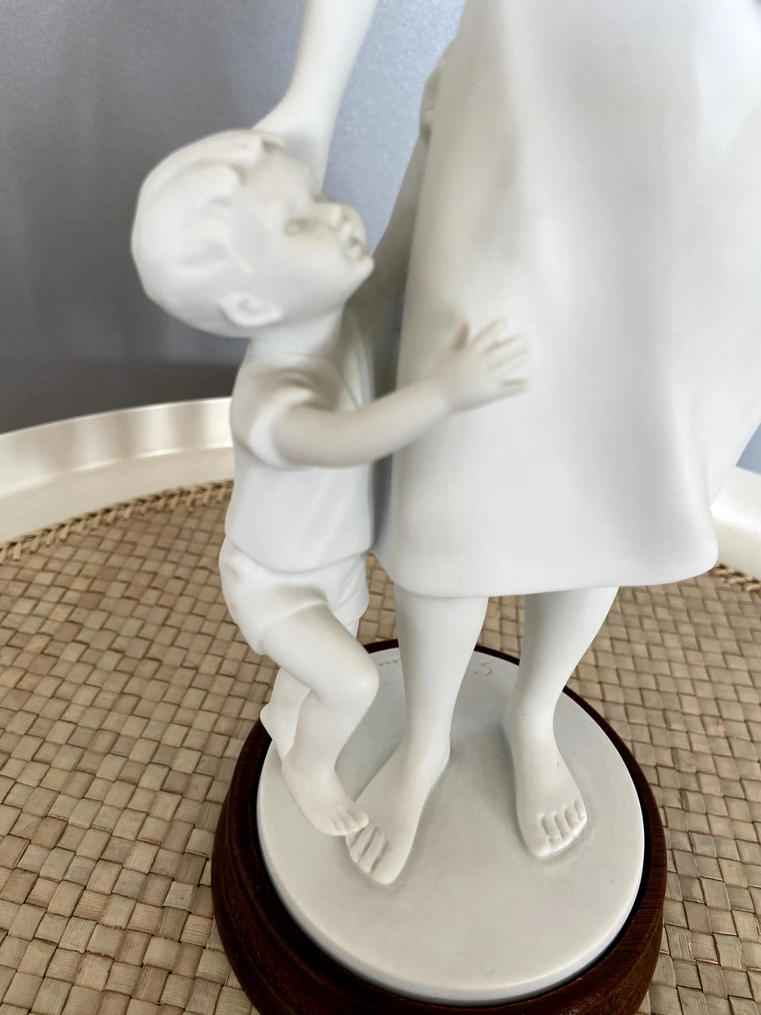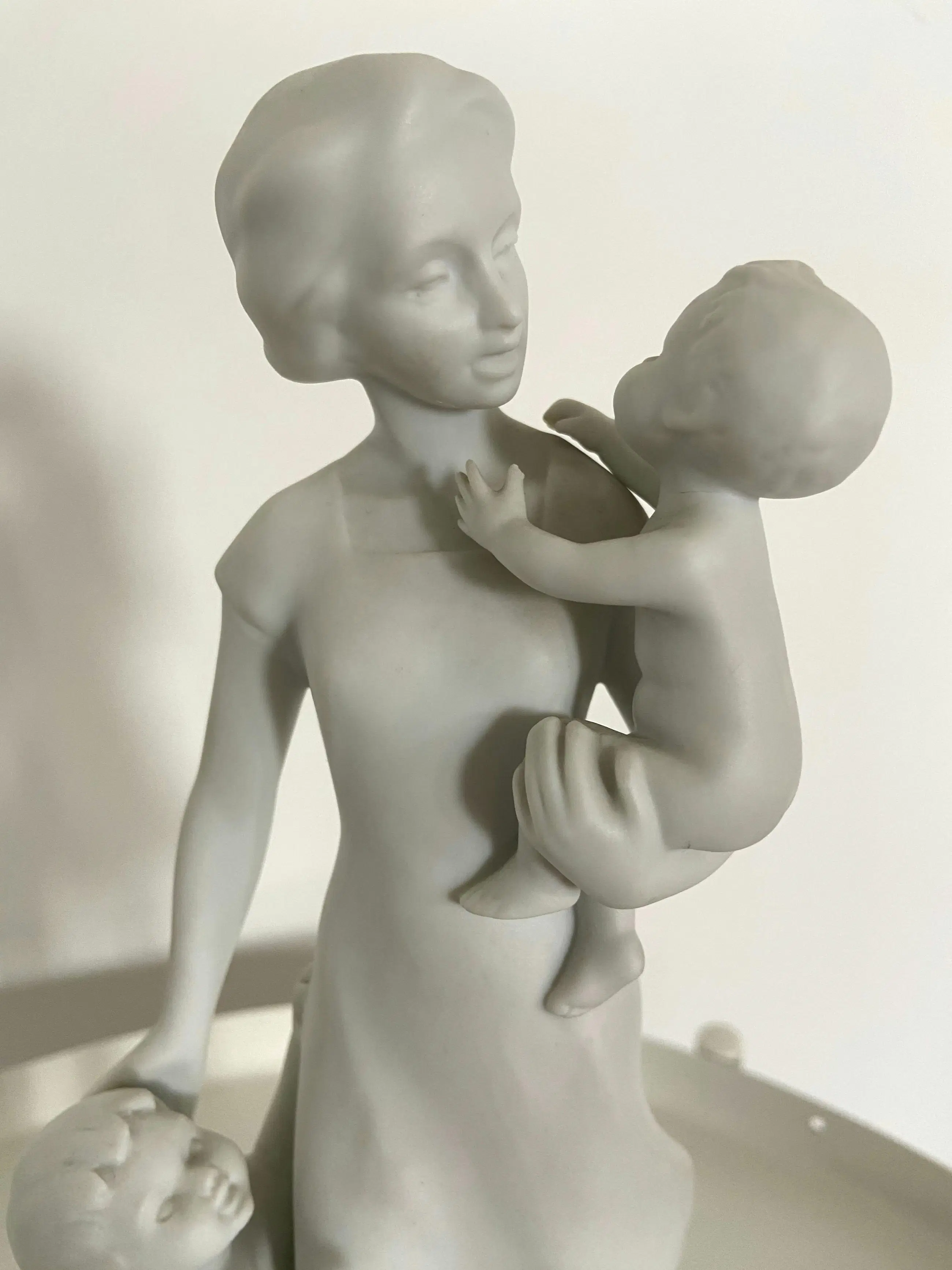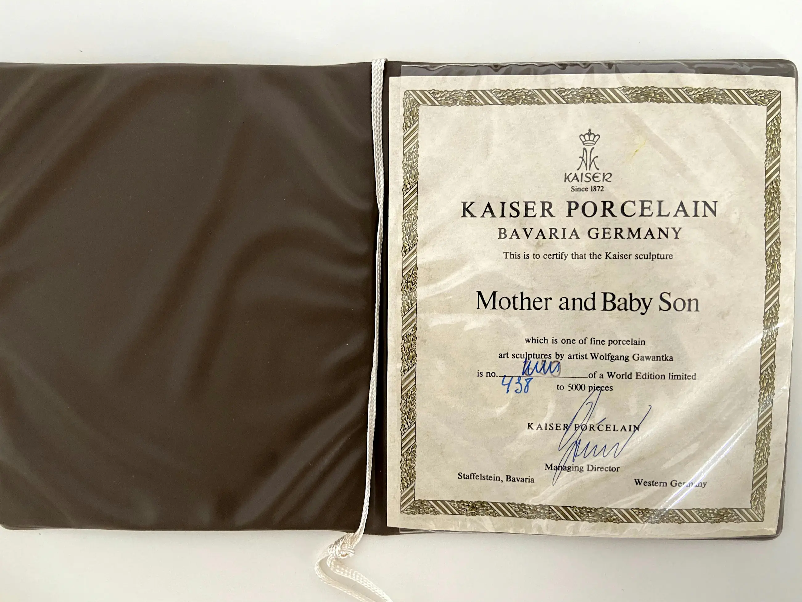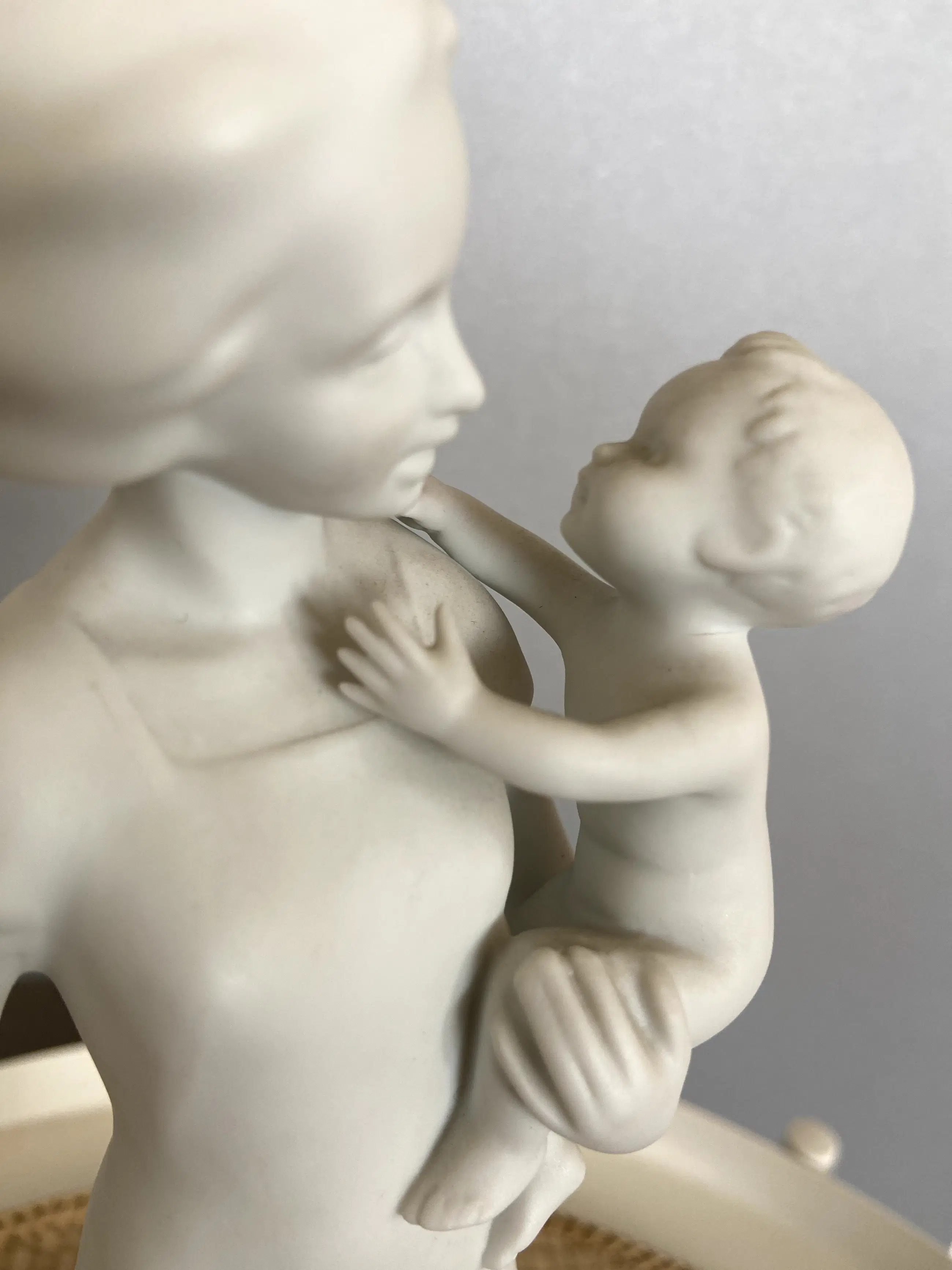 In excellente, ongeschonden staat! Zeer hoge kwaliteit van porselein. De bovenvermelde afmetingen zijn zonder de houten sokkel. Thv kleed moeder is de breedte van het beeld ongeveer 10 cm. Certificaat aanwezig. Af te halen in Mortsel.