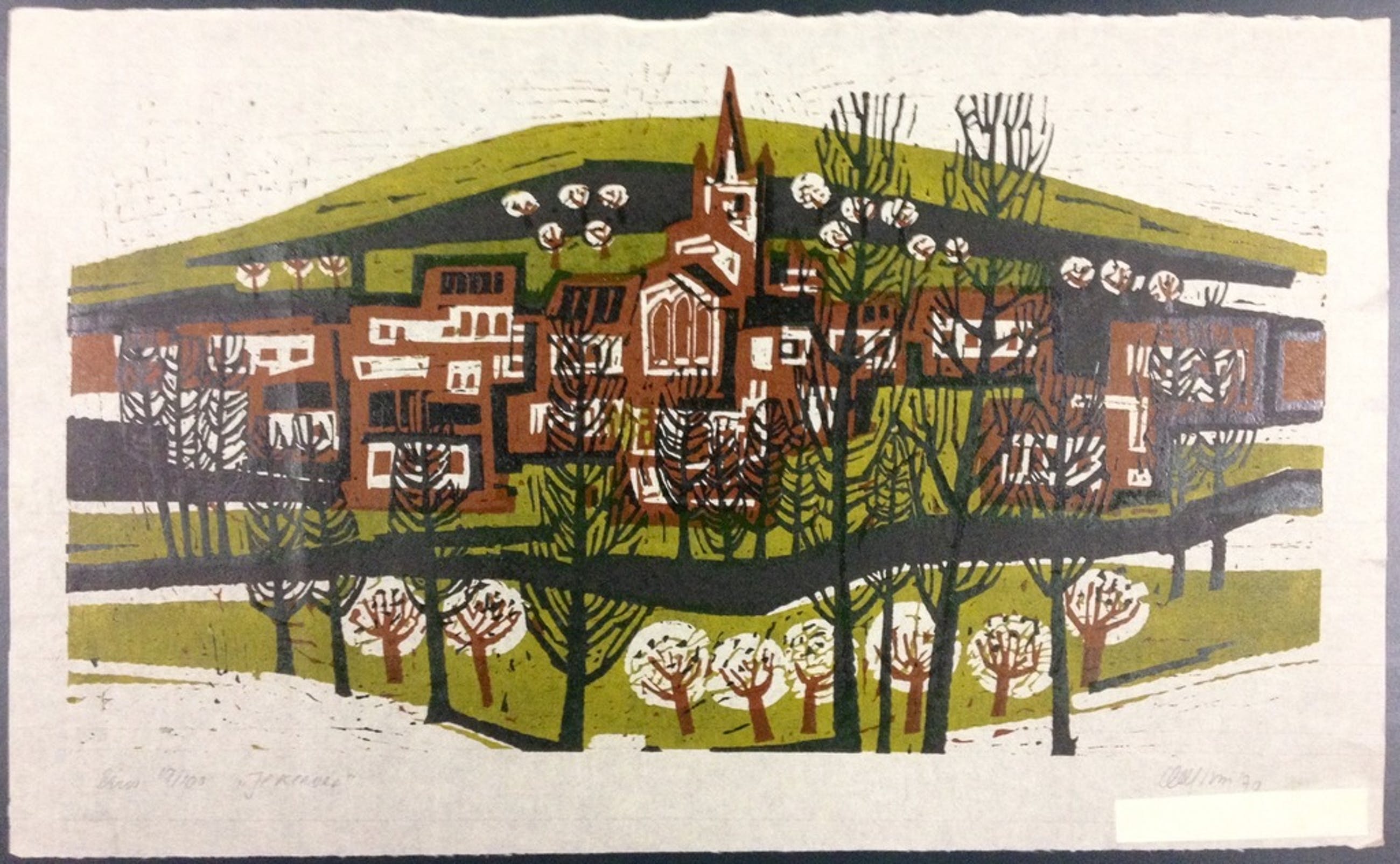 Het Jekerdal was een favoriet onderwerp voor Sins, een geboren Friezin! Deze kleurenlino uit 1970 is gedrukt op rijstpapier en meet 53,5x32,5 (cm)2. Handgesigneerd, -gedateerd, -getiteld en -genummerd 17/100, met potlood, links- en rechtsonder. Mooi!!