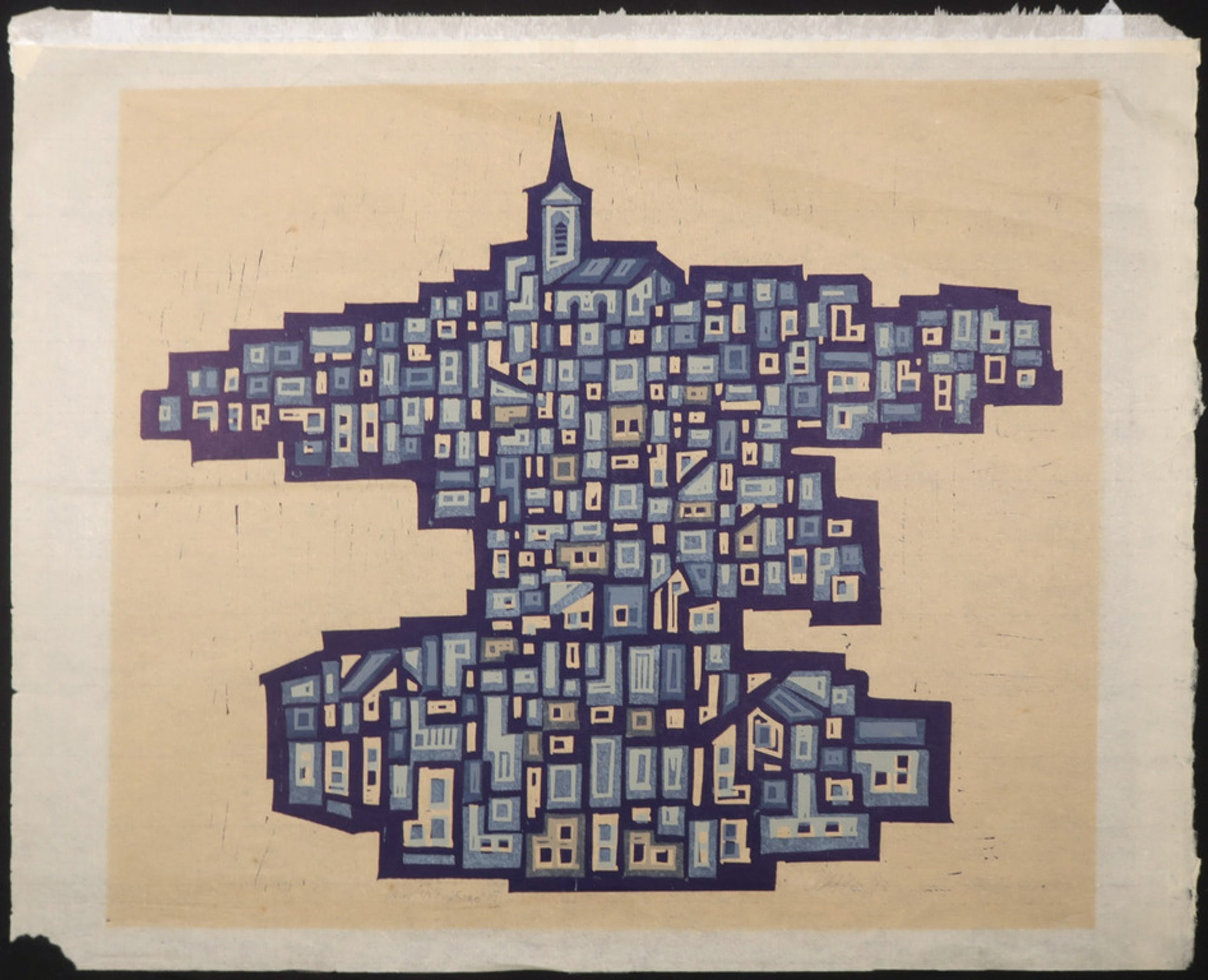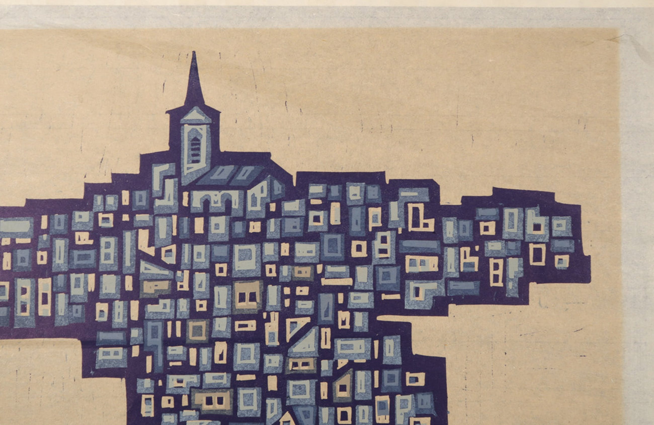 Conditie: Beeld is egaal vergeeld met enkele oxidatiestipjes en kreuken, rechtsboven een scheur. In de witrand kreuken en papier beschadiging linksonder.