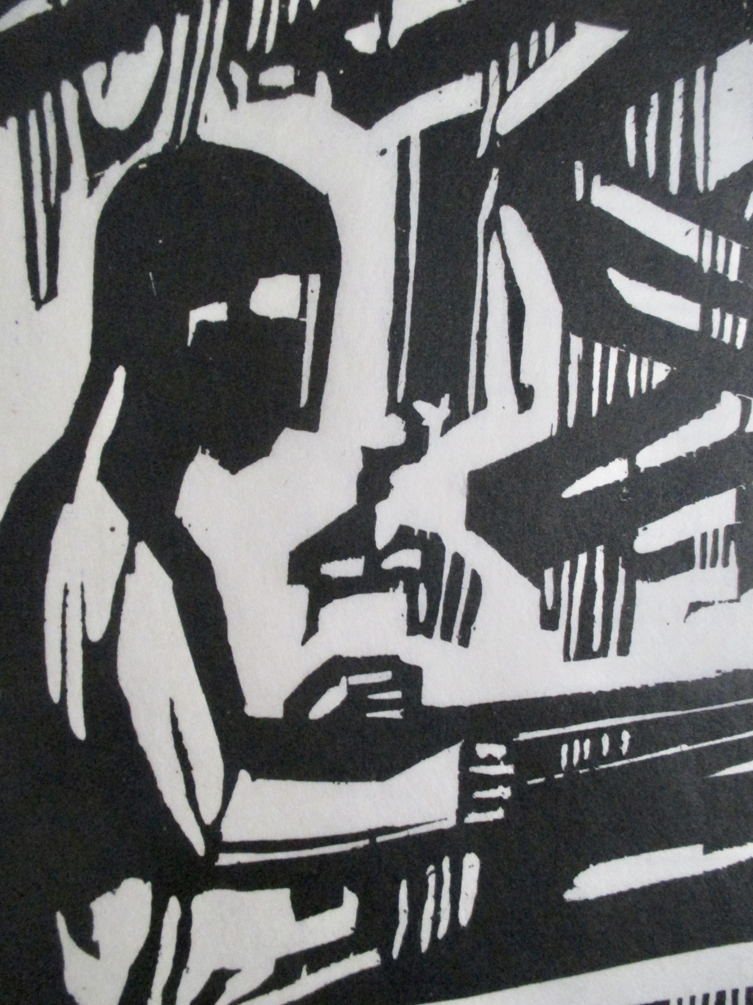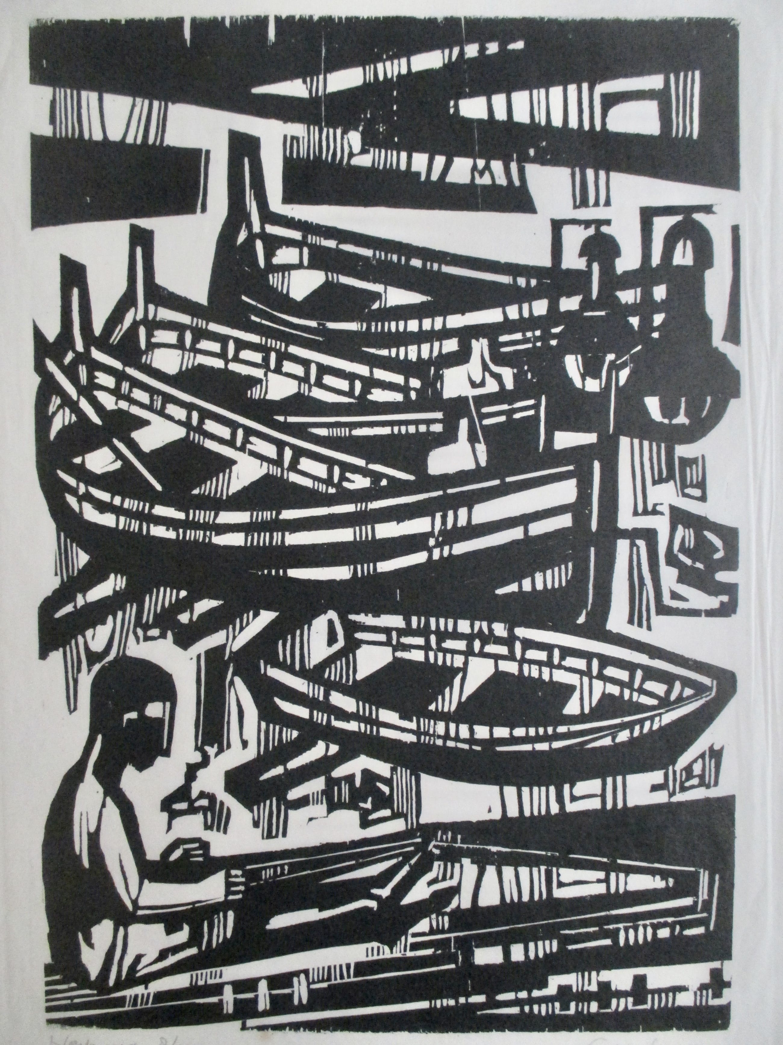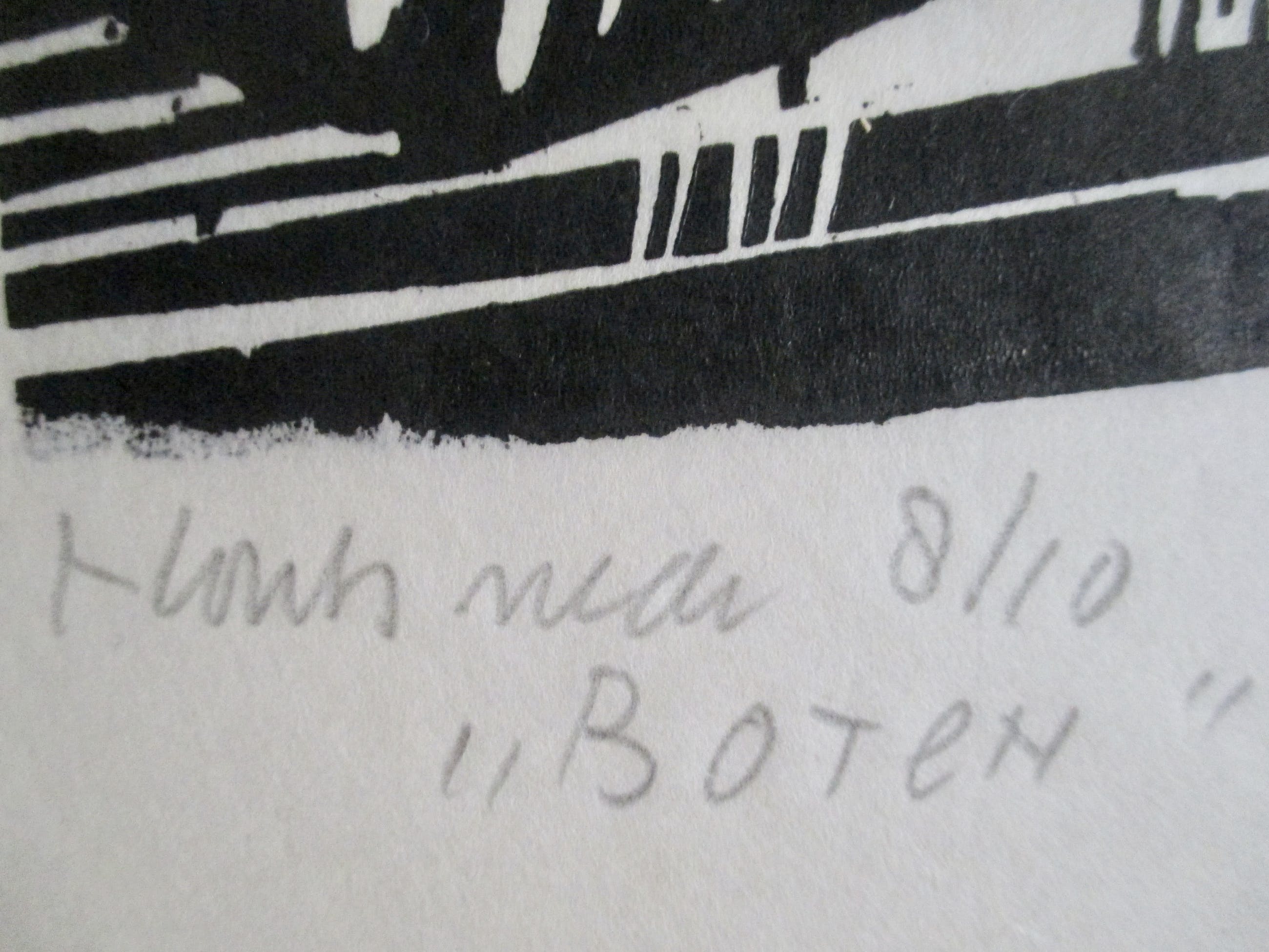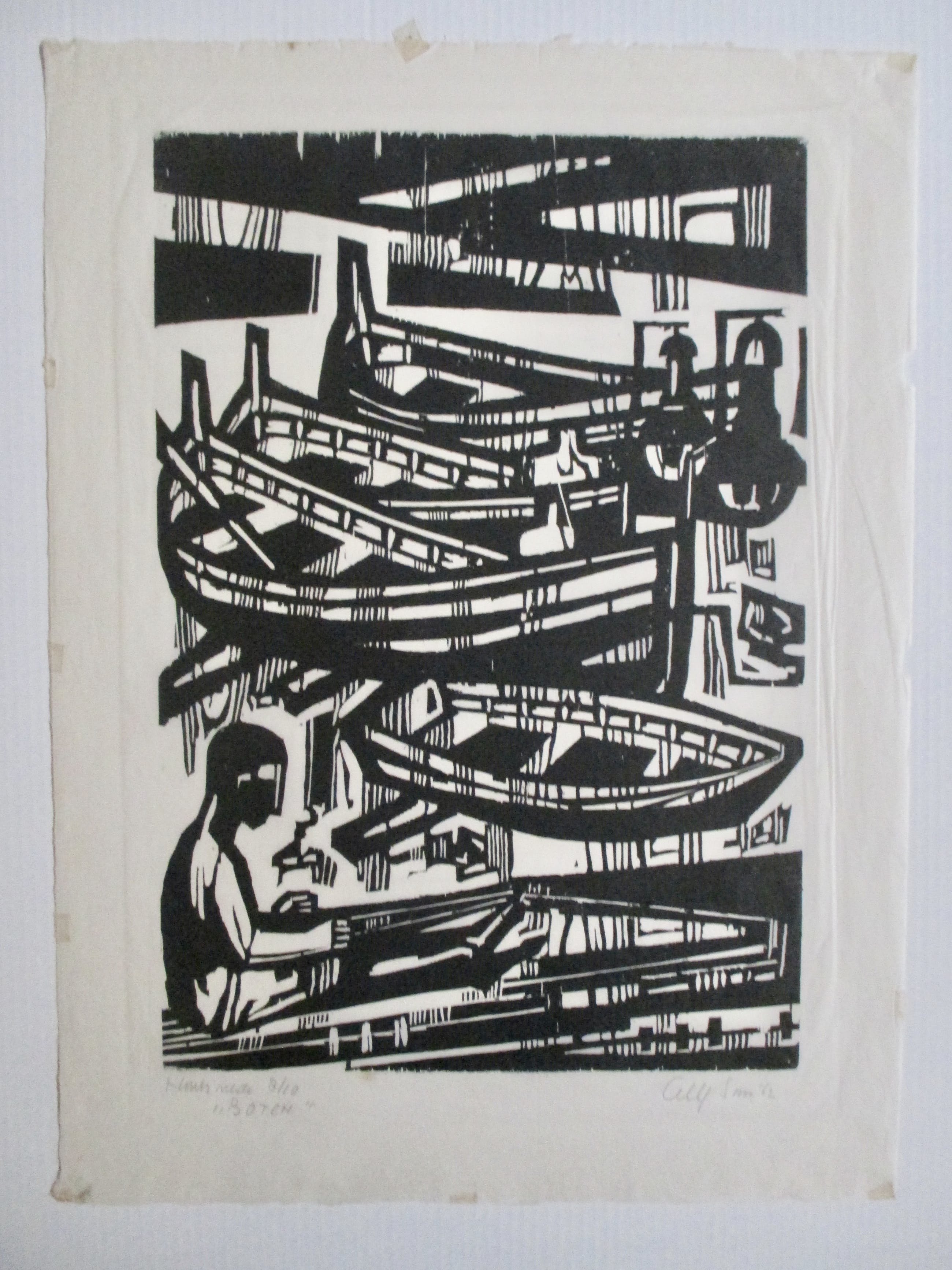 Houtsnede van Akke Sins op dun geschept papier, gesigneerd, gedateerd, getiteld en genummerd in potlood. verzending tussen twee platen, 9 euro, aangetekend 10,65