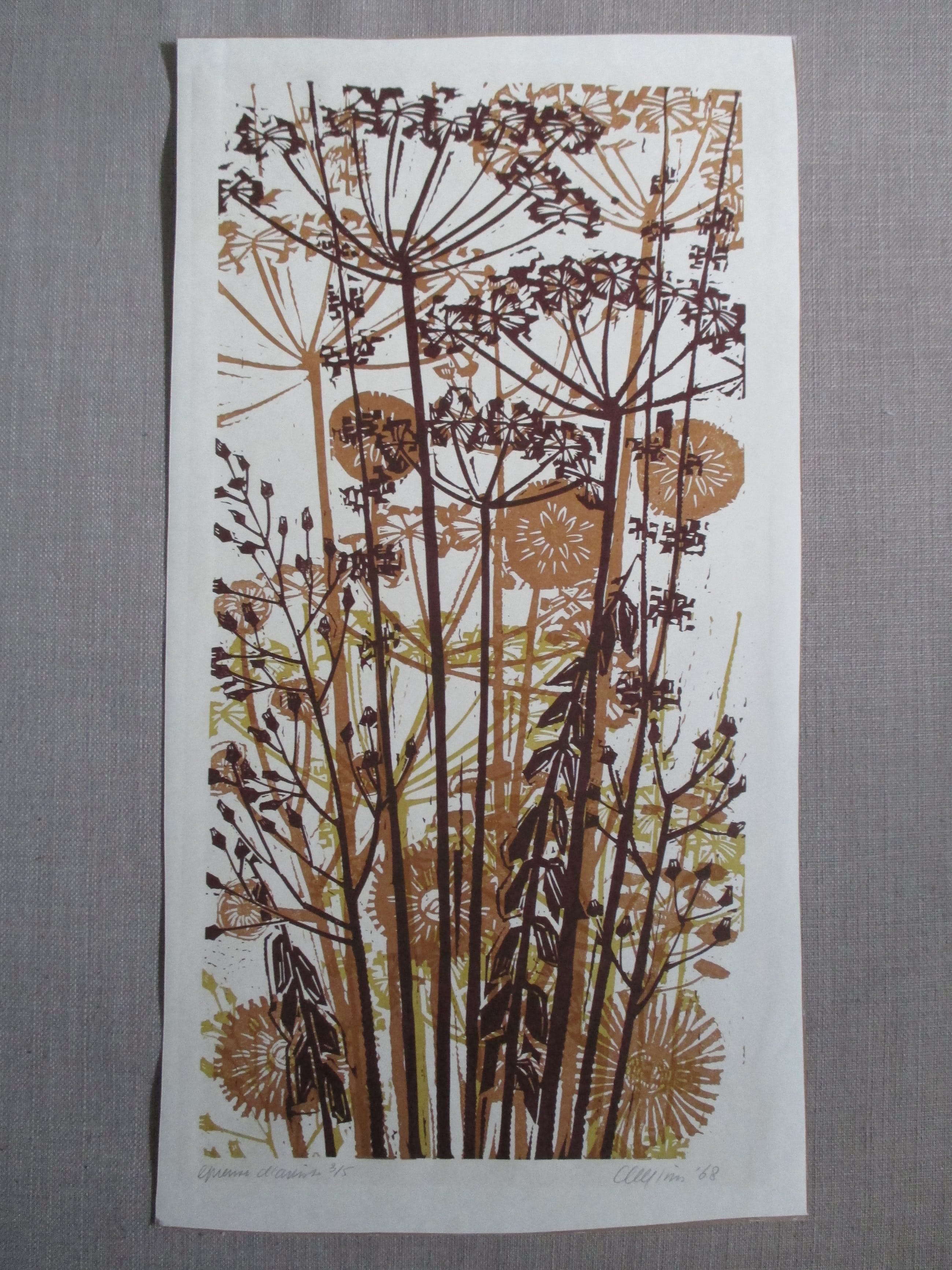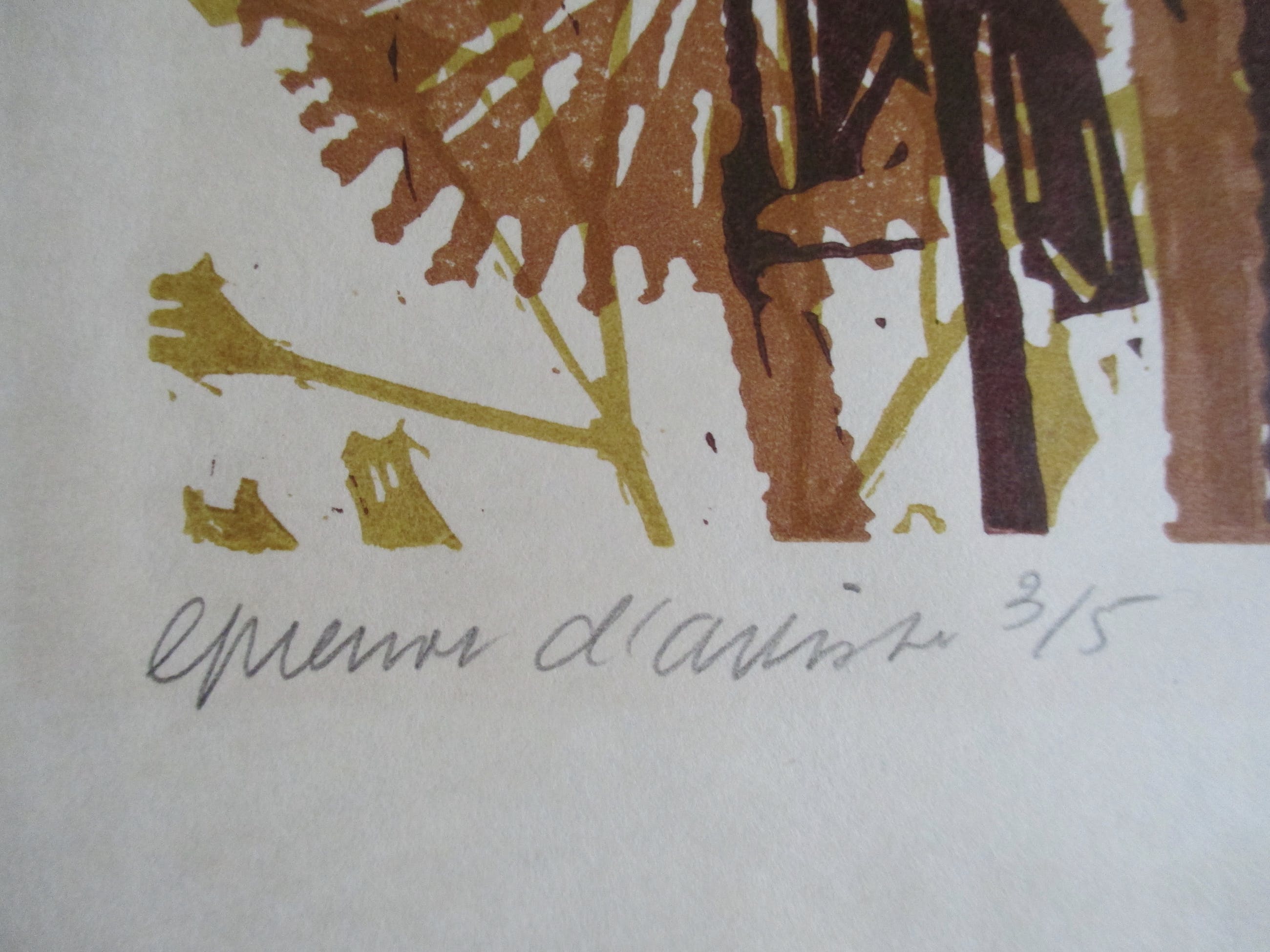 Houtsnede van Akke Sins, gedateerd, gesigneerd en genummerd in potlood. Verzending tussen twee platen, 8 euro, aangetekend 9,65