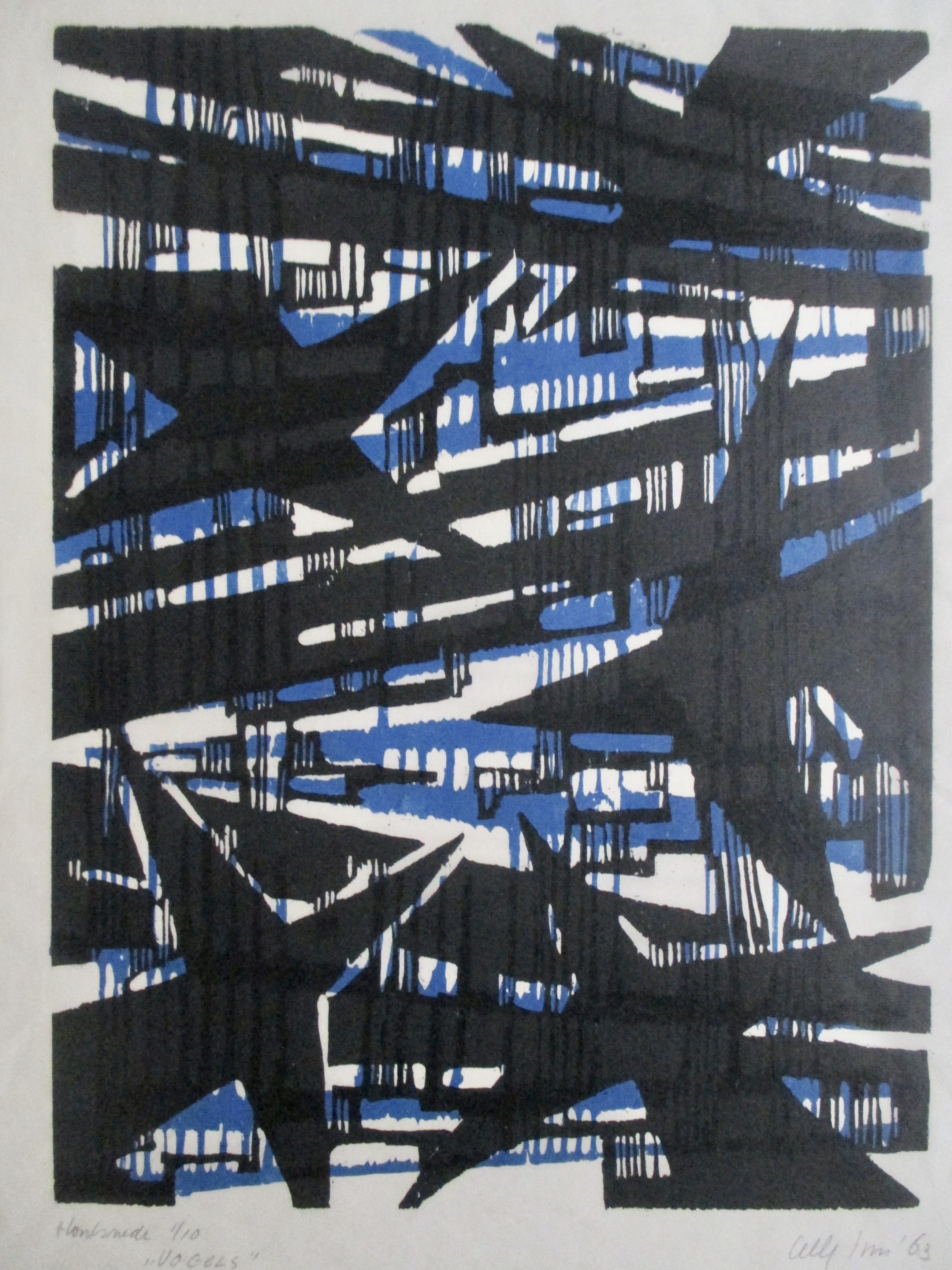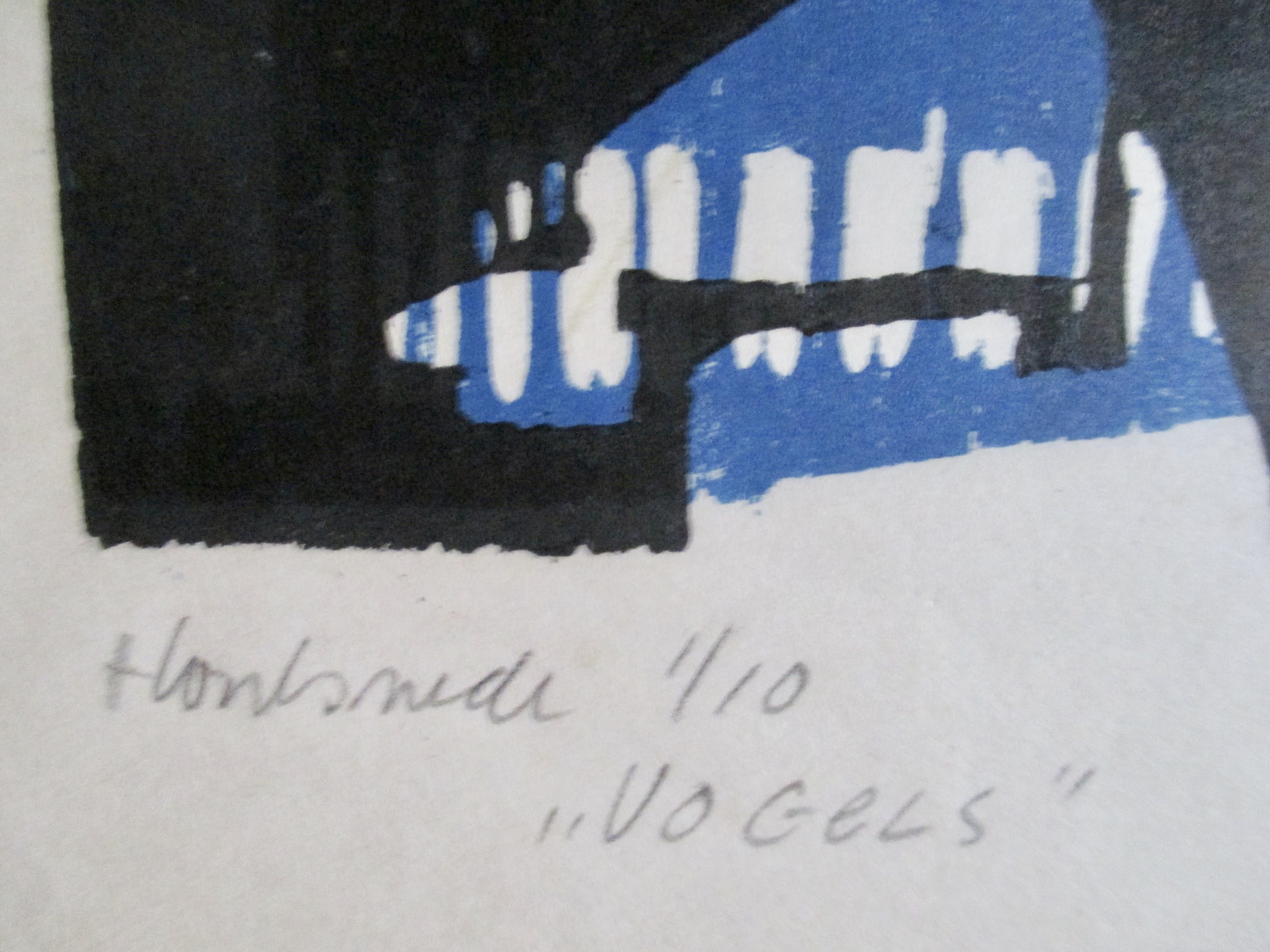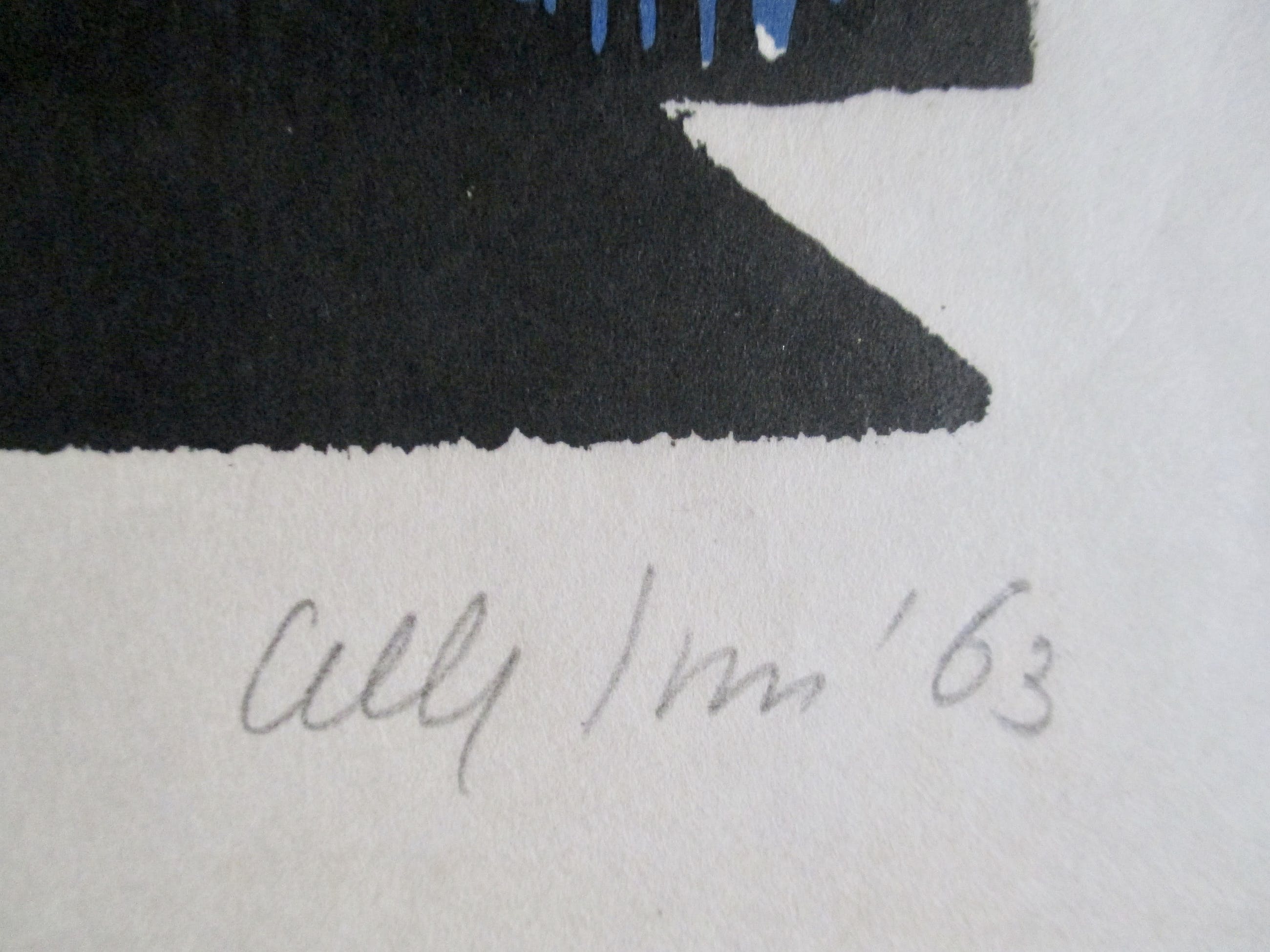Houtsnede uit kleine oplage van Akke Sins op dun geschept papier, gesigneerd, gedateerd, getiteld en genummerd in potlood. Verzending tussen twee platen, 8 euro, aangetekend 9,65