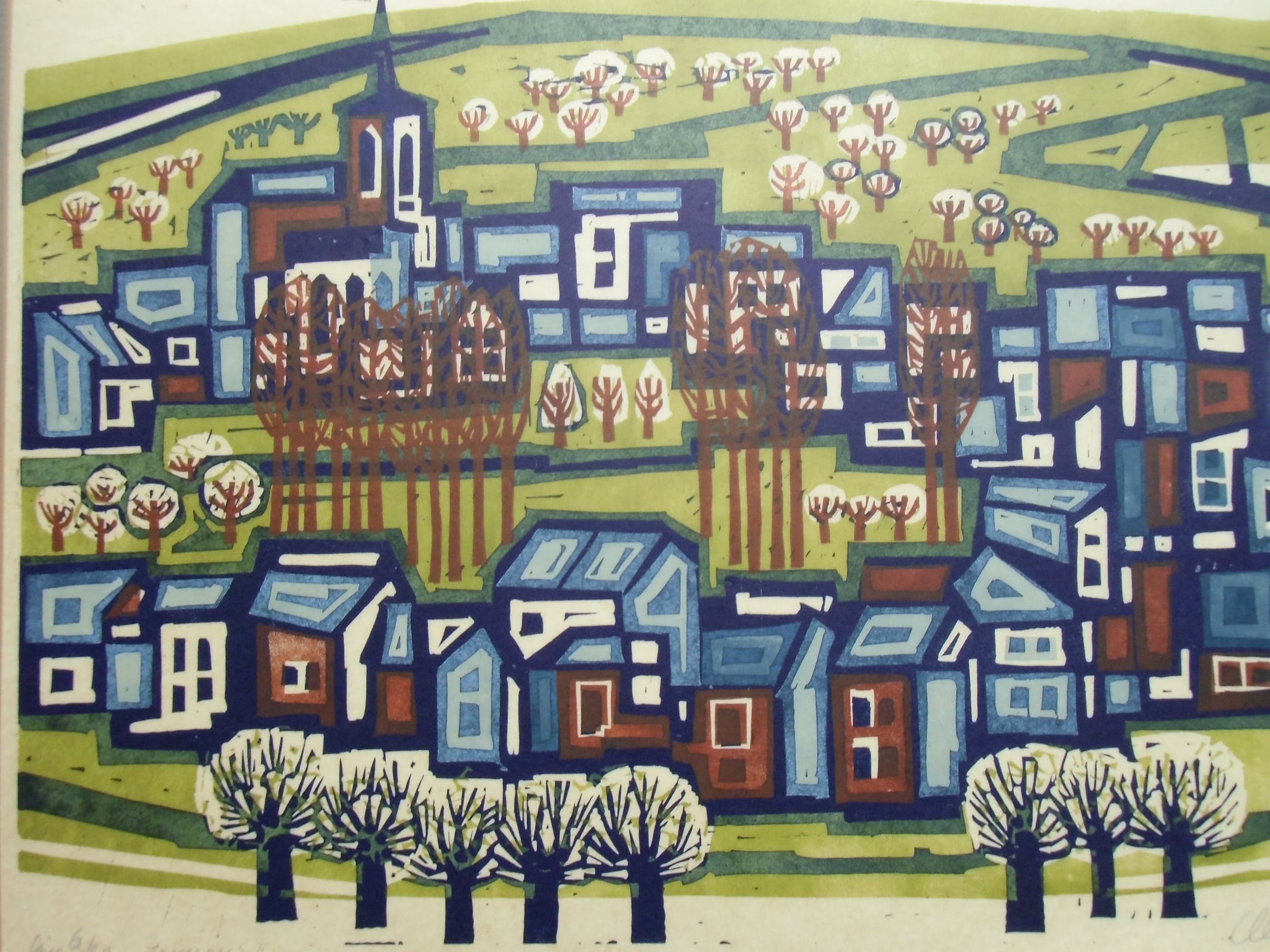 Heldere kleurenlino van Akke Sins gesigneerd, gedateerd en betiteld met potlood. Zeer goede conditie, zonder lijst en/of passepartout. Kleine oplage, dus zeldzaam.
