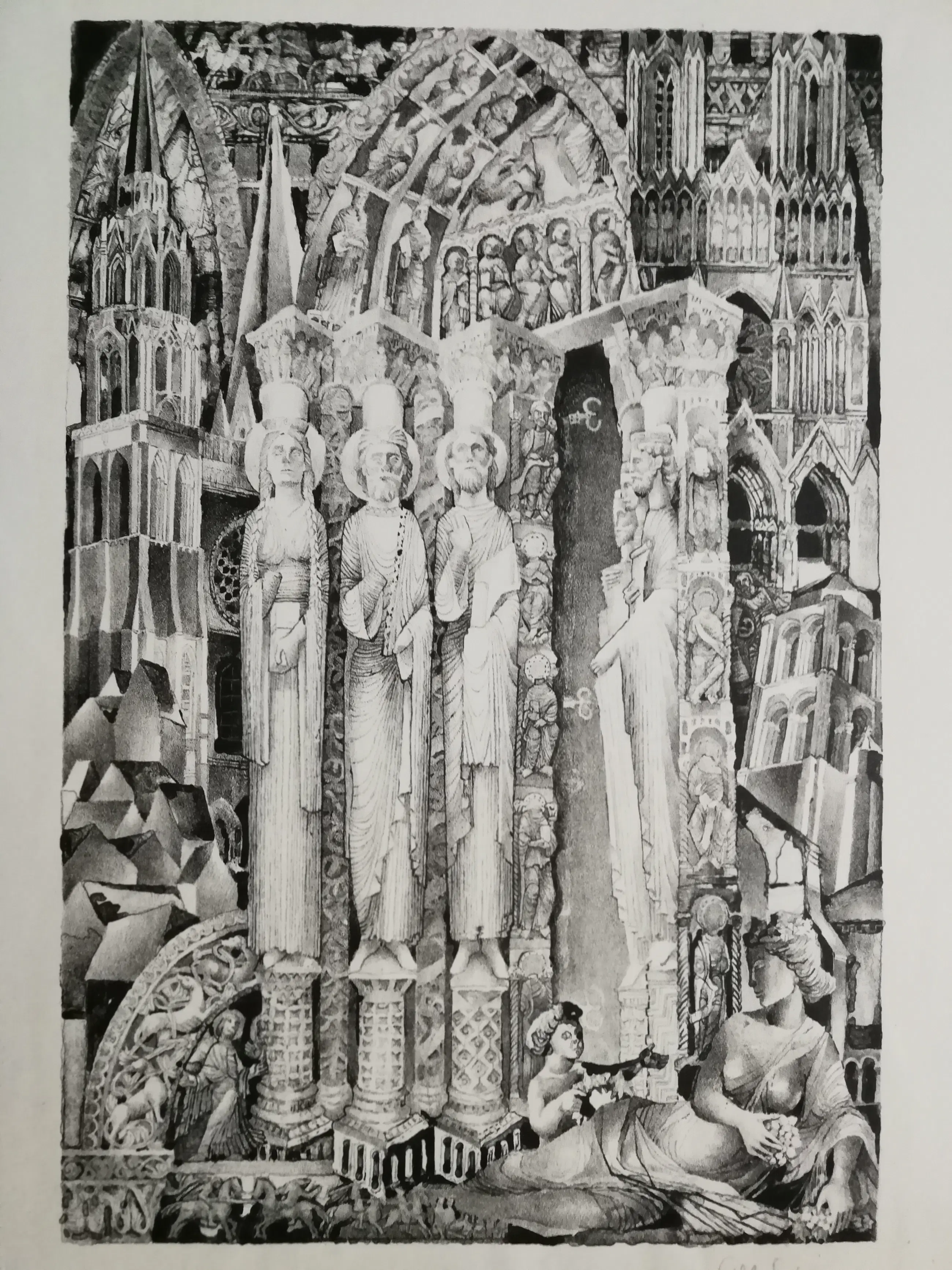 Litho van Akke Sins, gesigneerd en gedateerd in potlood. het blad is bovenaan geplakt op en wit blad, afmeting. 43x39 cm. verzending tussen twee platen, 9,25, aangetekend 11,55