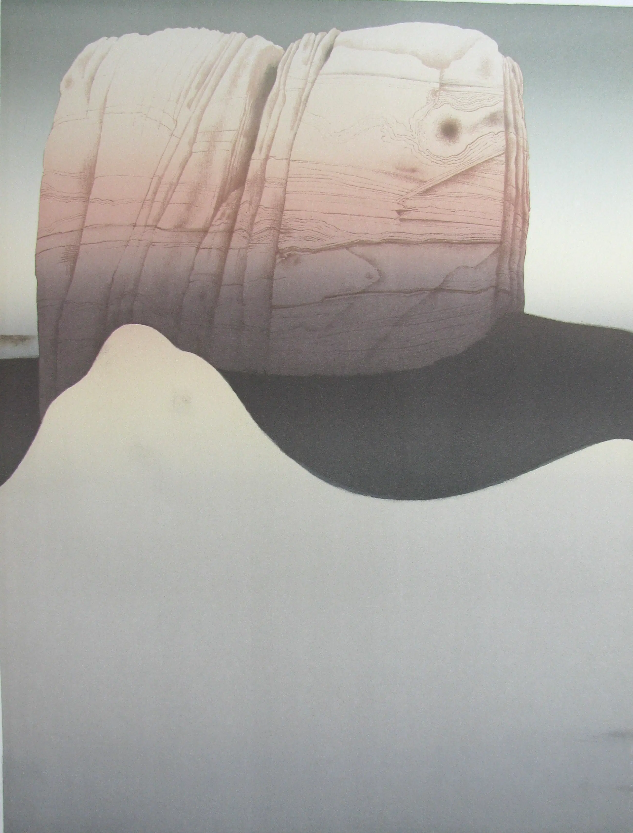 'Desert Rock I': karakteristieke lithografie van de Franse kunstenaar Alain Le Foll, in potlood door de kunstenaar genummerd (25/150) en gesigneerd. Afmetingen: 65 x 50 cm. In perfecte staat.