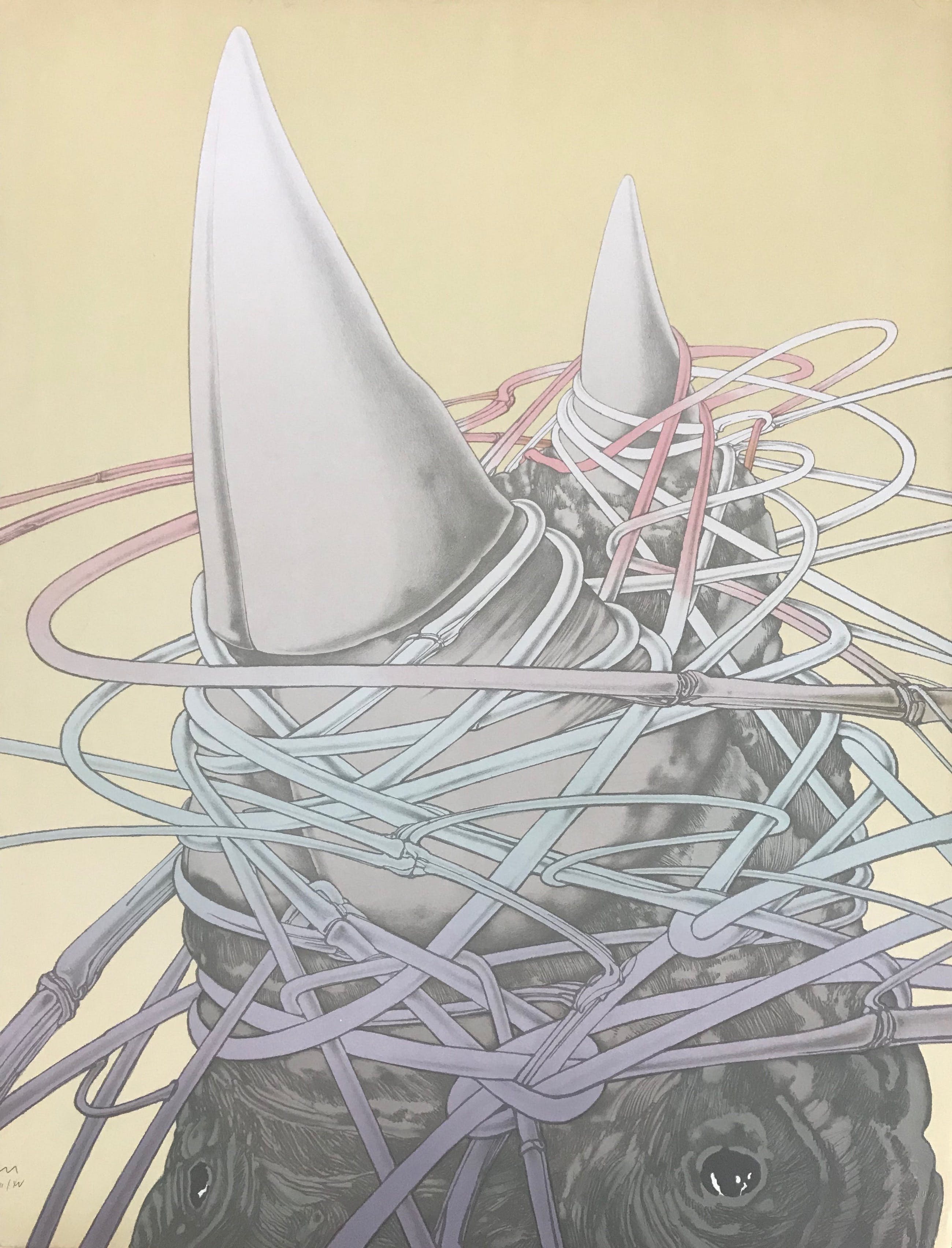 Mooie litho van deze Franse kunstenaar (1934 - 1982) Titel: 'Rhinoceros' - 'Rhino horns' Oplage: 150 + HC Deze heeft de nummering HC III/XV 68 X 53 cm BFK Rives papier Gesigneerd en genummerd in potlood door de kunstenaar Stempel Editions Galerie Lahumière Paris Goede conditie Zal stevig verpakt, met Track&Trace, verzonden worden Verzending B: 12€ NL: 20€ Alain Le Foll werd geboren in 1934 en stierf in 1982 en was een Franse illustrator en ontwerper. In de jaren 60 was Alain Le Foll een van de sleutelfiguren in de illustratiewereld. Werkte samen met tijdschriften zoals Elle en Marie-Claire. De Franse hoofdstad was bedekt met zijn bioscoopaffiches. Helaas heeft zijn persoonlijke leven zijn kunst ernstig aangetast, na zijn scheiding verhuisde hij weg van zijn 2 dochters en eindigde alleen in zijn kleine appartement in Parijs. Na zijn overlijden heeft een ongelukkig geschil tussen de erfgenamen de erkenning van zijn werk vertraagd, maar wordt nu geleidelijk herontdekt.