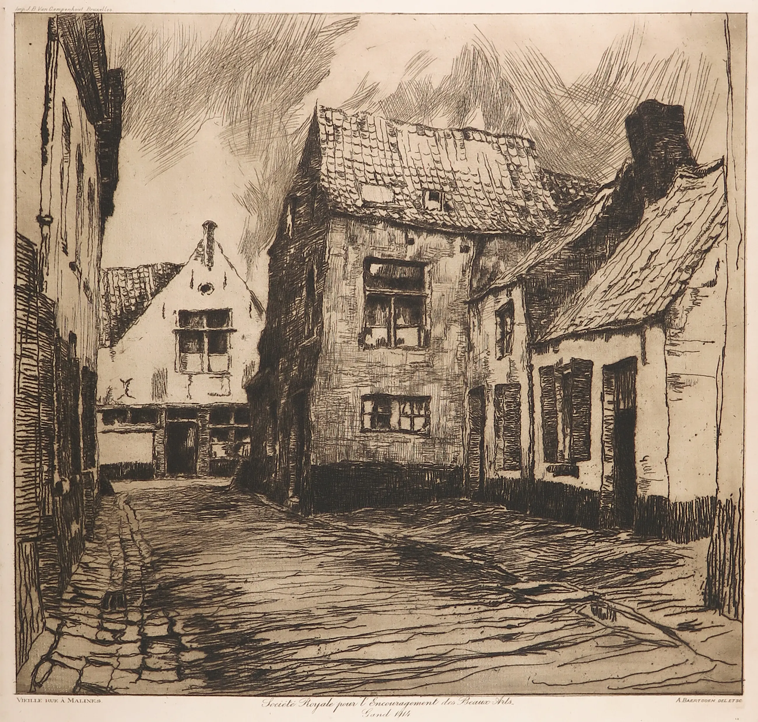 Vielle Rue à Malines, ets door Albert Baertson. Uitgegeven door Societé Royale pour l'encouragement des Beaux Arts in 1914. Gedrukt door J.B. Van Campenhout, Brussel.