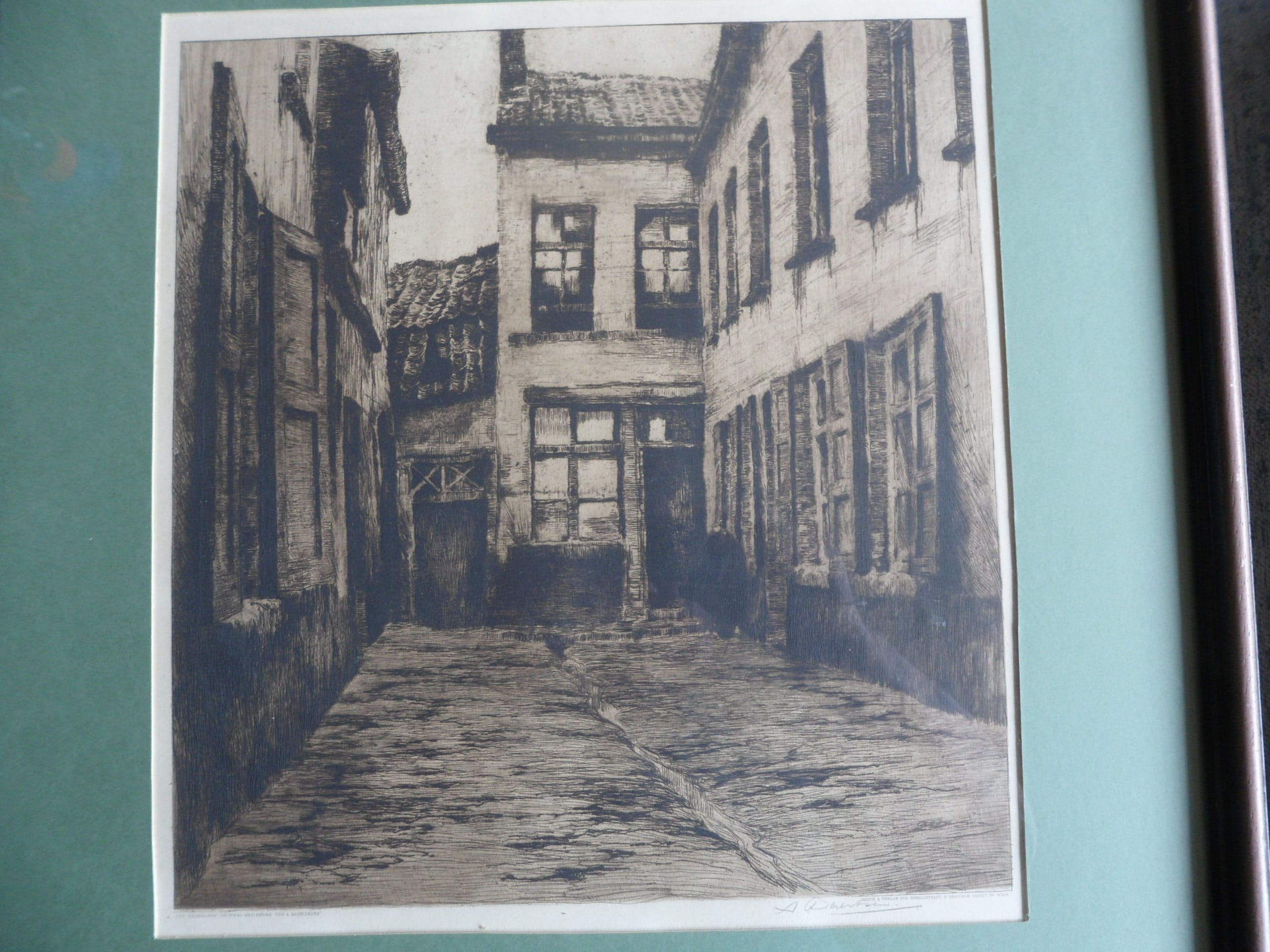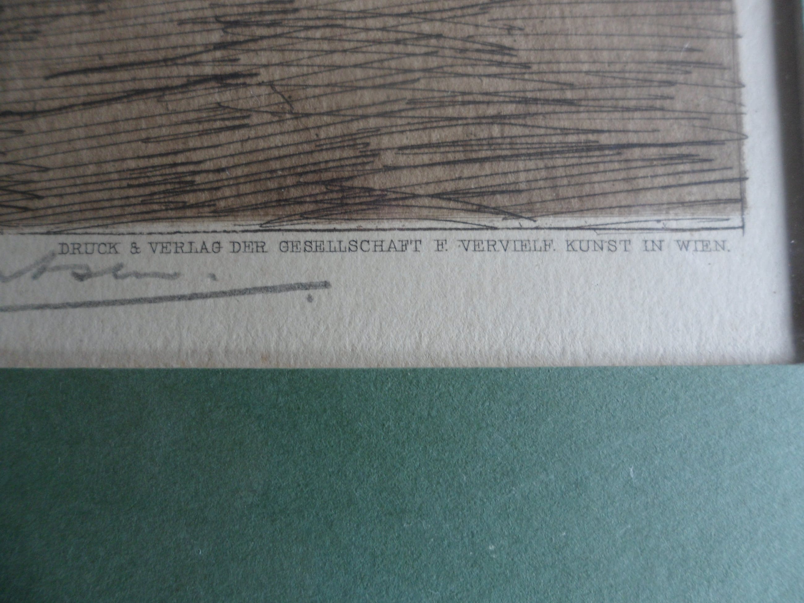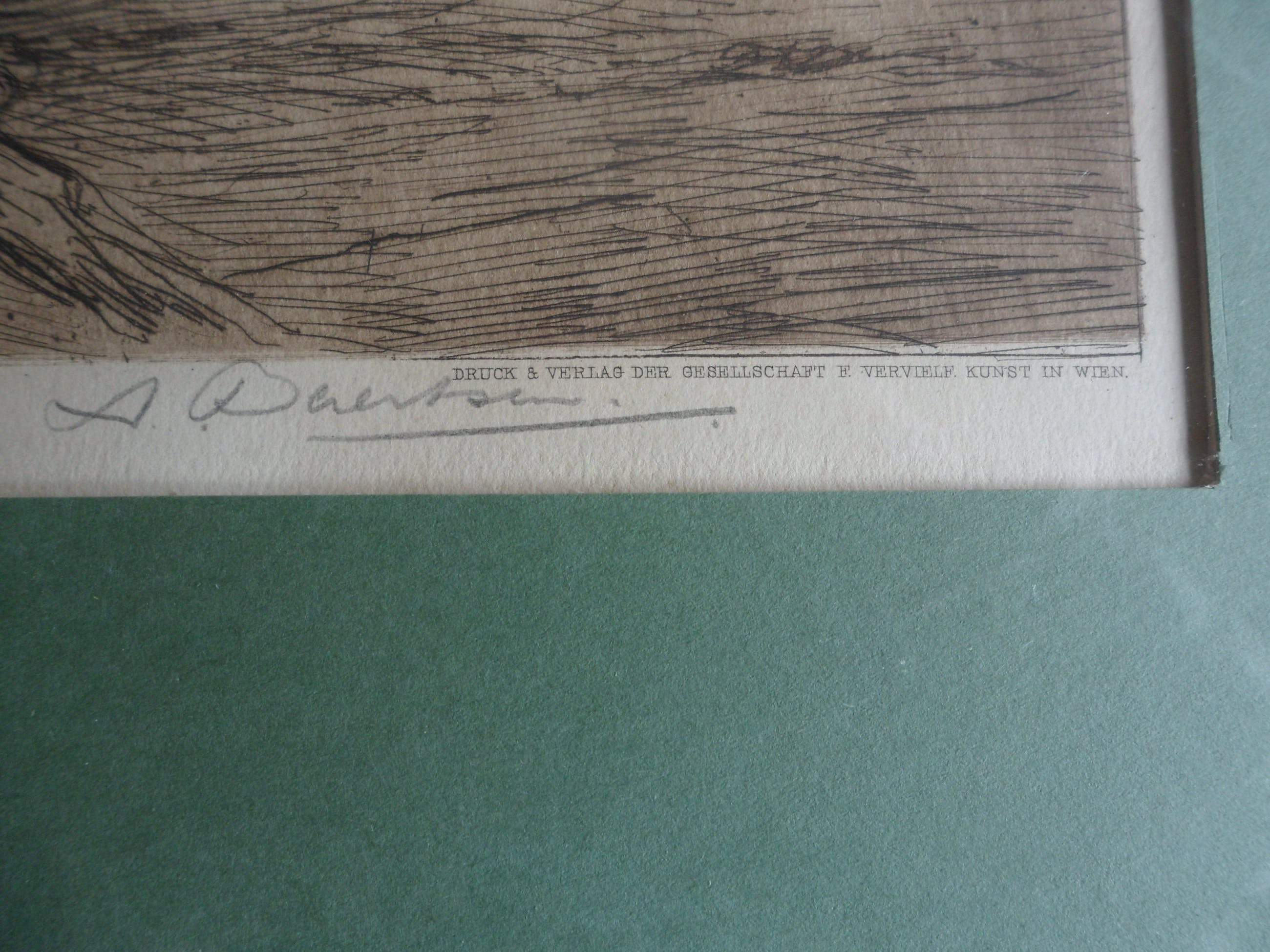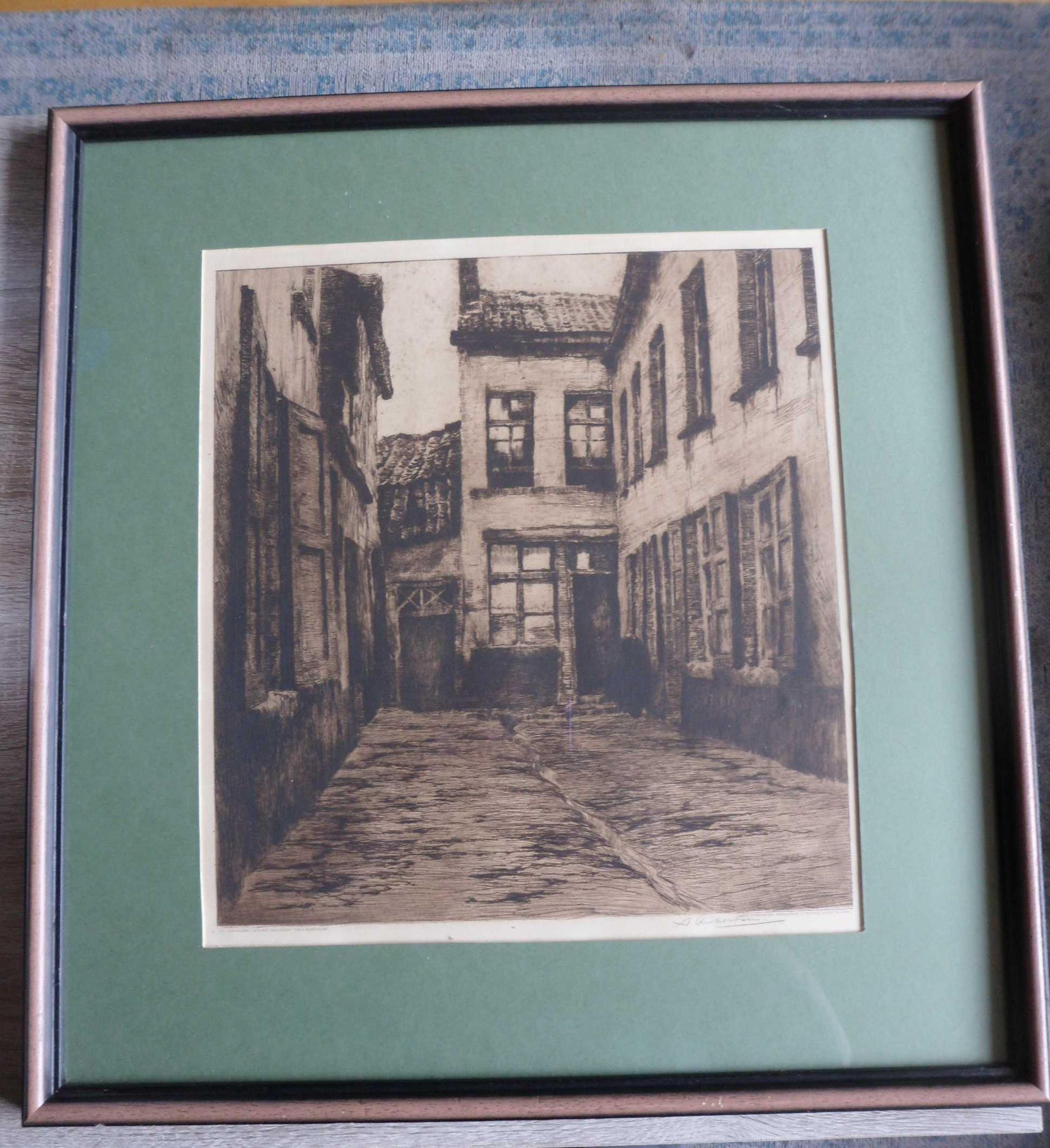 Ets in zwartbruin. Typografisch ingeschreven "Die Sackgasse - originele ets door A. Baertsoen" linksonder, "Druck & Verlag der Gesellschaft F. vervielf. Kunst in Wien" rechtsonder. Stempel links van de velmarge.