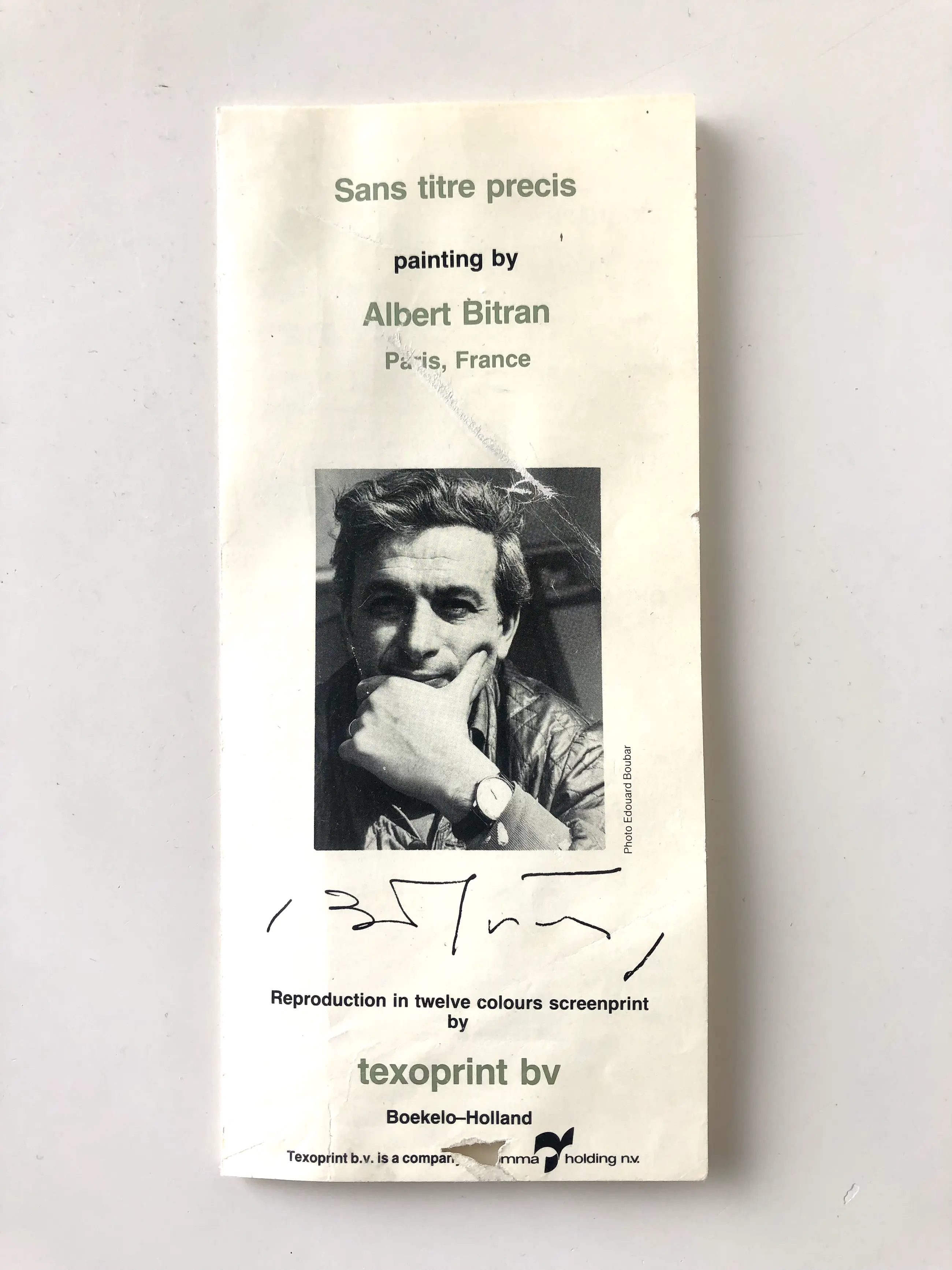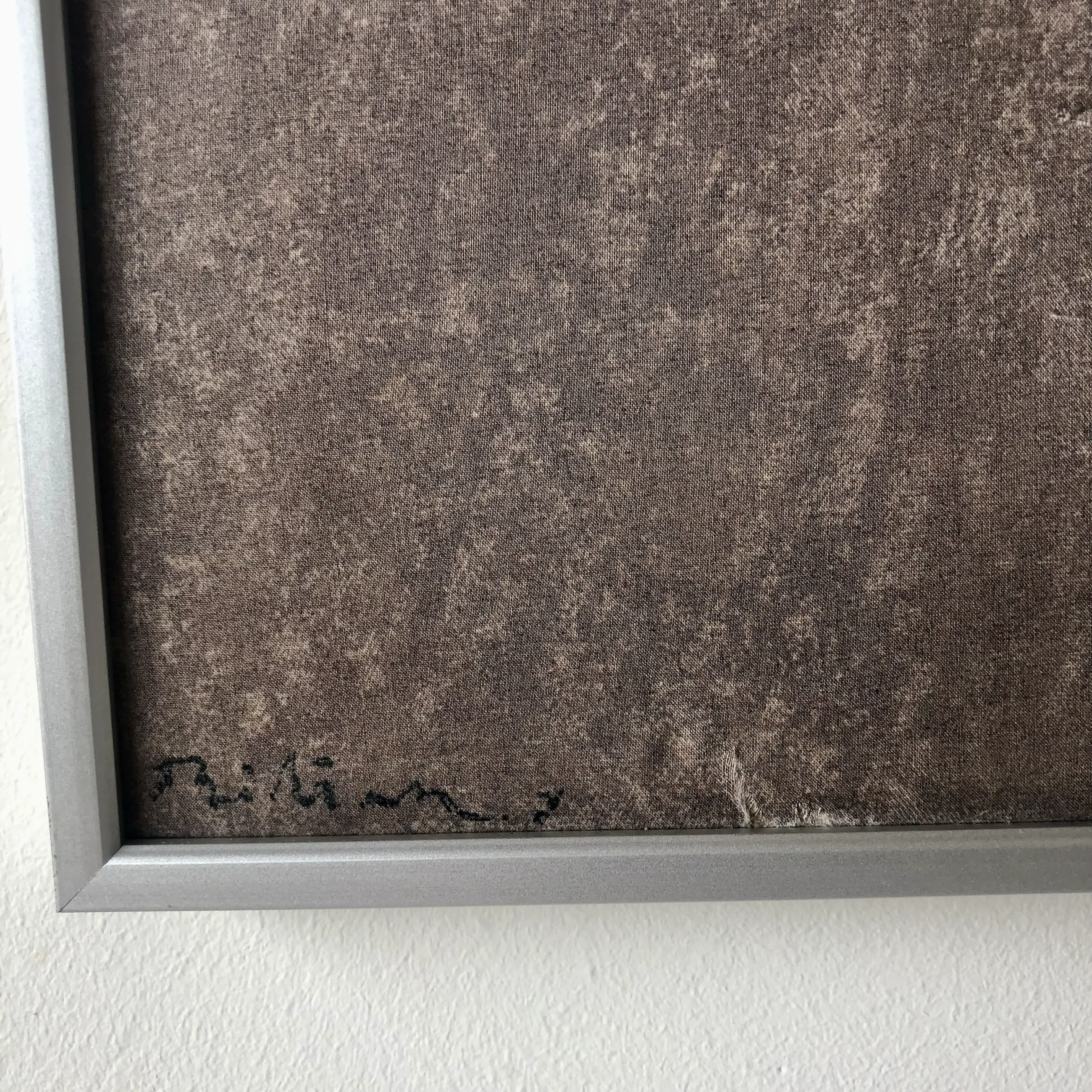 Mooi werk van Albert Bitran, zeefdruk op zijde gevat in een aluminium lijst zonder glas.