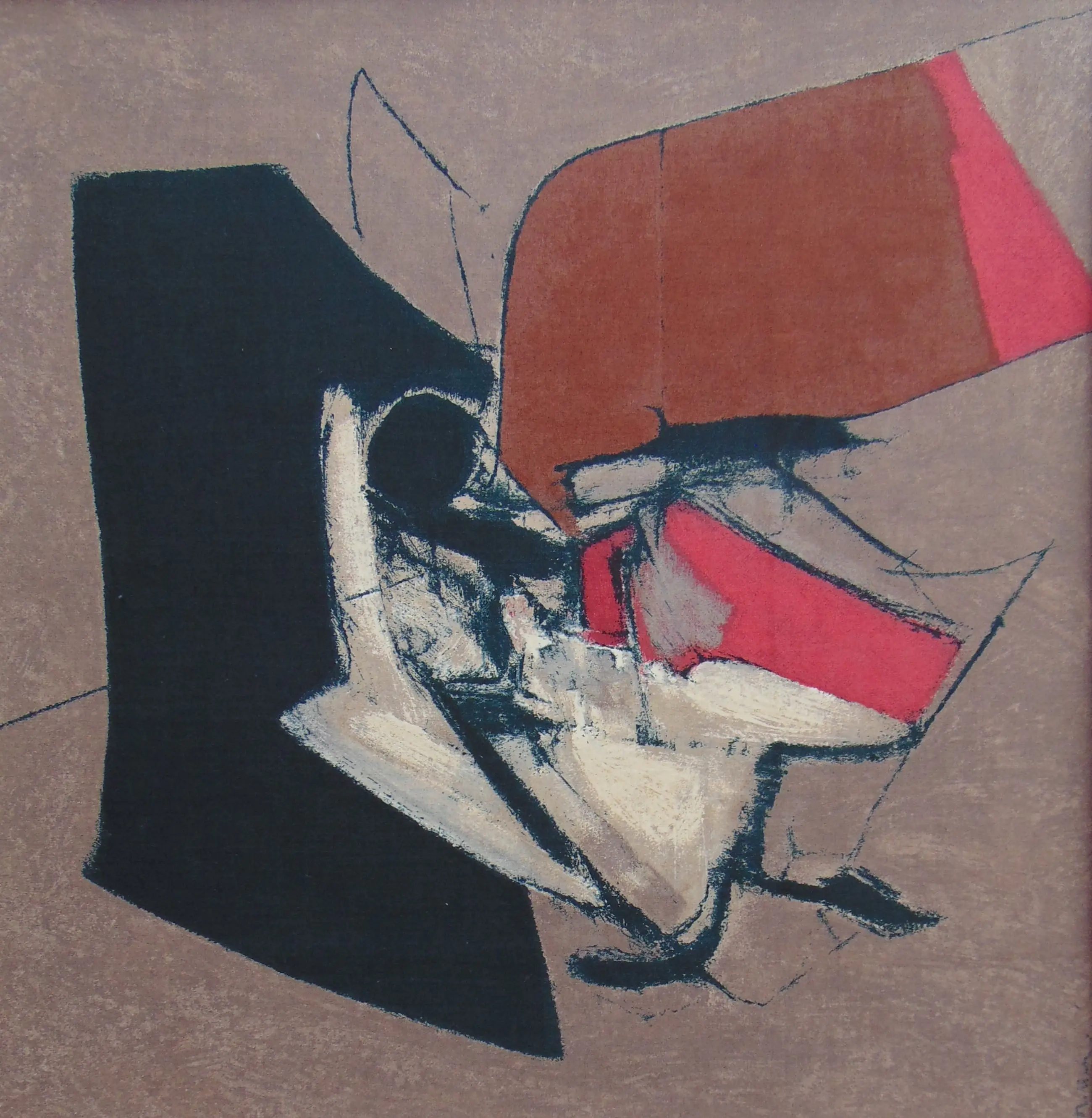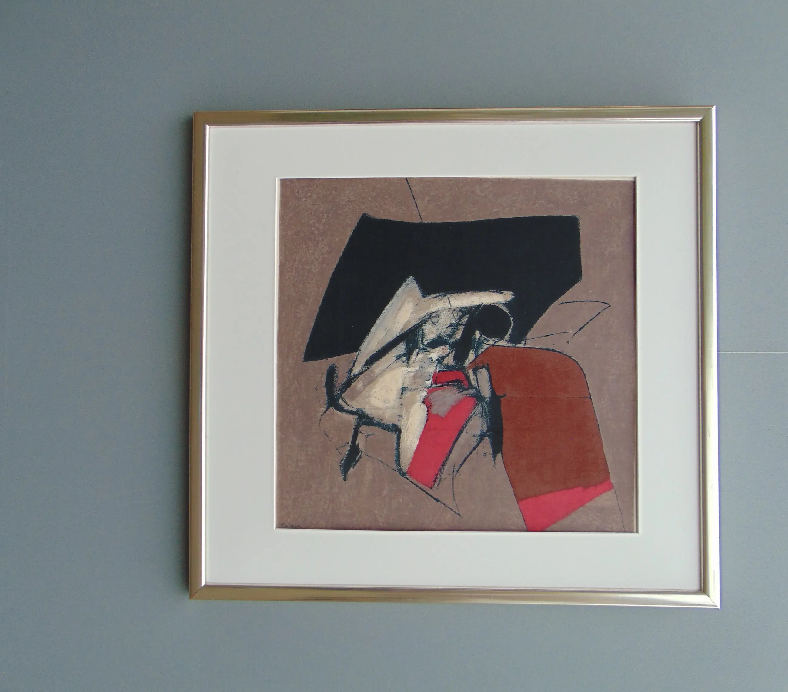 Zeefdruk op textiel (silkscreen on artificial silk) door Texoprint. Gesigneerd in de druk l.o. Oplage: ca. 200 (niet genummerd) in de jaren 80/90 van de vorige eeuw. Texoprint (Gamma Holding NV) heeft in die tijd diverse van werken van bekende kunstenaars uitgegeven in deze druktechniek) Afmeting afbeelding 64/64 cm. Ingelijst met passe-partout achter glas.