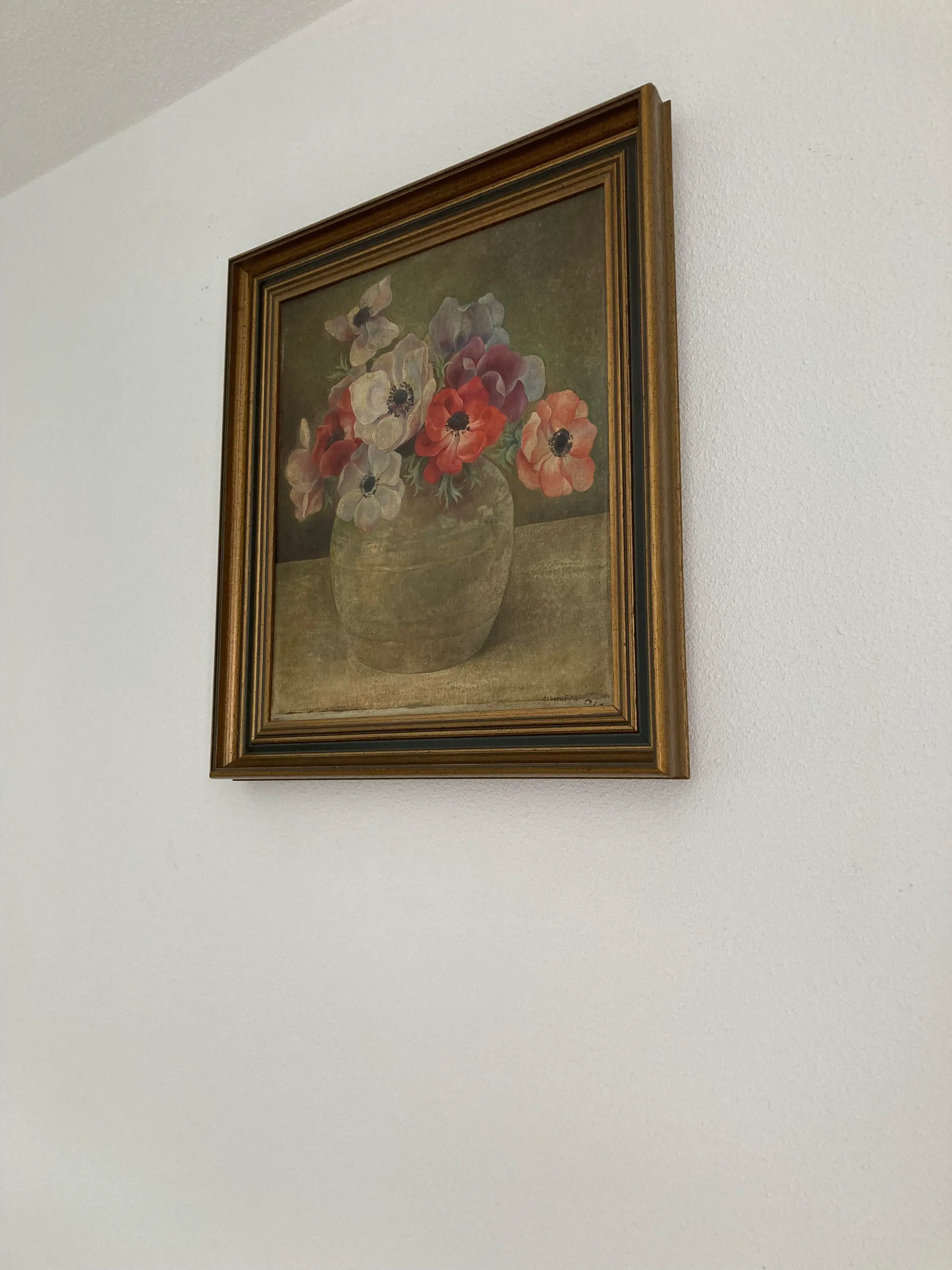 Een mooi werk van een zeldzaam schilder, jong gestorven in 1945. Amersfoort en Laren waren zijn werkgebieden. Een klein oeuvre maar van hoge kwaliteit. Dit stilleven is nog redelijk realistisch maar neigt toch al een beetje naar zijn modernere en kubistische vorm van schilderen die hoge prijzen halen en zeer gewild zijn. Gesigneerd en onduidelijk gedateerd. Anemonen in een vaas. Lijst van een lijstenmaker uit Cuyk. Afkomstig uit een Nederlandse prive-collectie. Het werk kan opgehaald worden en eventueel gebracht om schade te voorkomen. Verzenden heeft niet mijn preferentie.