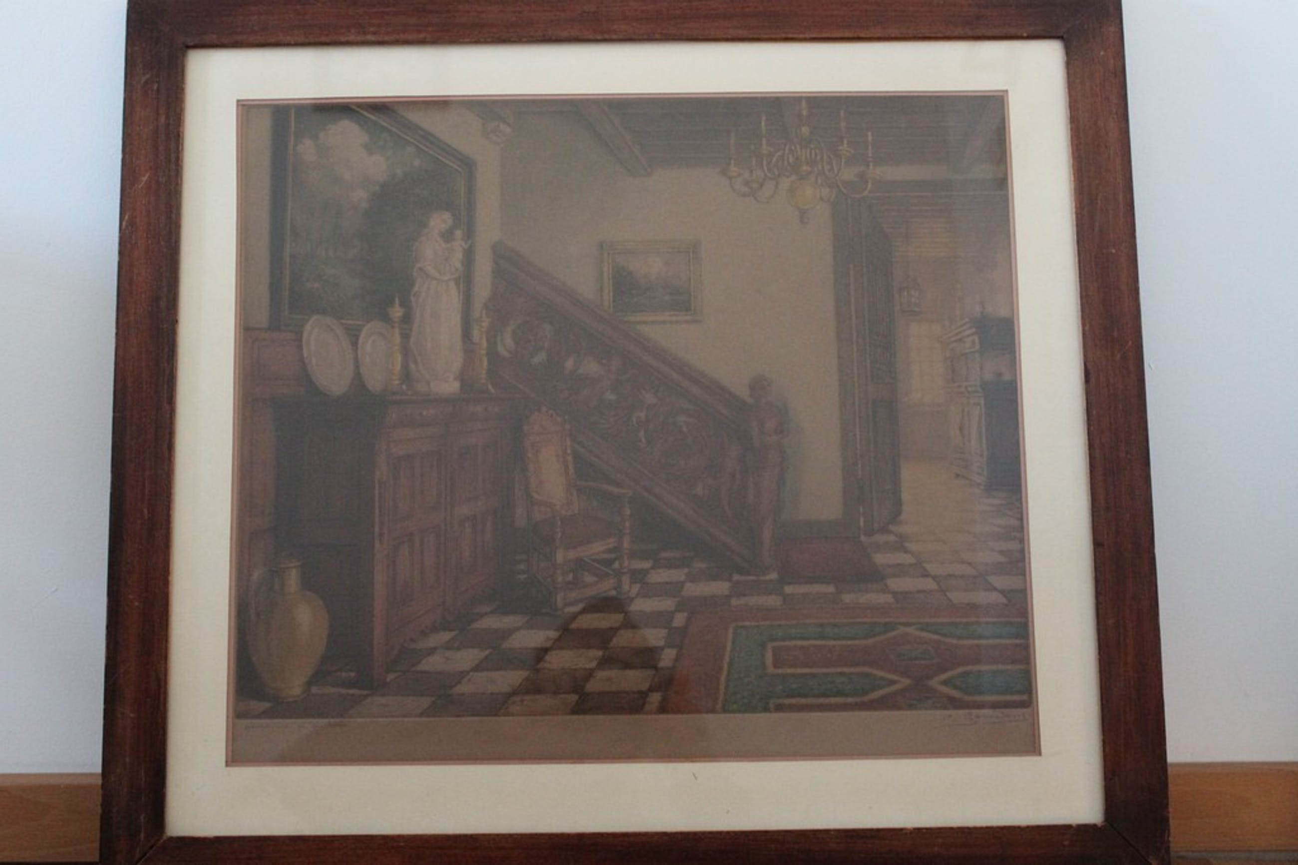 “Interieur”. Een ingekleurde ets. Gesigneerd en épreuve d’artiste buiten de plaat.