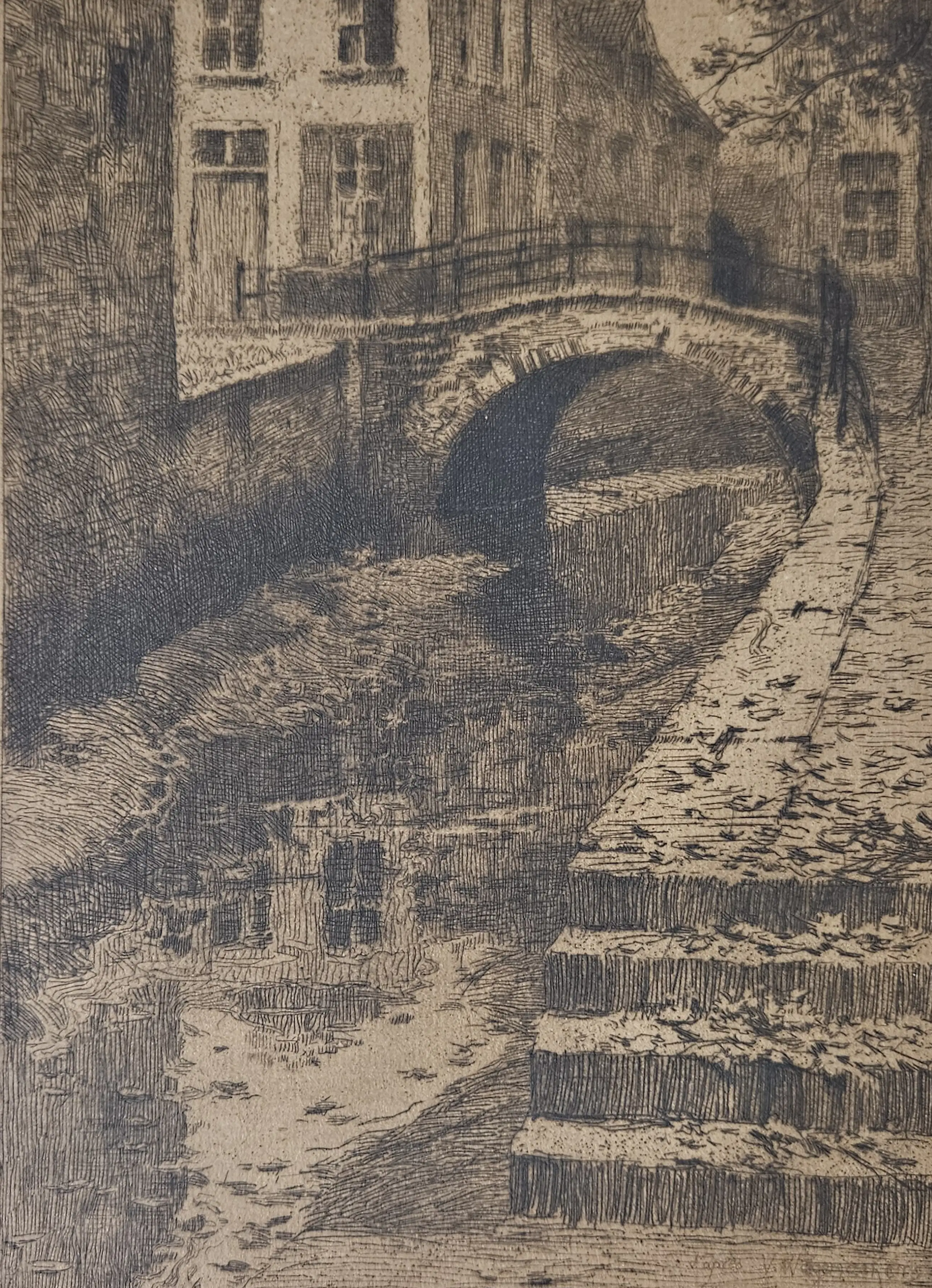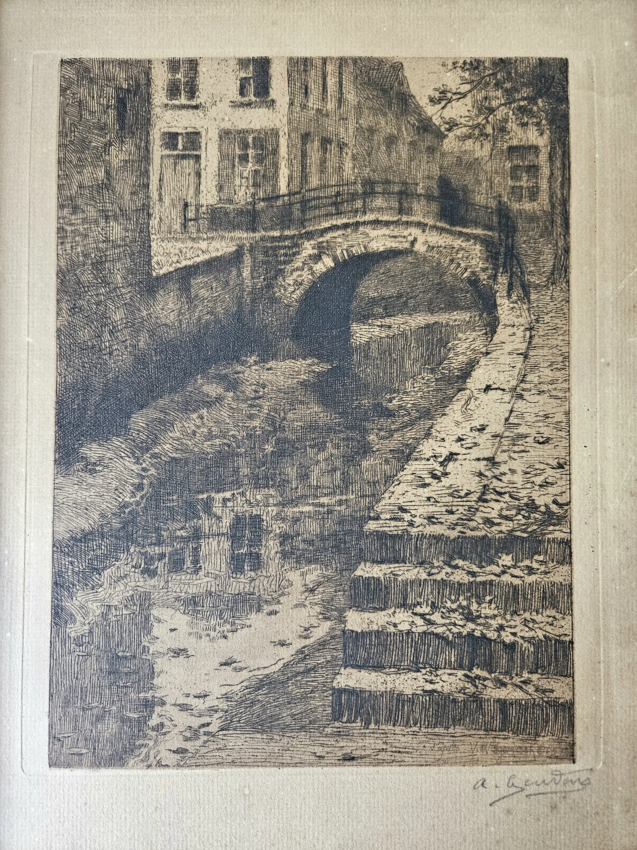 Prachtige ets van de Belgische aquarellist, etser, pastellist, schilder en tekenaar Albert Geudens (1869–1949)